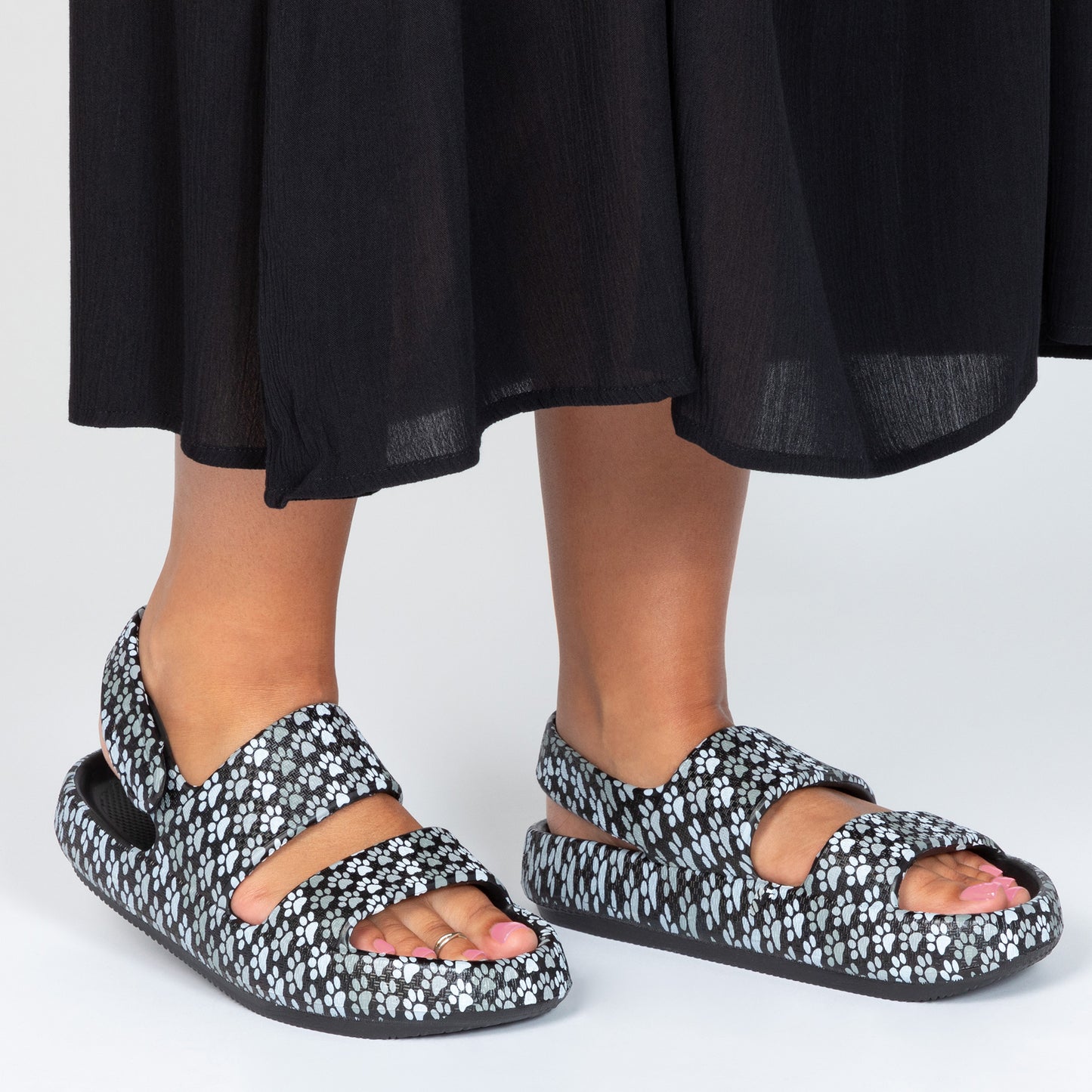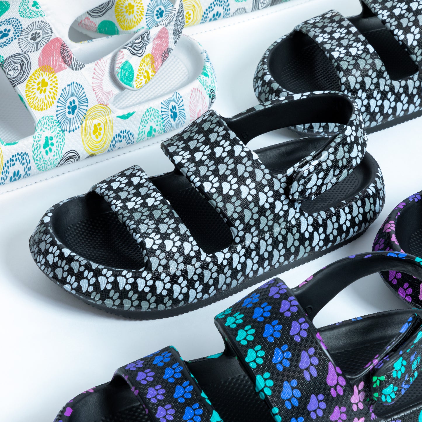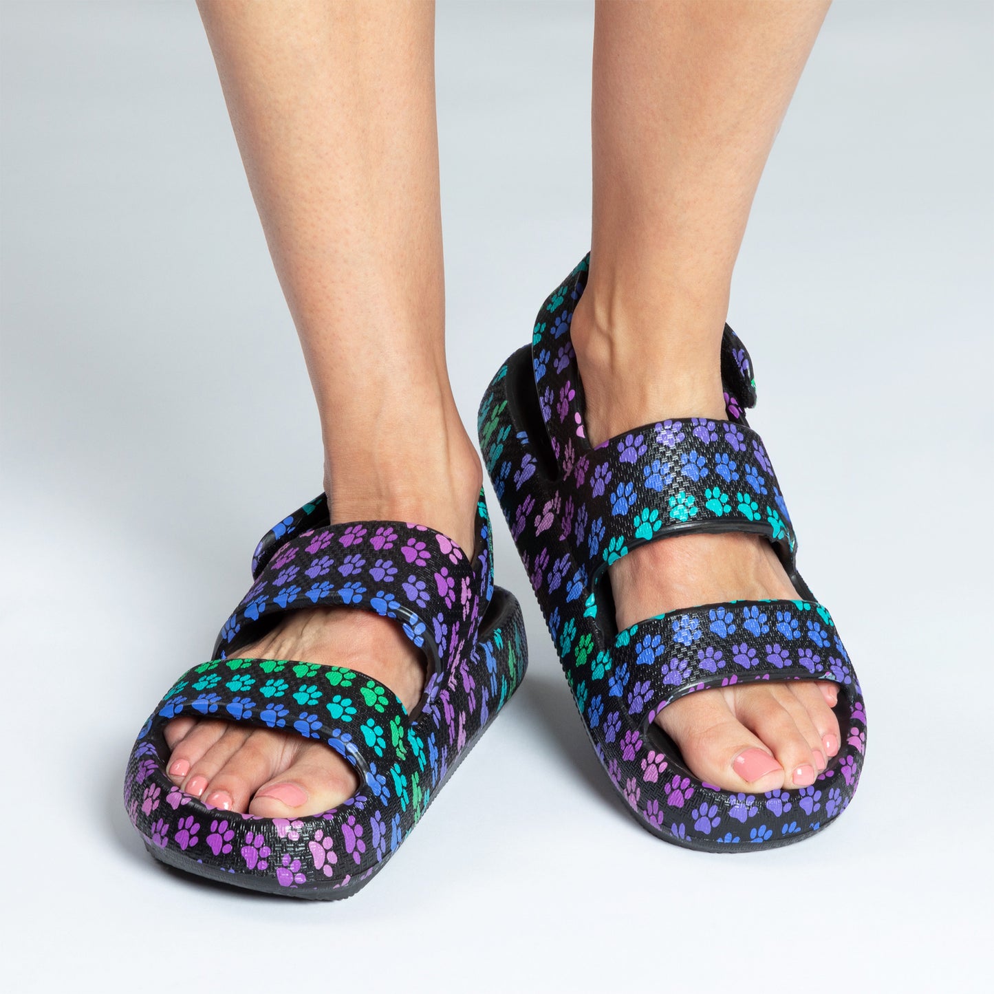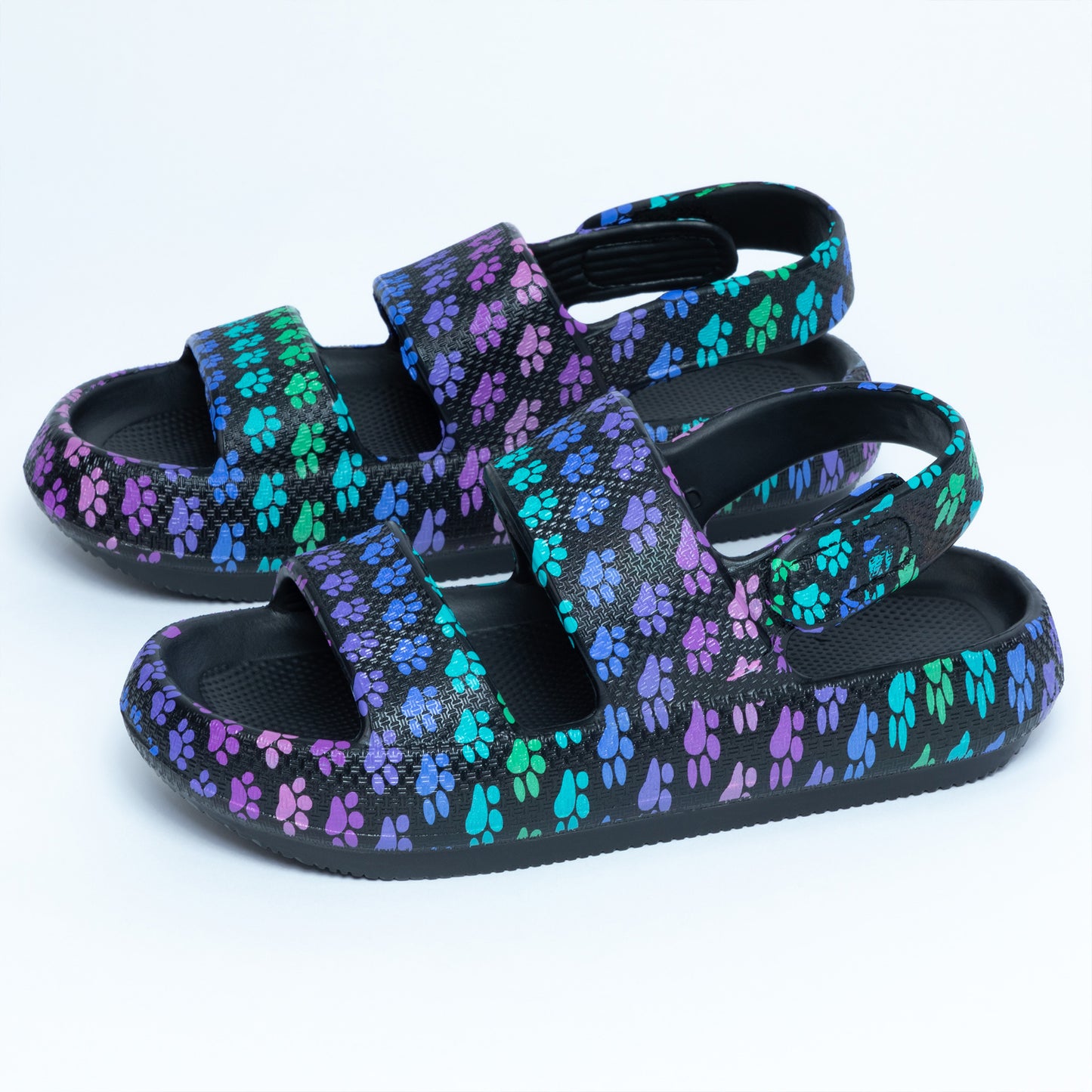 Step into comfort with a pair of Paw Print Pillow Slingback Sandals, designed for ultimate ease and style. Featuring a lightweight EVA upper and outsole, these sandals provide cloud-like comfort with every step. The adjustable velcro back strap ensures a secure fit, while the non-slip, quick-dry design keeps you steady and dry. Embrace the puffy, pillow-like feel and add a playful touch to your summer wardrobe with the adorable paw print pattern. Perfect for all-day wear and outdoor adventures!