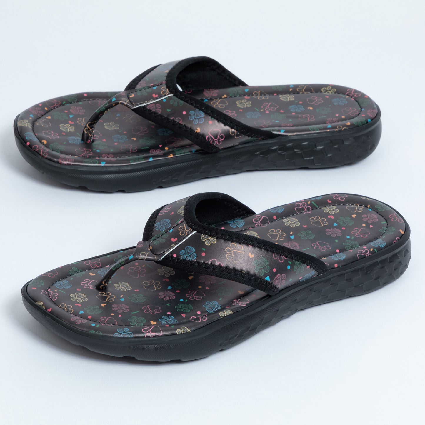 Step into fun with these Paw Print Favorite Flip Flops! Featuring durable EVA outsoles and a smooth faux leather upper, these flip flops are designed for both comfort and style. The vibrant paw print designs add a splash of color and whimsy, making them the perfect choice for beach days, poolside lounging, or casual strolls. Elevate your summer footwear with these playful and practical flip flops!