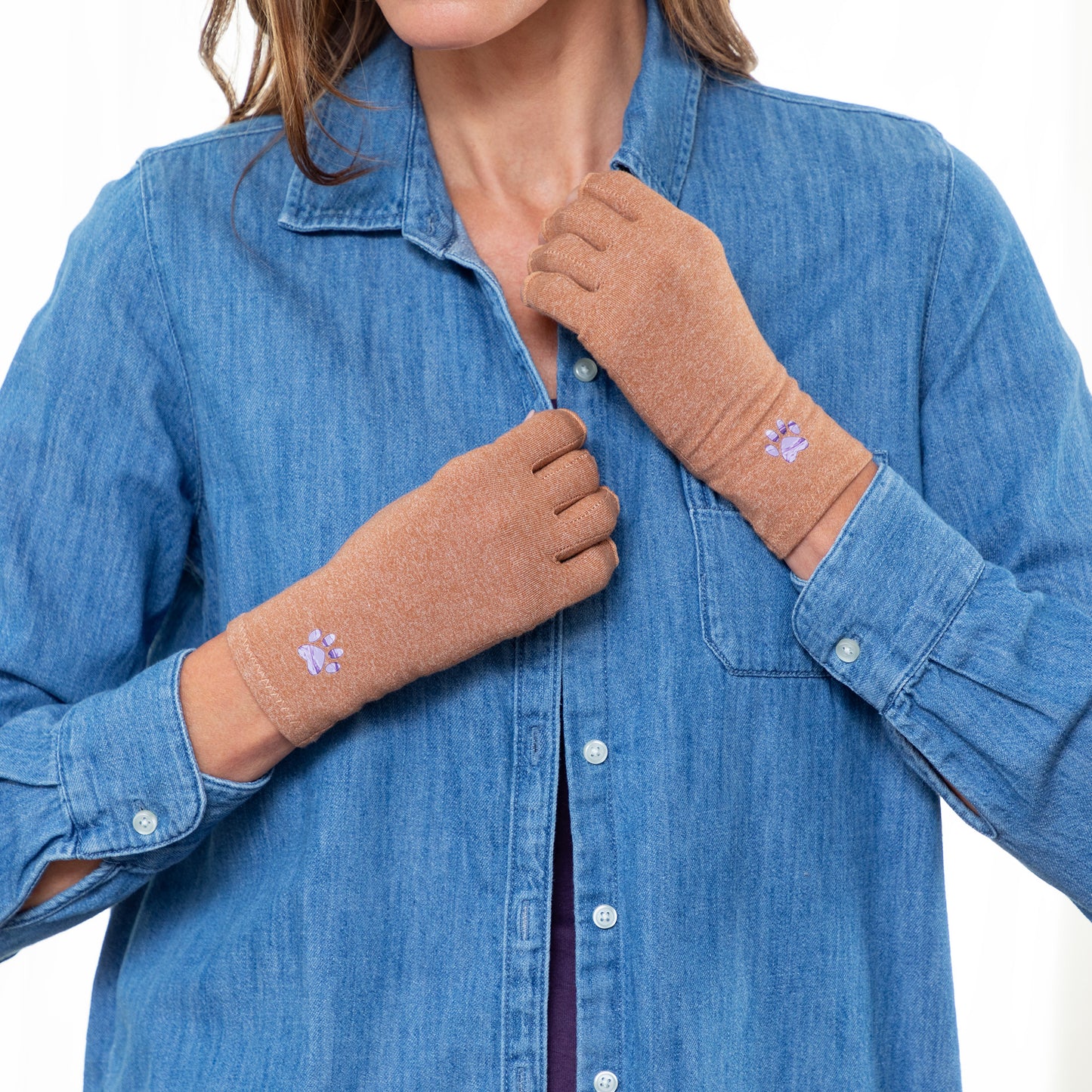 Embrace the soothing support of compression with an adorable touch of paw prints. Crafted with care, these gloves provide gentle compression to help relieve joint and muscle discomfort, all while adding a playful pair of paws to your everyday look.