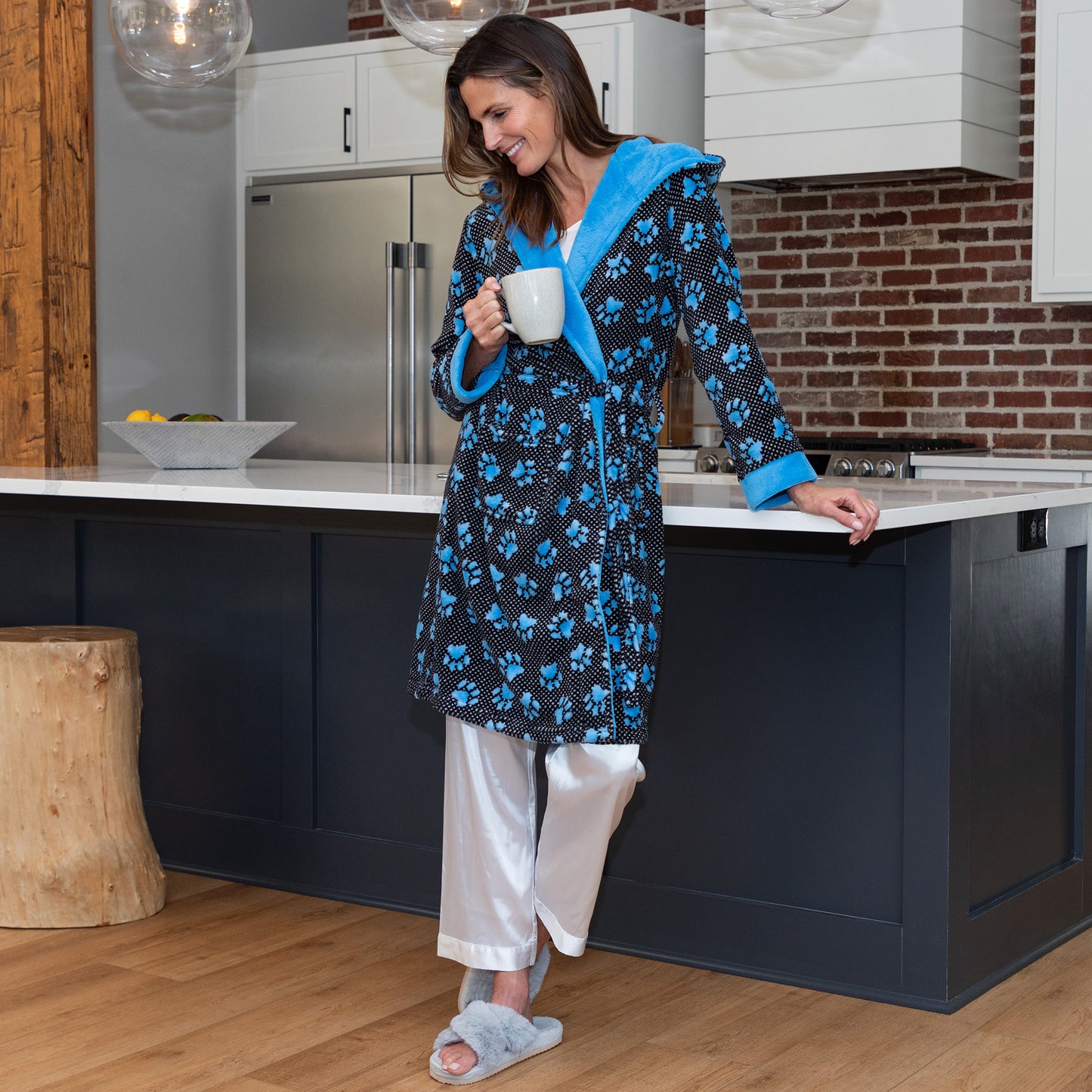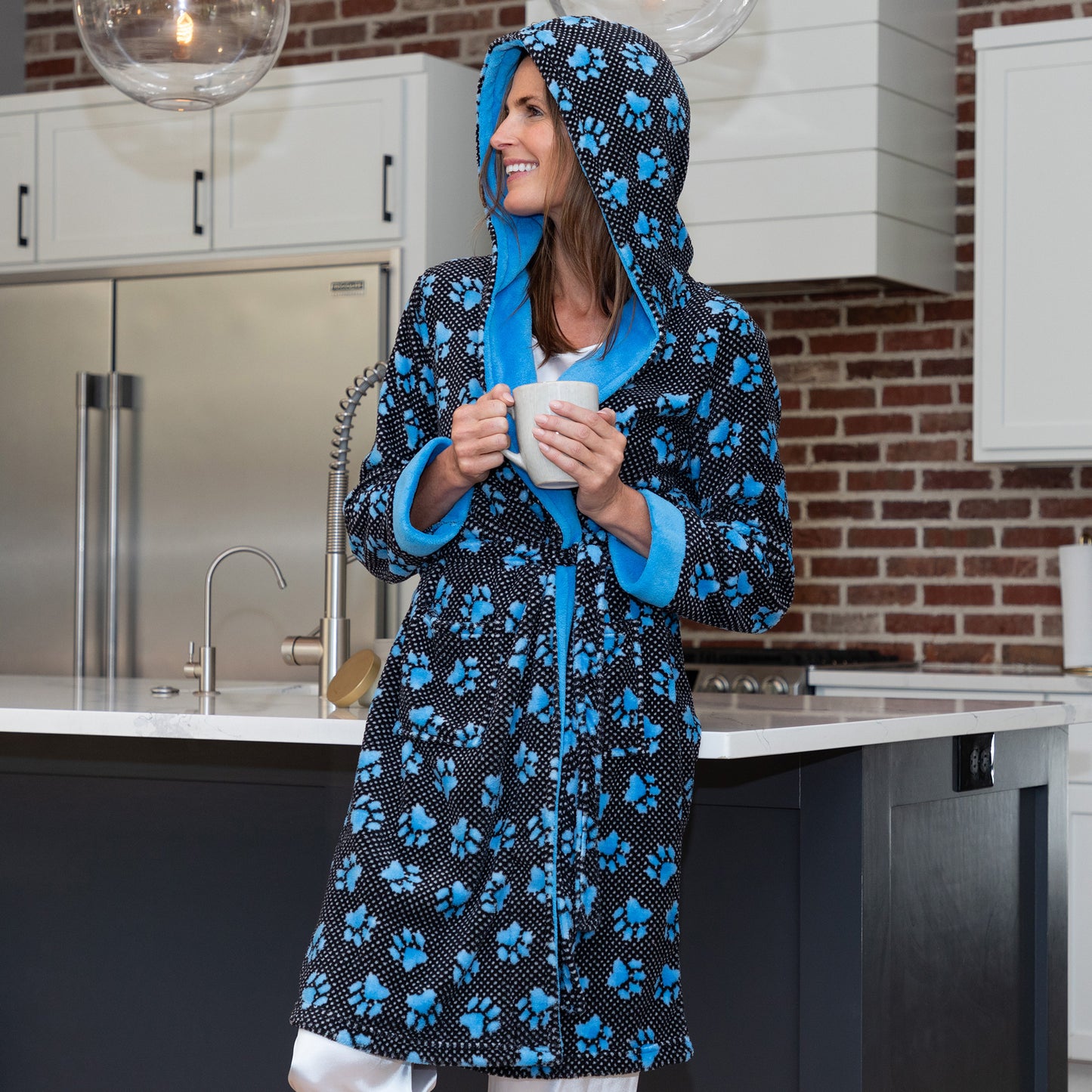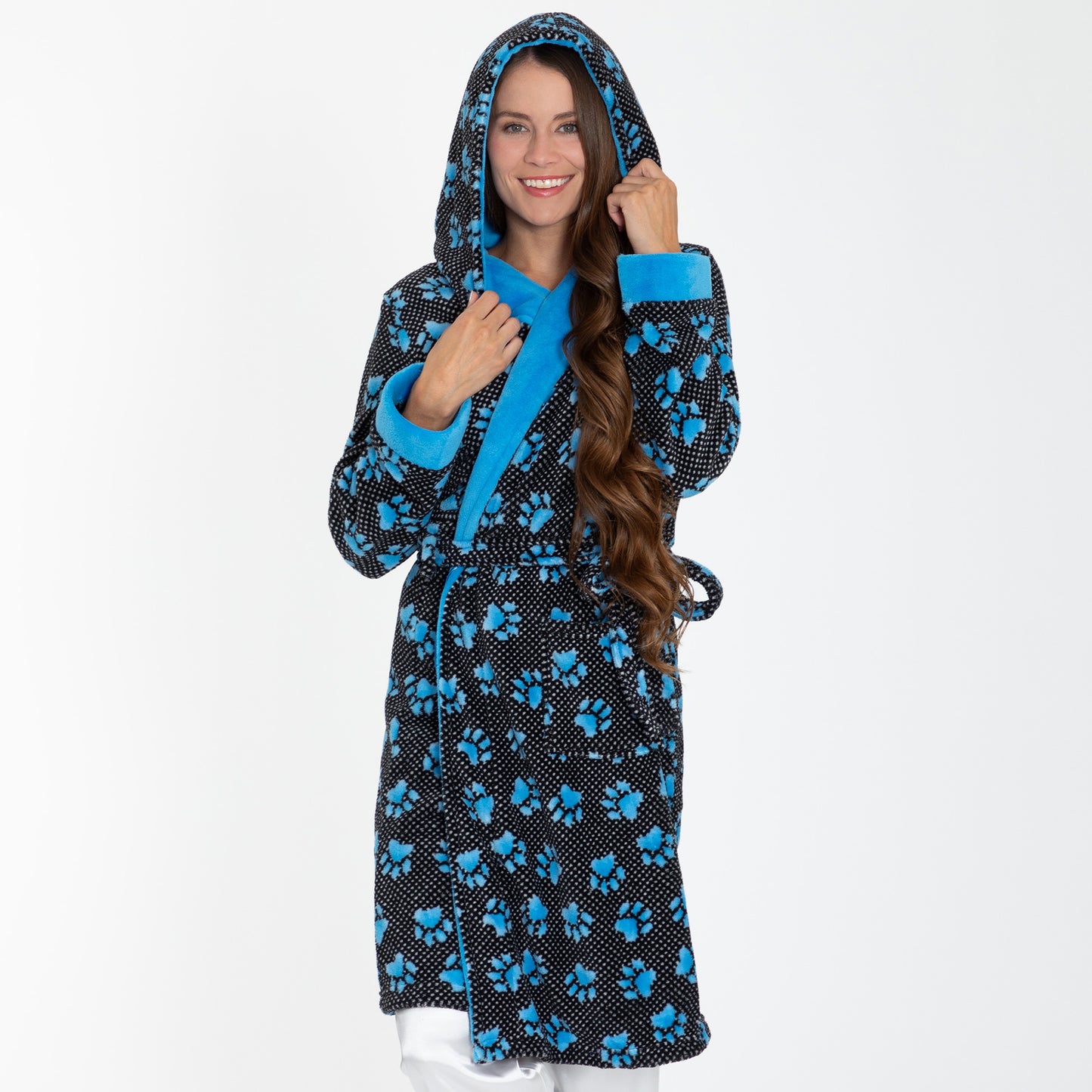 Wrap yourself in ultimate comfort with the Gradient Paws & Polka Dot Hooded Robe! Crafted from luxuriously soft plush polyester fleece, this cozy robe features an adorable paw print pattern that’s perfect for animal lovers. With a snug hood, a secure waist tie, and two handy front pockets, it’s designed to keep you warm and comfy while adding a touch of playful charm to your lounging routine. Ideal for snuggling up on chilly mornings or after a bath, this robe is a delightful blend of style and comfort.