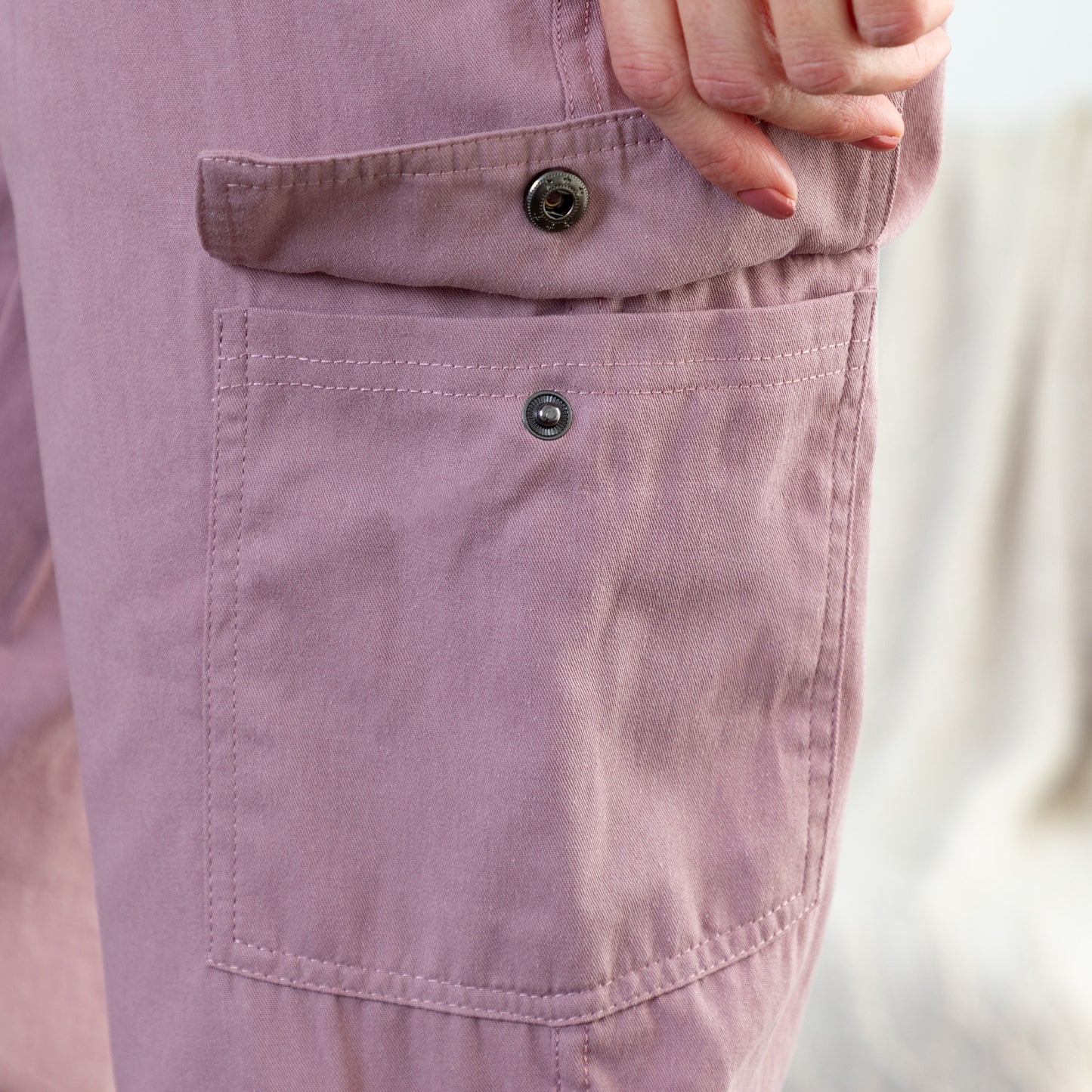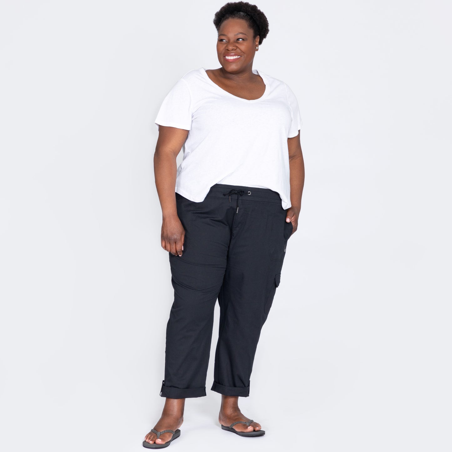 These convertible pants are designed with convenience in mind, switch from ankle to capri style in a snap! Plus, the snap pockets make it easy to secure your essentials while you're out on the go. Made with a comfortable 100% cotton weave that is both durable and breathable.
