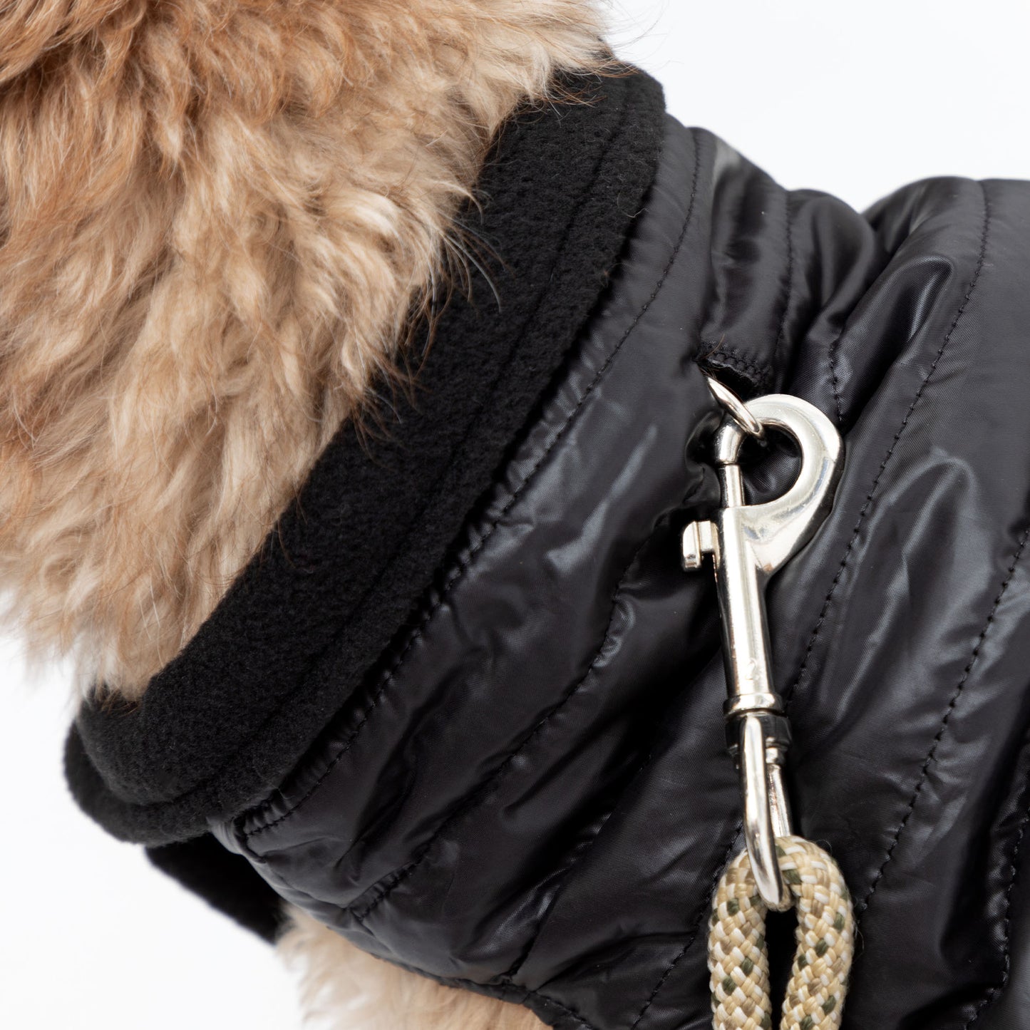 Keep your pet warm and stylish during the cold winter months with a puff jacket of their own. This nylon quilted jacket with matching fleece lining is secured with Velcro straps around the neck and belly. The lined collar provides additional warmth around the neck and a leash hole for walks making this puff jacket a great winter coat for your furry friend!