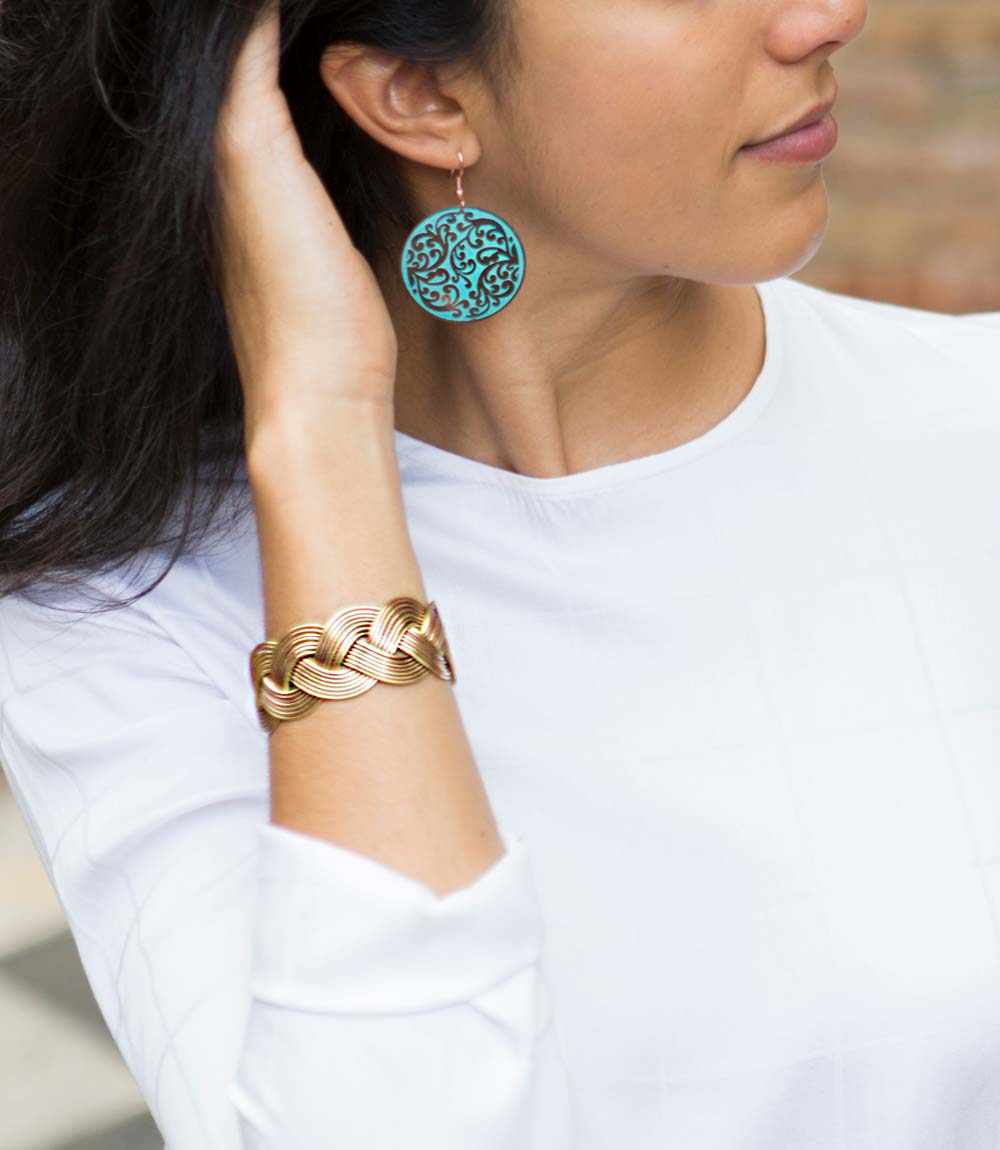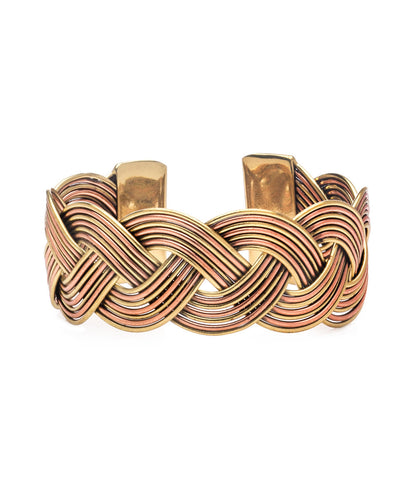 This handcrafted braided cuff of multi-metal in copper and gold finishes adds a touch of grace and elegance to any outfit.