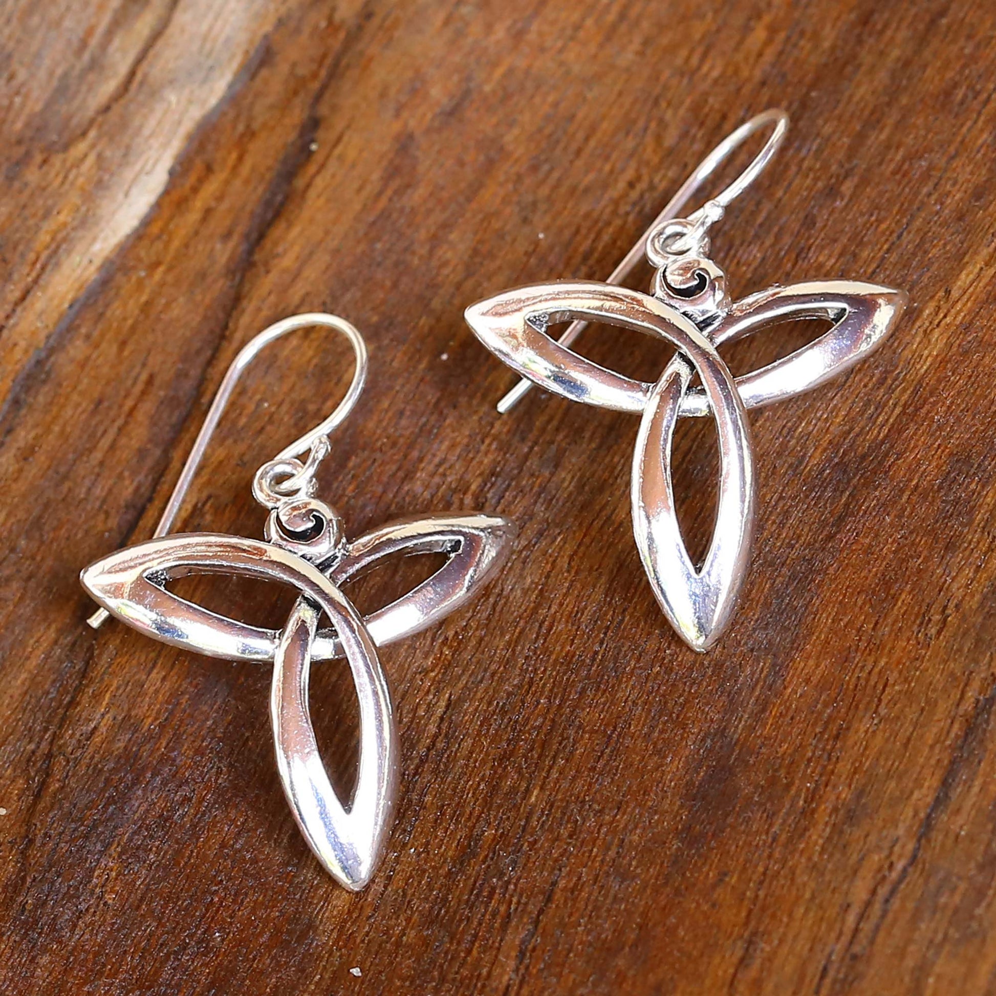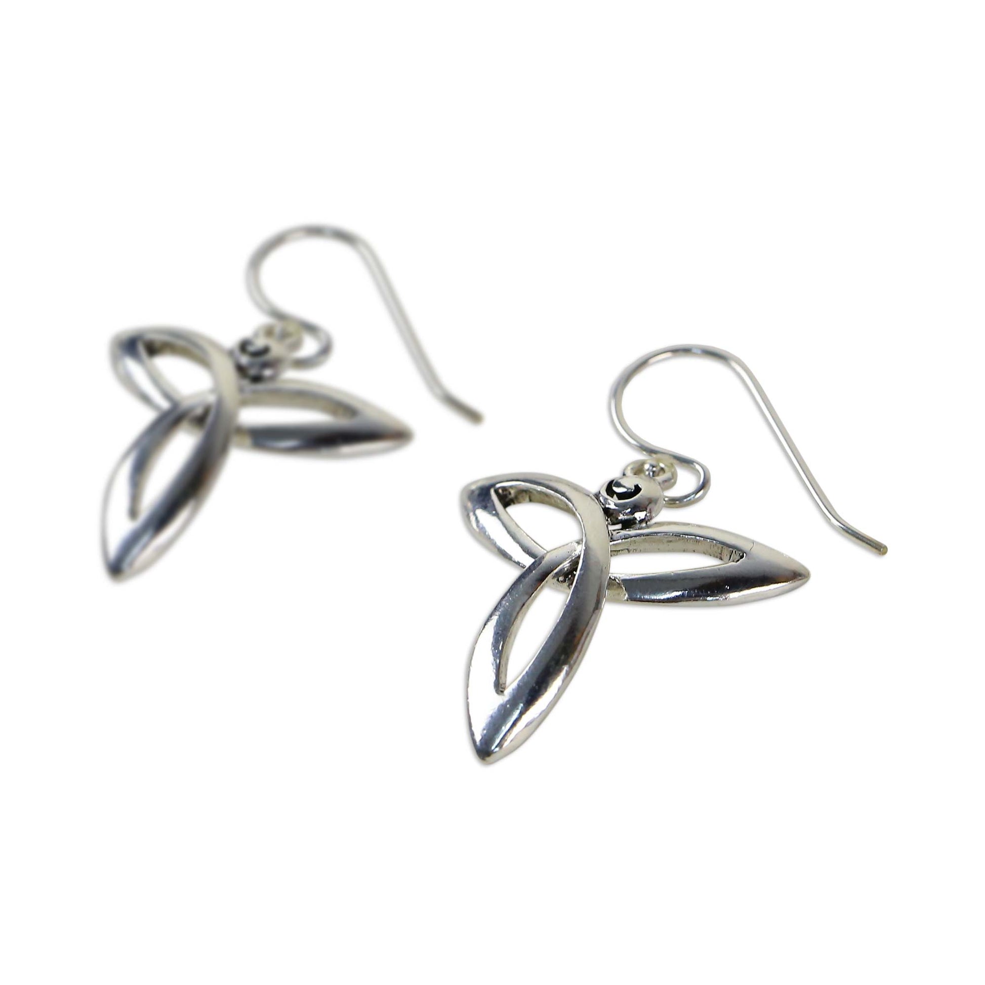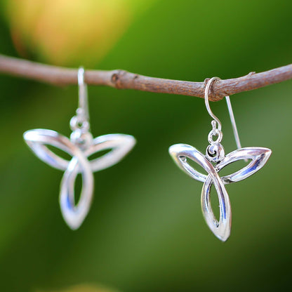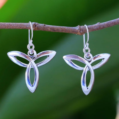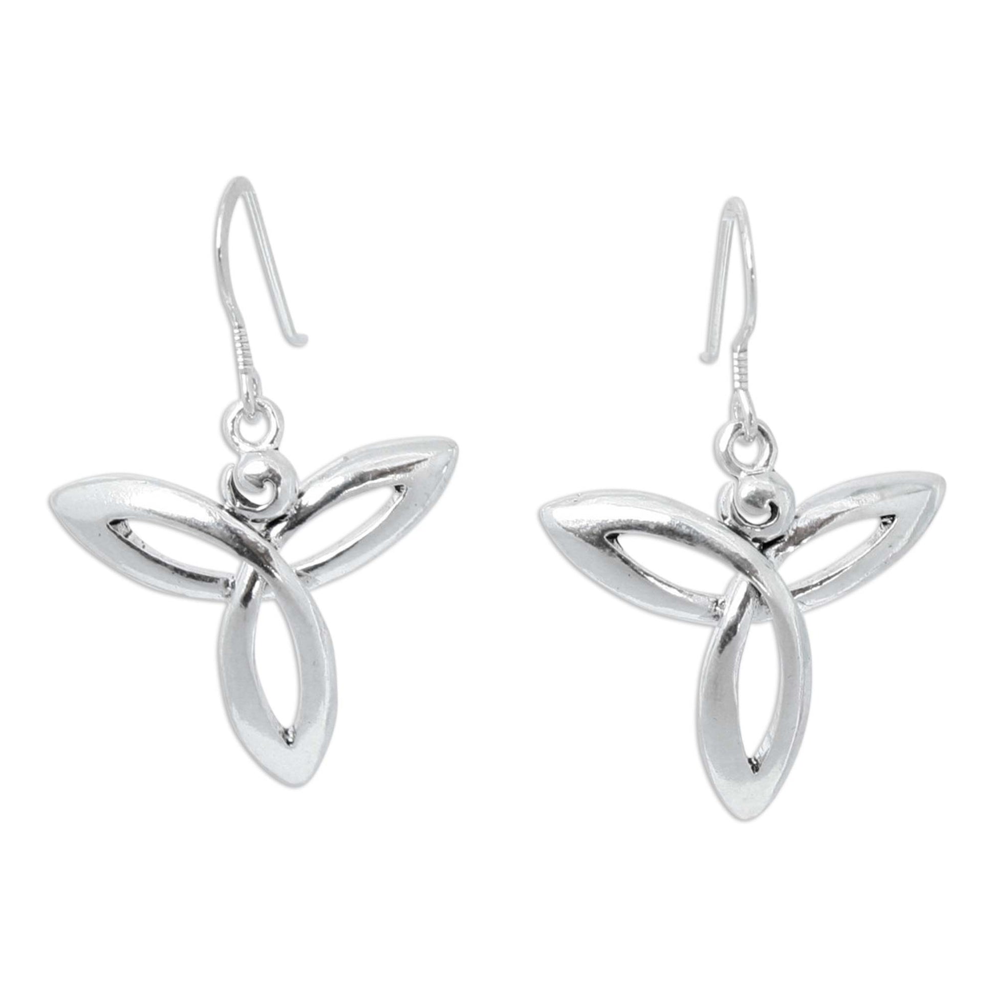 Streams of sterling silver flow into triangular knots with no decipherable beginning or end. In Celtic mysticism, they symbolize the timeless nature of the human spirit. Wadarat Supasirisuk accentuates the design with luminous spirals, creating a fabulous pair of sterling silver earrings.