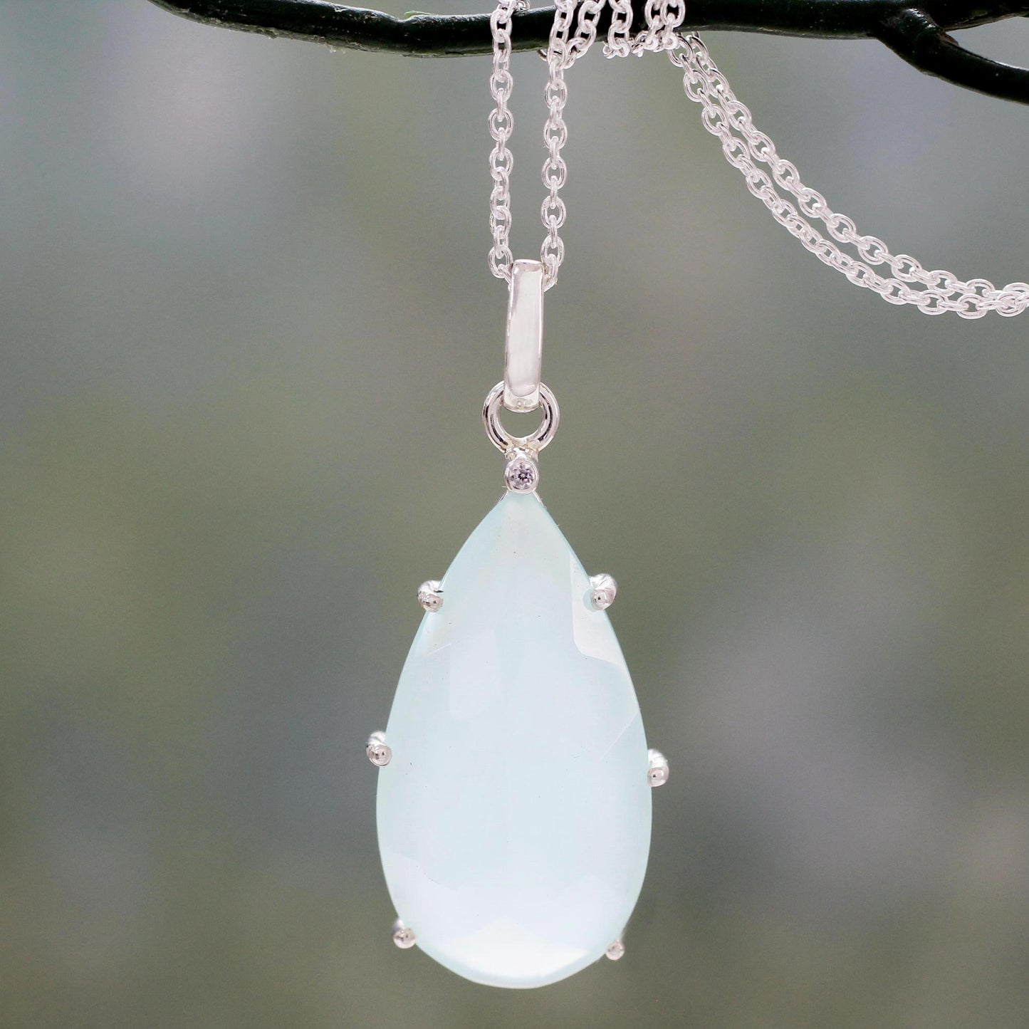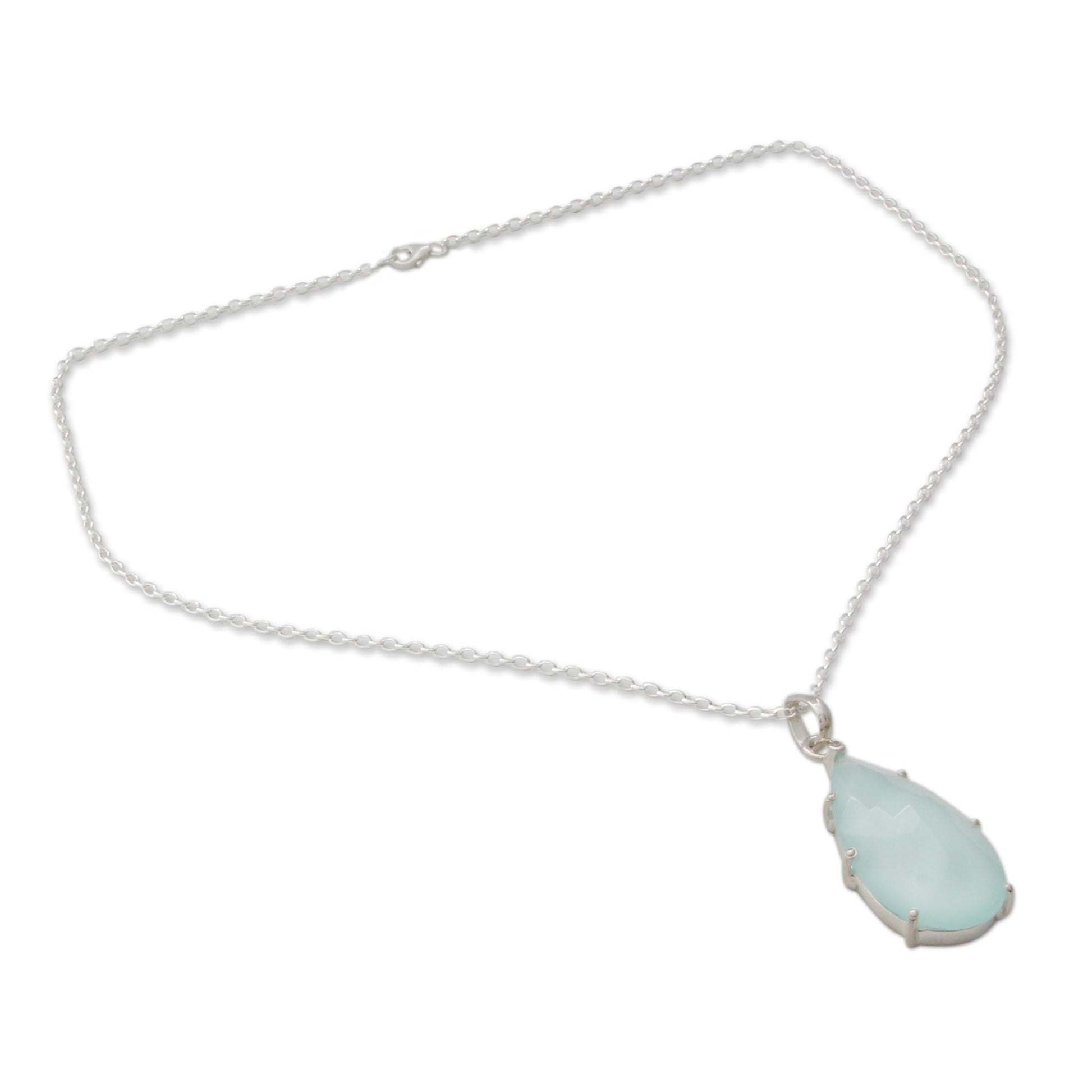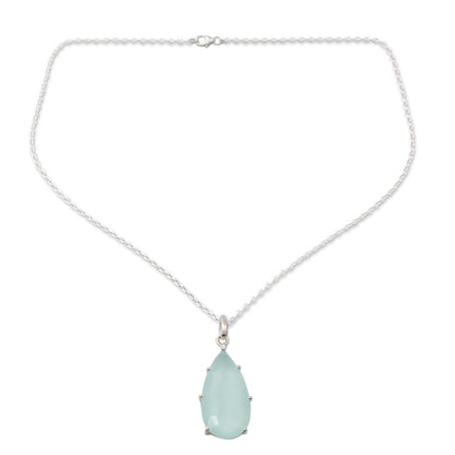 Aqua Drop Chalcedony & Silver Pendant Necklace