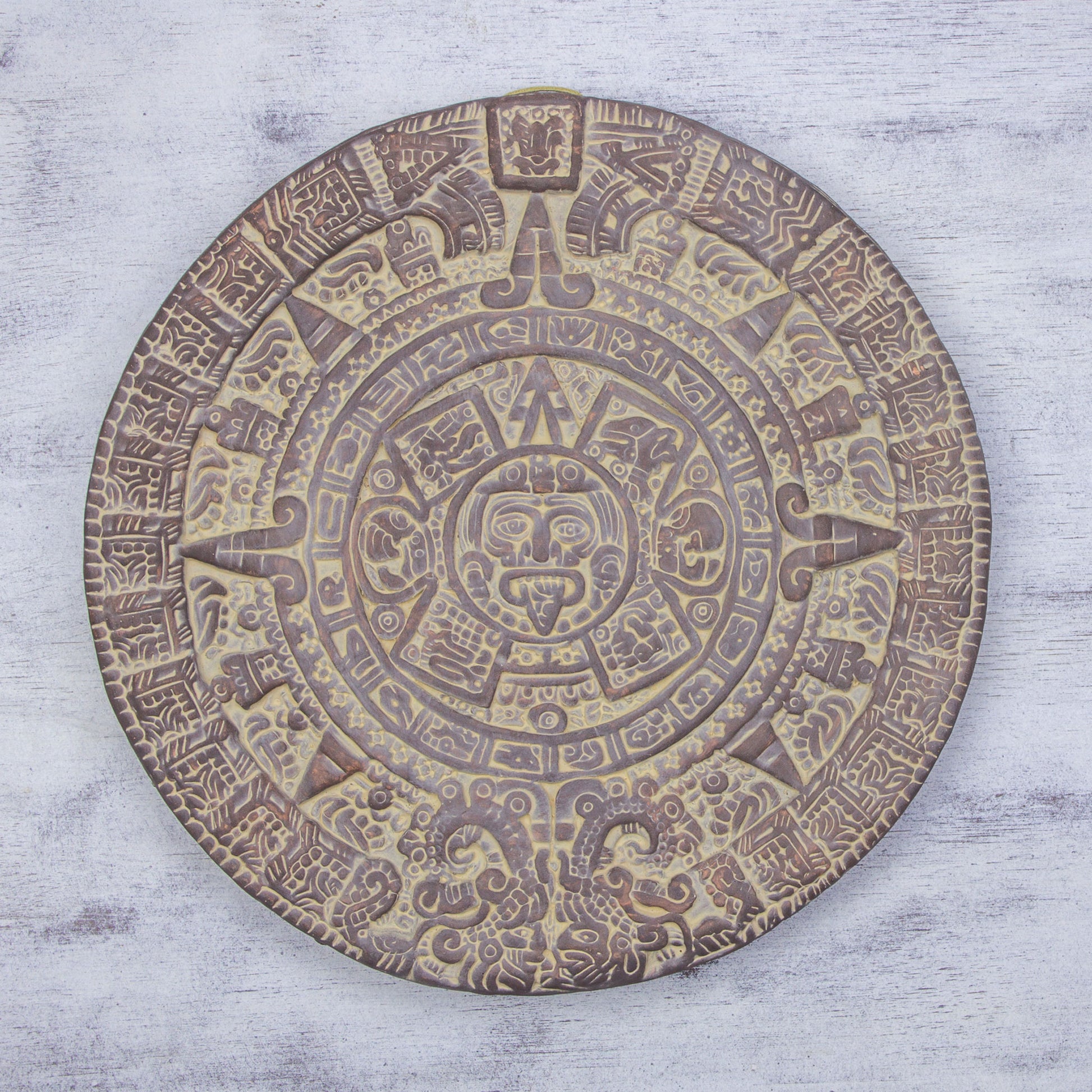 Aztec Calendar in Umber Unique Mexico Archaeological Ceramic Calendar