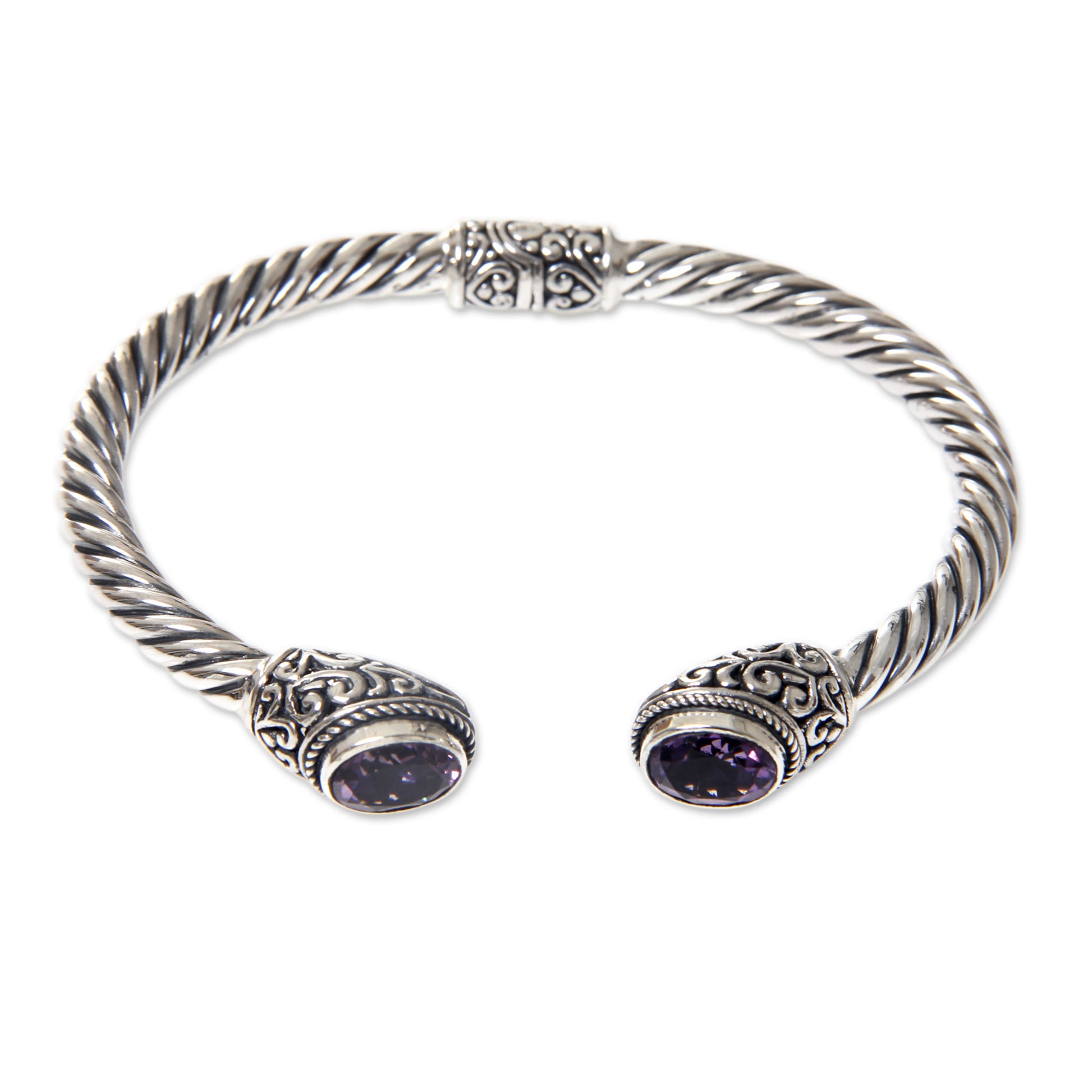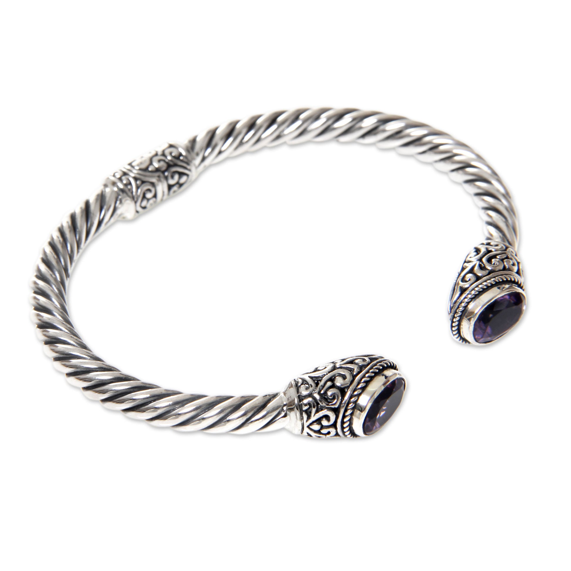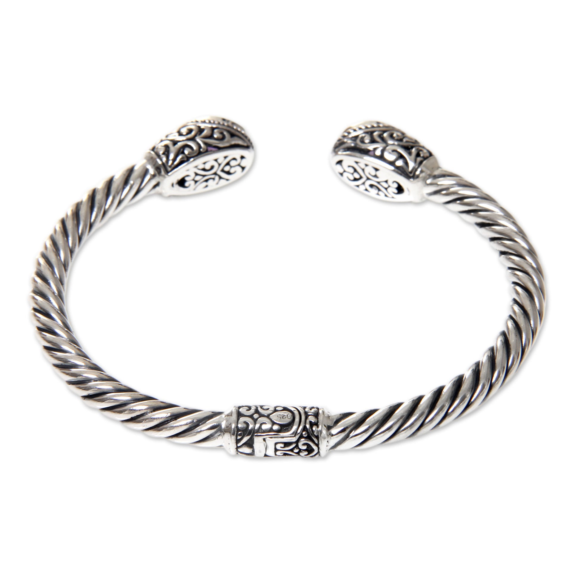 Bali Splendor Bali Jewelry Sterling Silver Cuff Bracelet with Amethyst