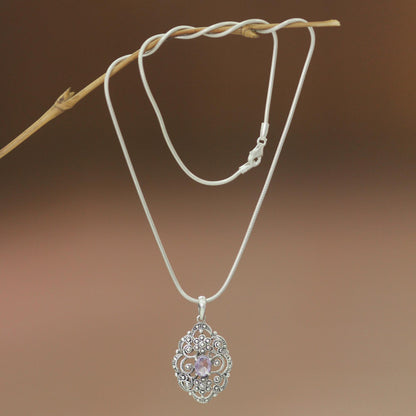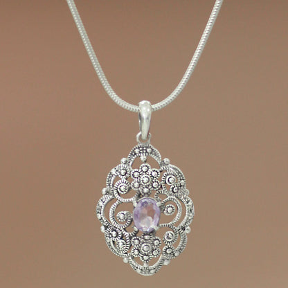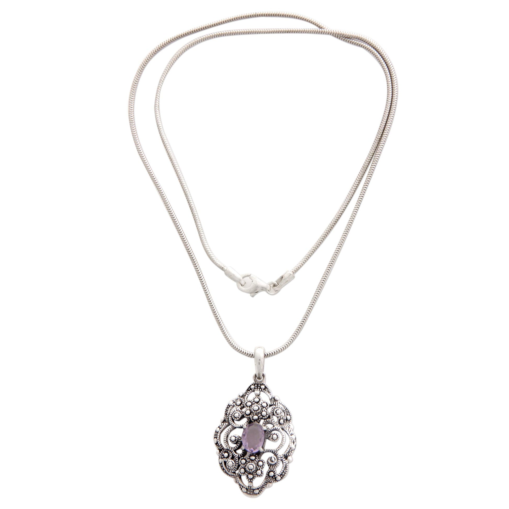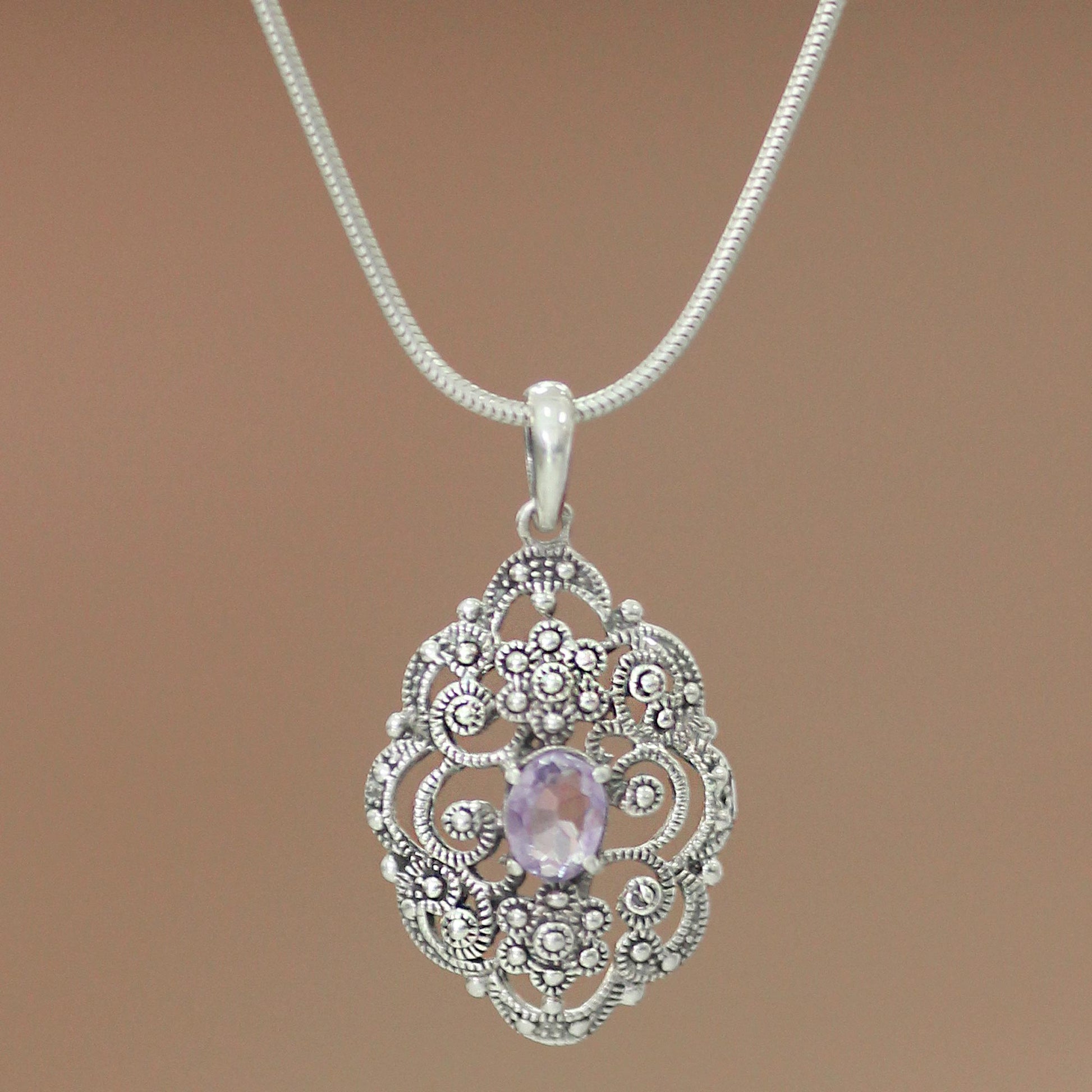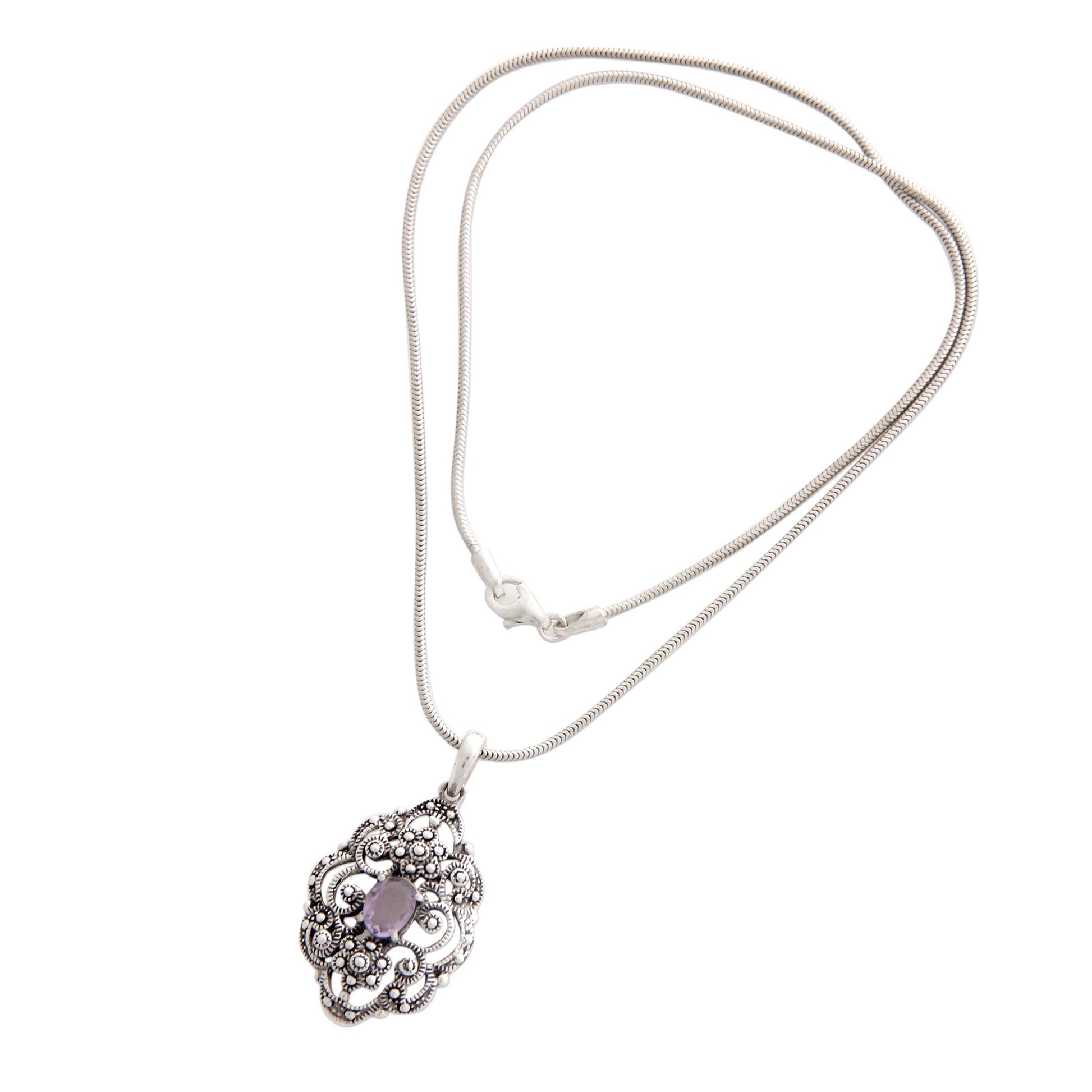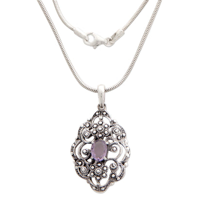 A perfect oval of faceted amethyst centers a beautiful pendant. Inspired by traditional Balinese designs, this ornate necklace from Wayan Asmana is handcrafted of sterling silver.
