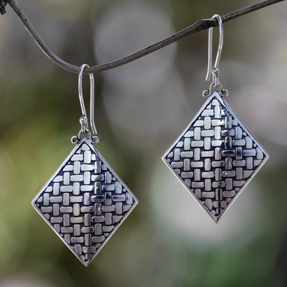 Shining diamonds reveal the textures of bedeg, or woven bamboo. Crafted by hand, the earrings from Komang Wijayana take their inspiration from nature.