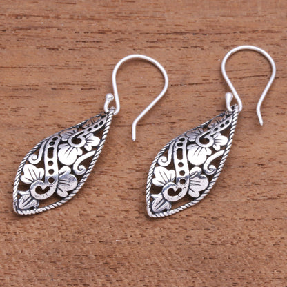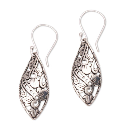 Crafted from sterling silver with a twisting shape, these dangle earrings are designed by Balinese artisan Dewa Arimbawa. He accentuates each earring with intricate vine patterns in lovely openwork.