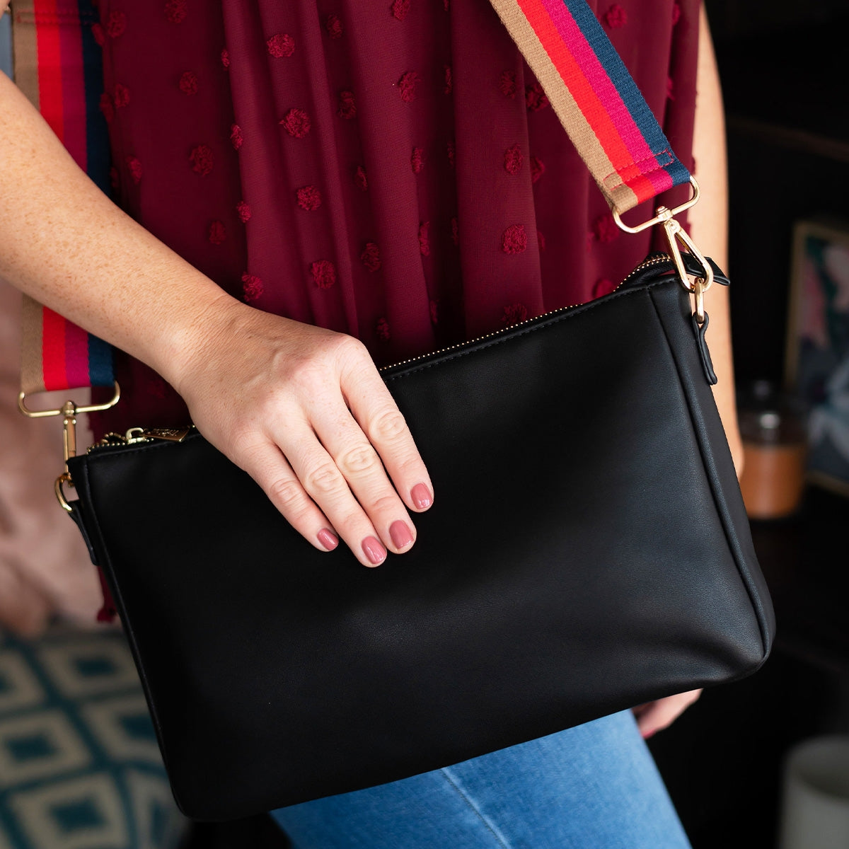 Looking for your new go-to purse? Look no further and say hello to the Hadley! This crossbody features a roomy interior, exterior zipper pocket, and a detachable and adjustable vegan leather crossbody strap. Pro Tip: Add one of our fun patterned Crossbody Straps to elevate the look!