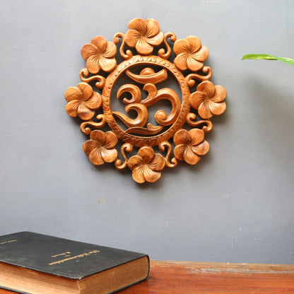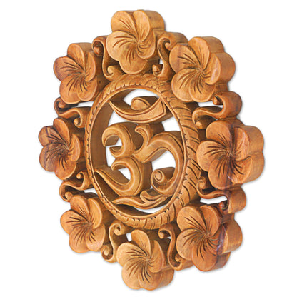 Blooming Om Suar Wood Wall Relief Panel Floral Om from Indonesia