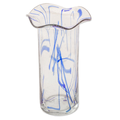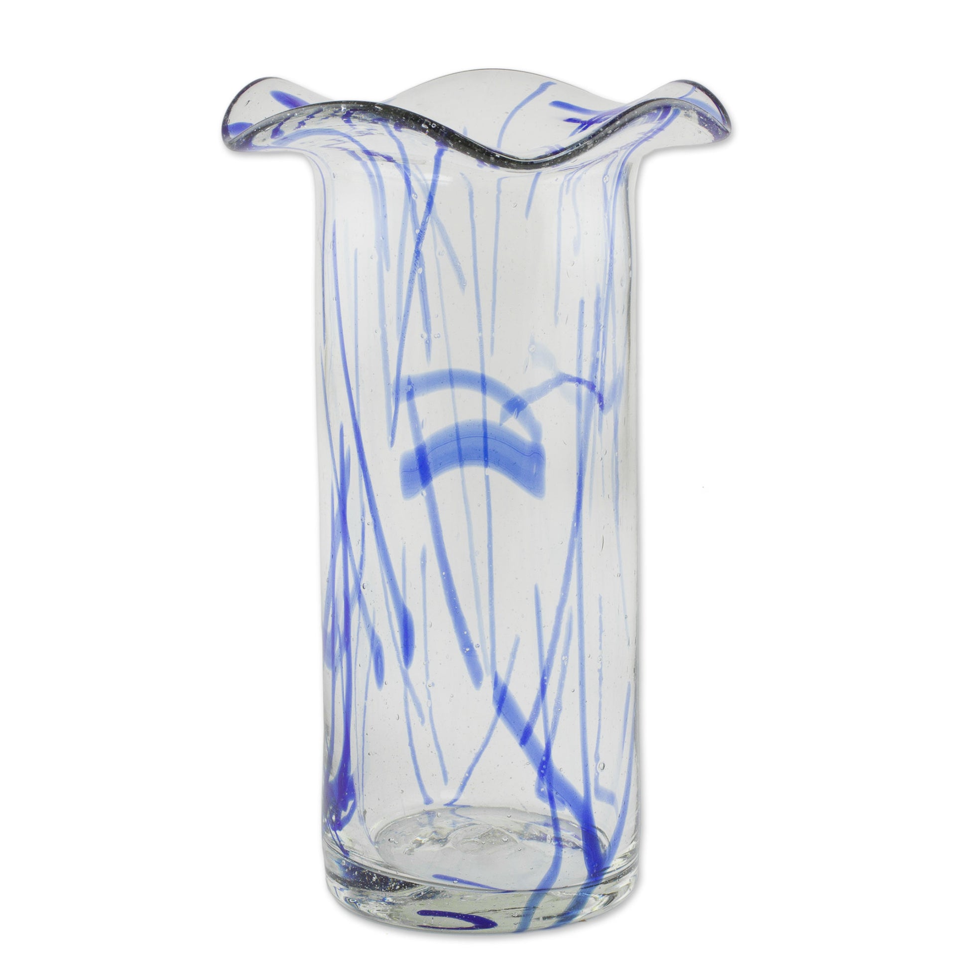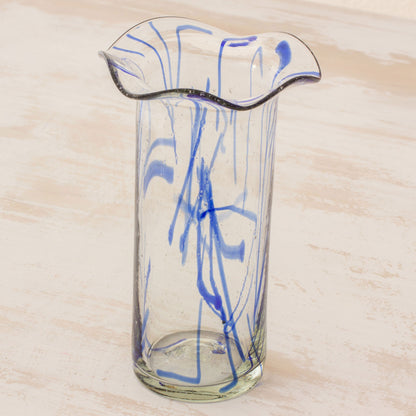 Blue Frost Hand-Blown Recycled Glass Vase from Guatemala