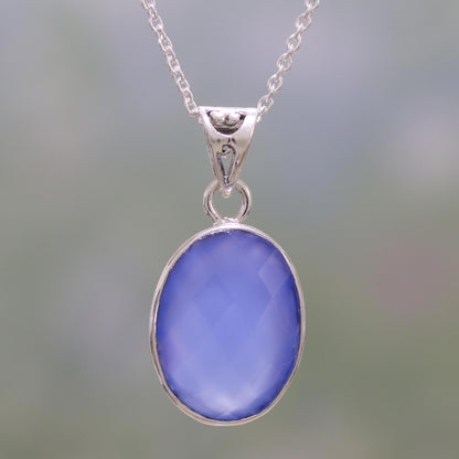 Blue Serenity Eight Carat Chalcedony and Sterling Silver Pendant Necklace