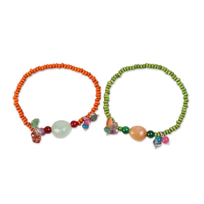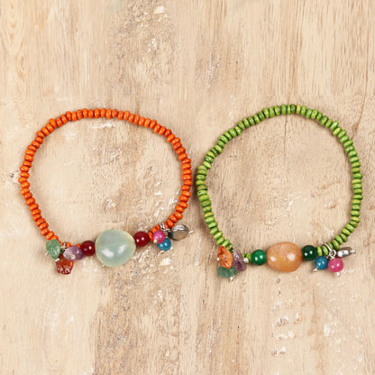Boho Colors Quartz and Wood Beaded Stretch Bracelets from India (Pair)