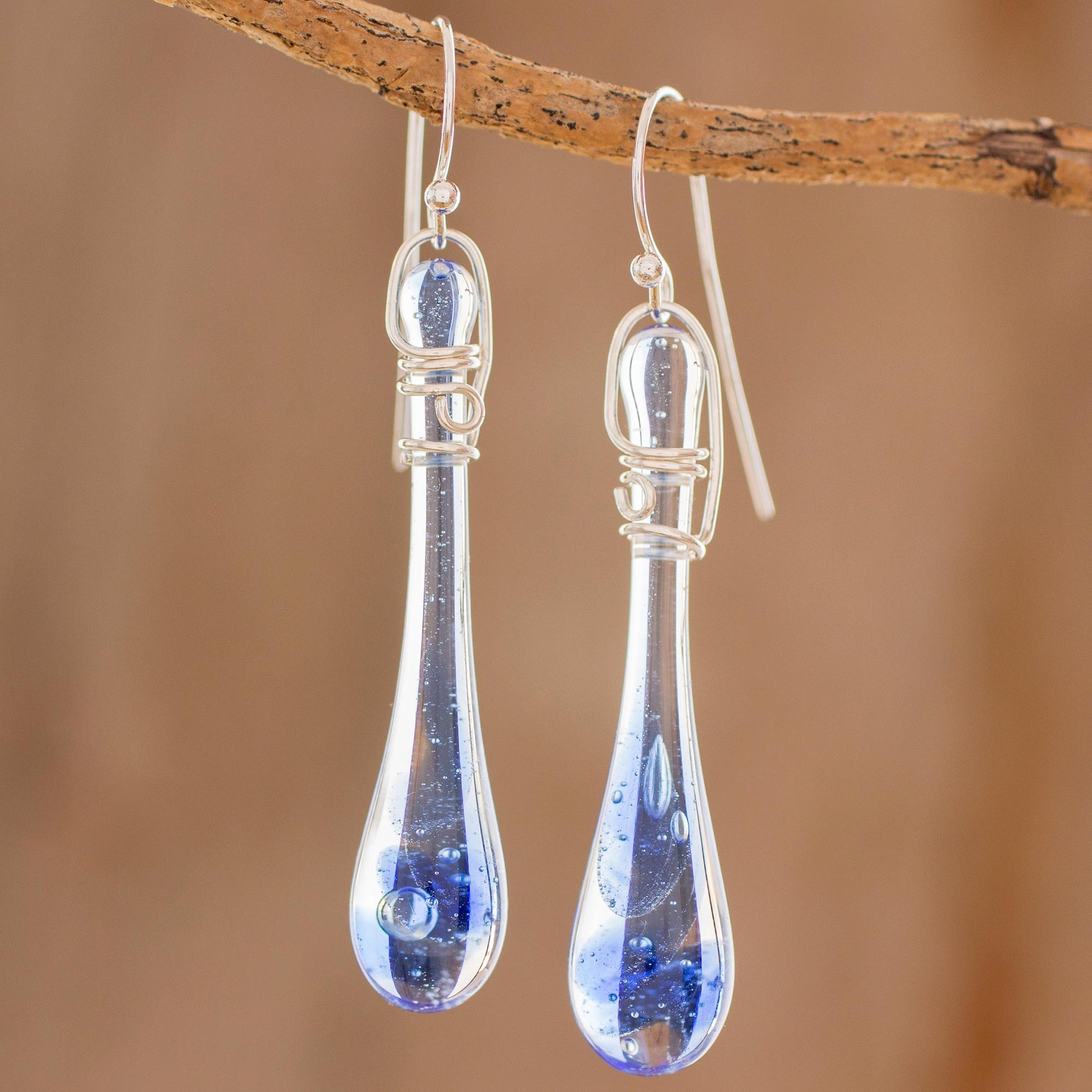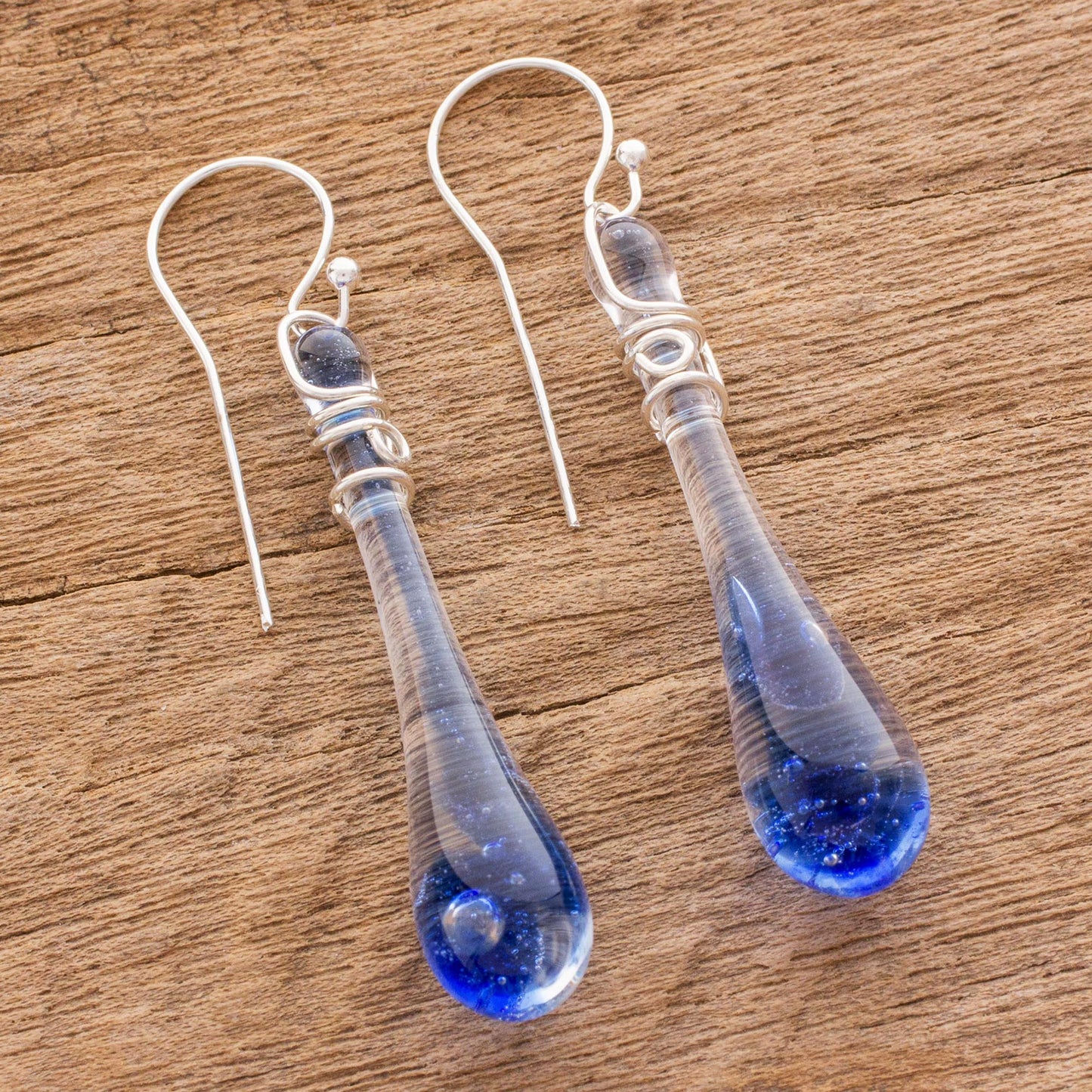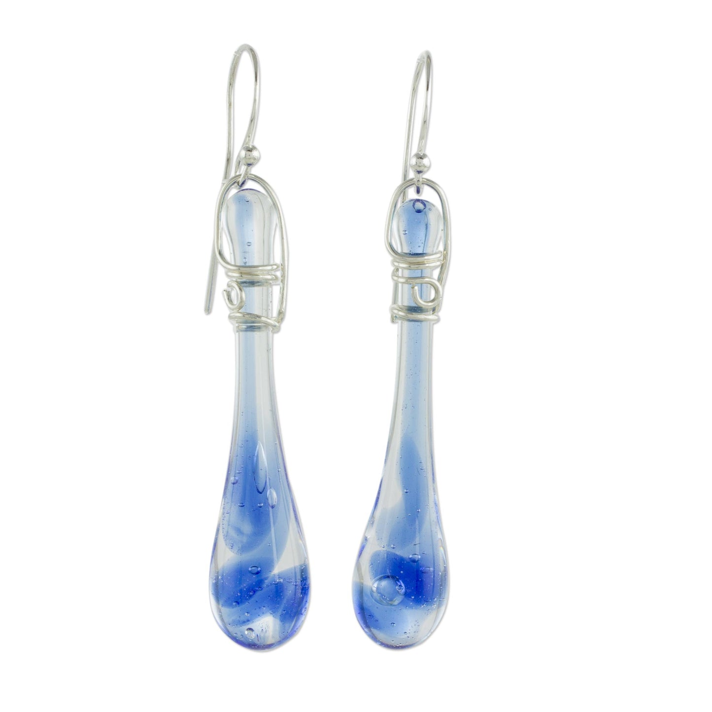 Bubbling Spring Glass Dangle Earrings in Blue from Costa Rica (2 inch)