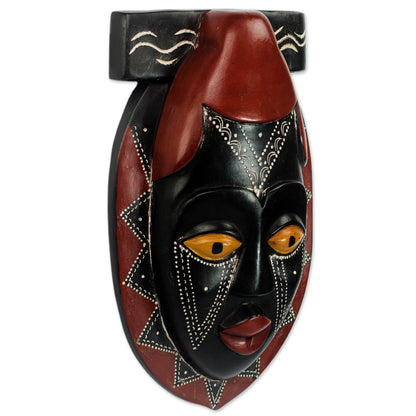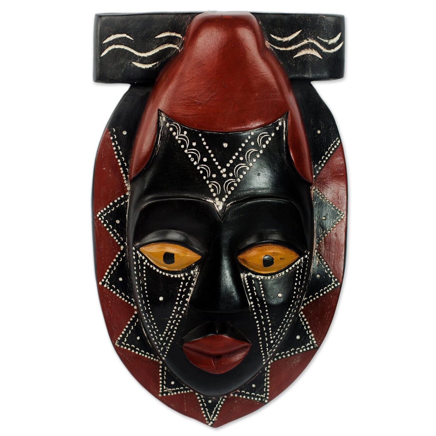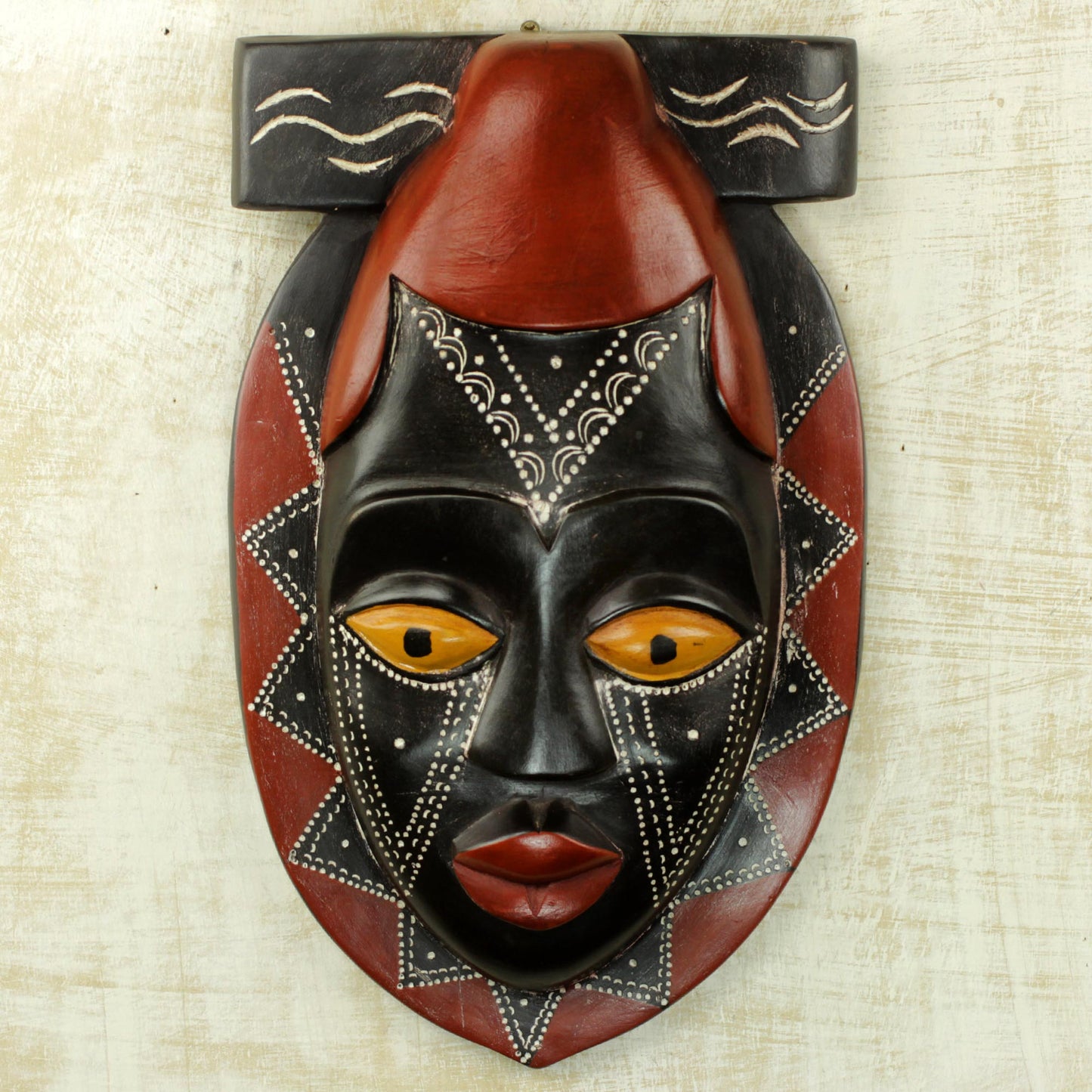 Buruwa Black and Red African Wood Mask Hand Carved by Ghana Artisan