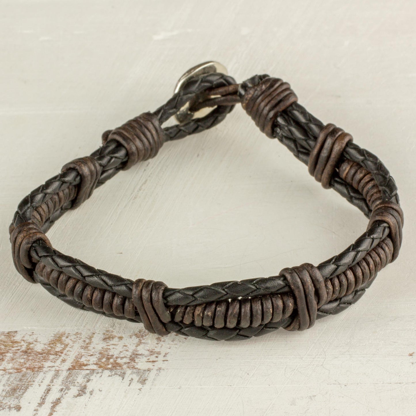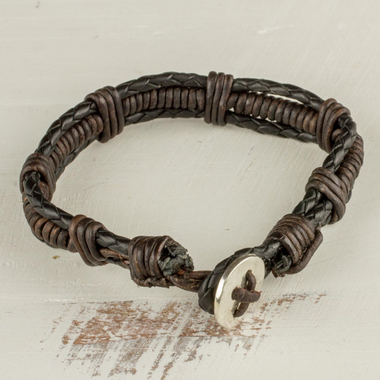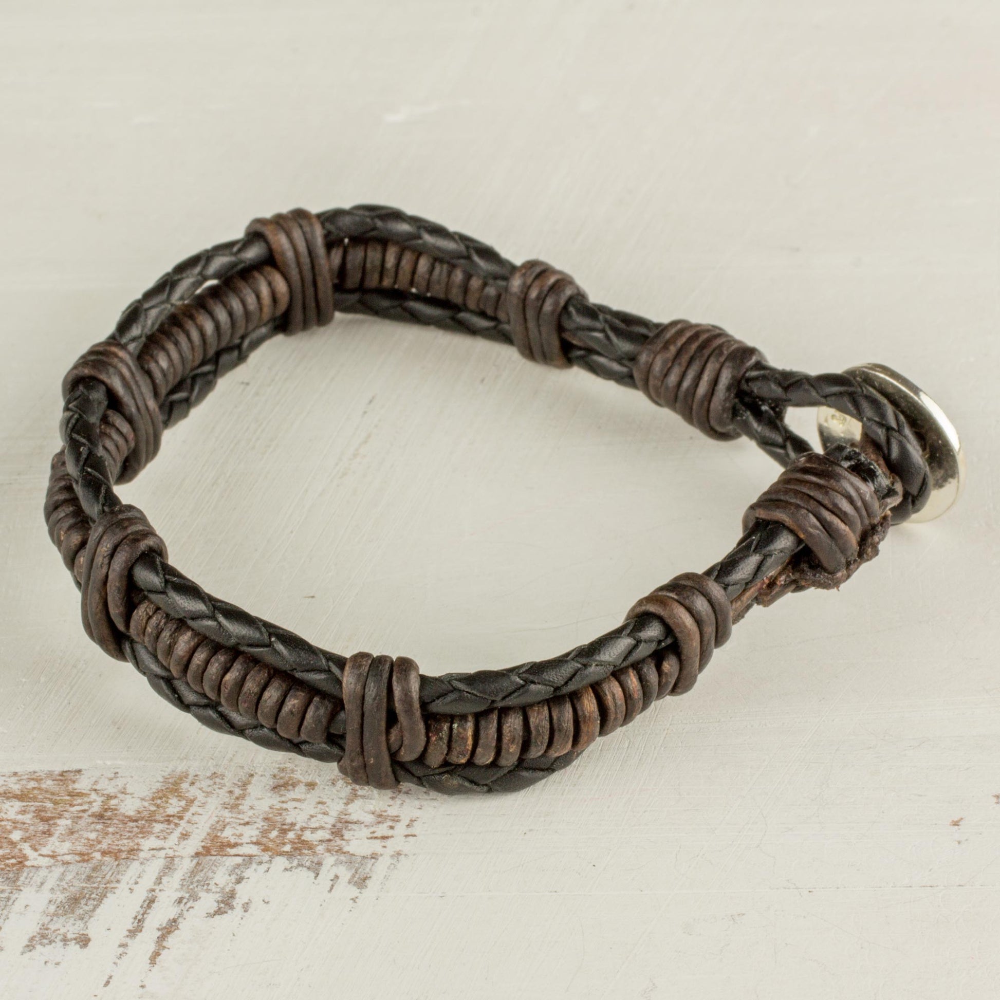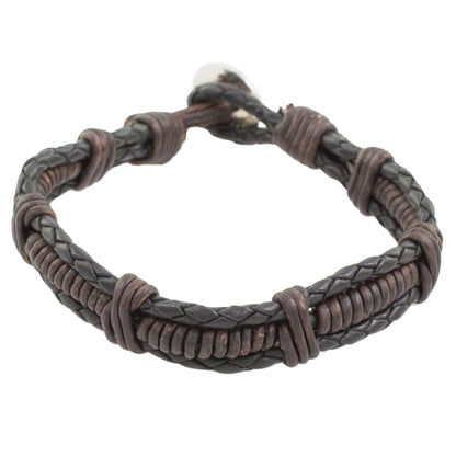 This simple leather bracelet will add charm for any casual outing. The young artisans at Jalapa Girl Jewelsmiths work together to create this bracelet, closing it with a button made of fine silver.