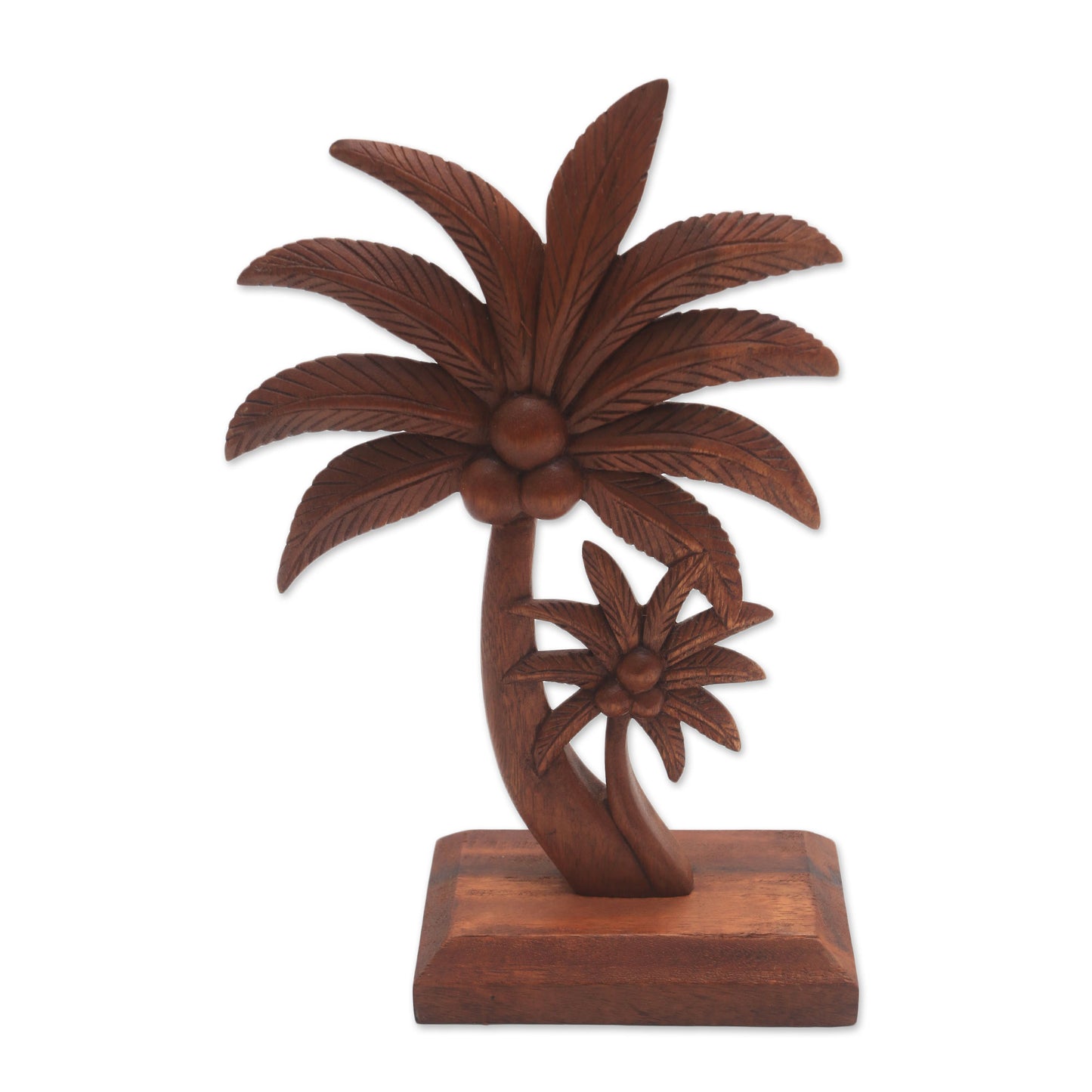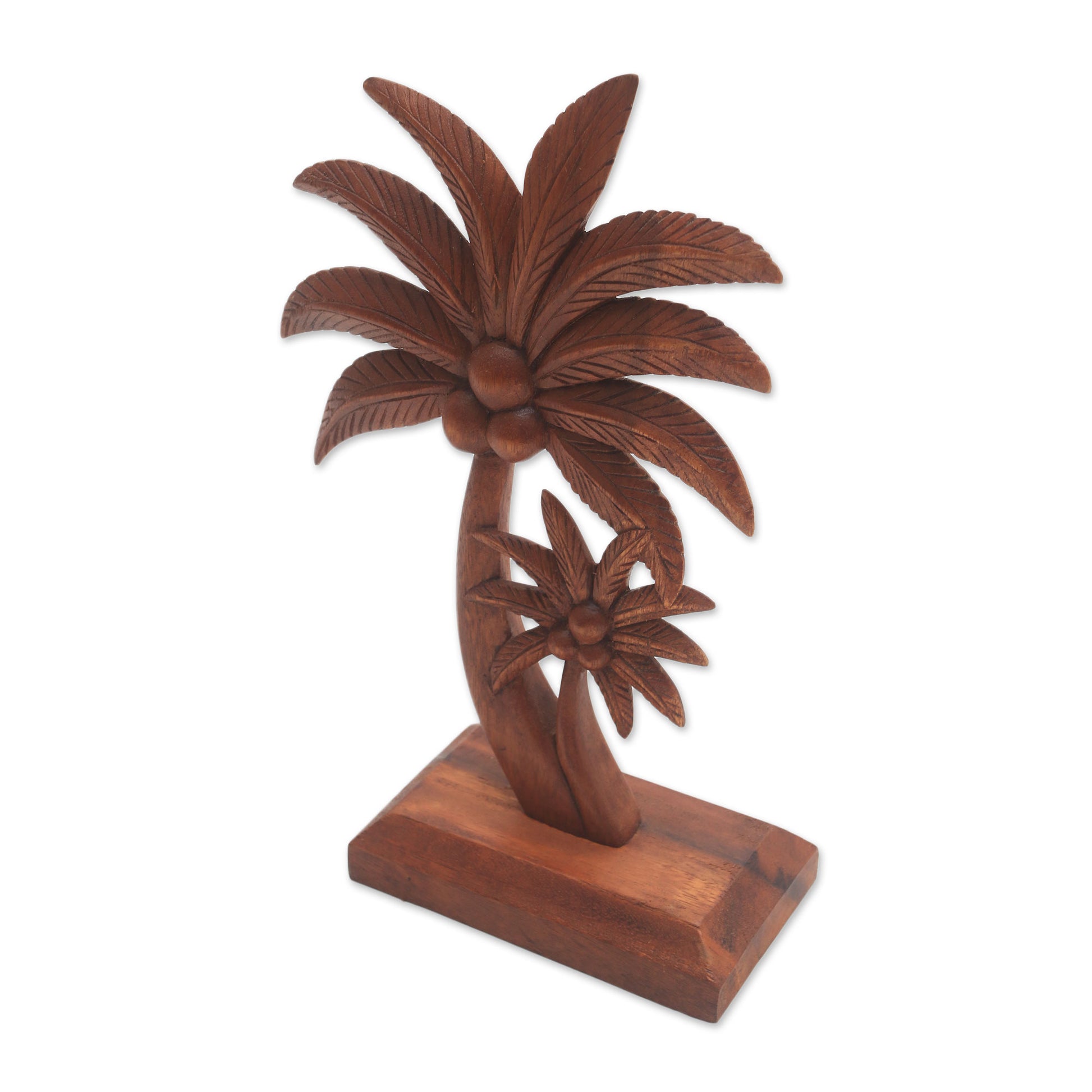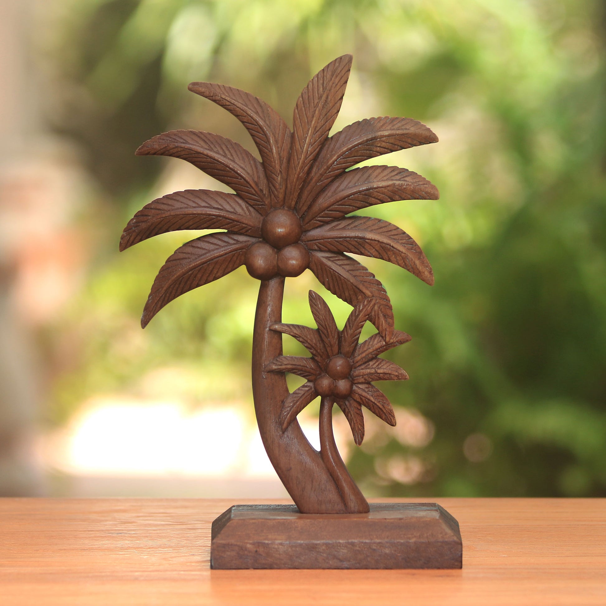 Coconut Trees Hand-Carved Wood Coconut Tree Statuette from Bali