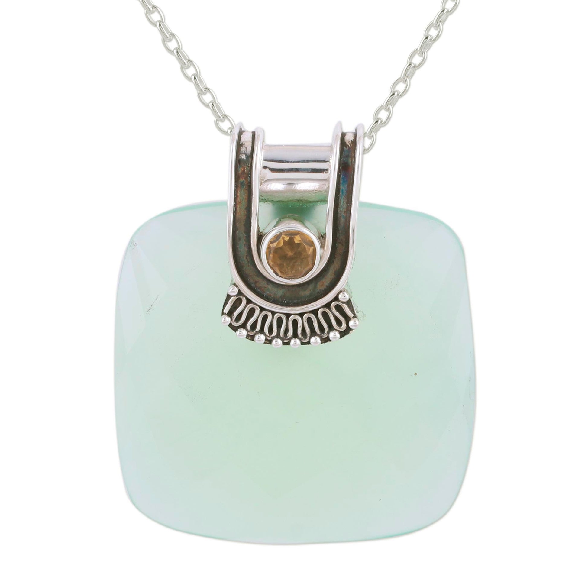 Cool Desire Chalcedony and Citrine Pendant Necklace from India