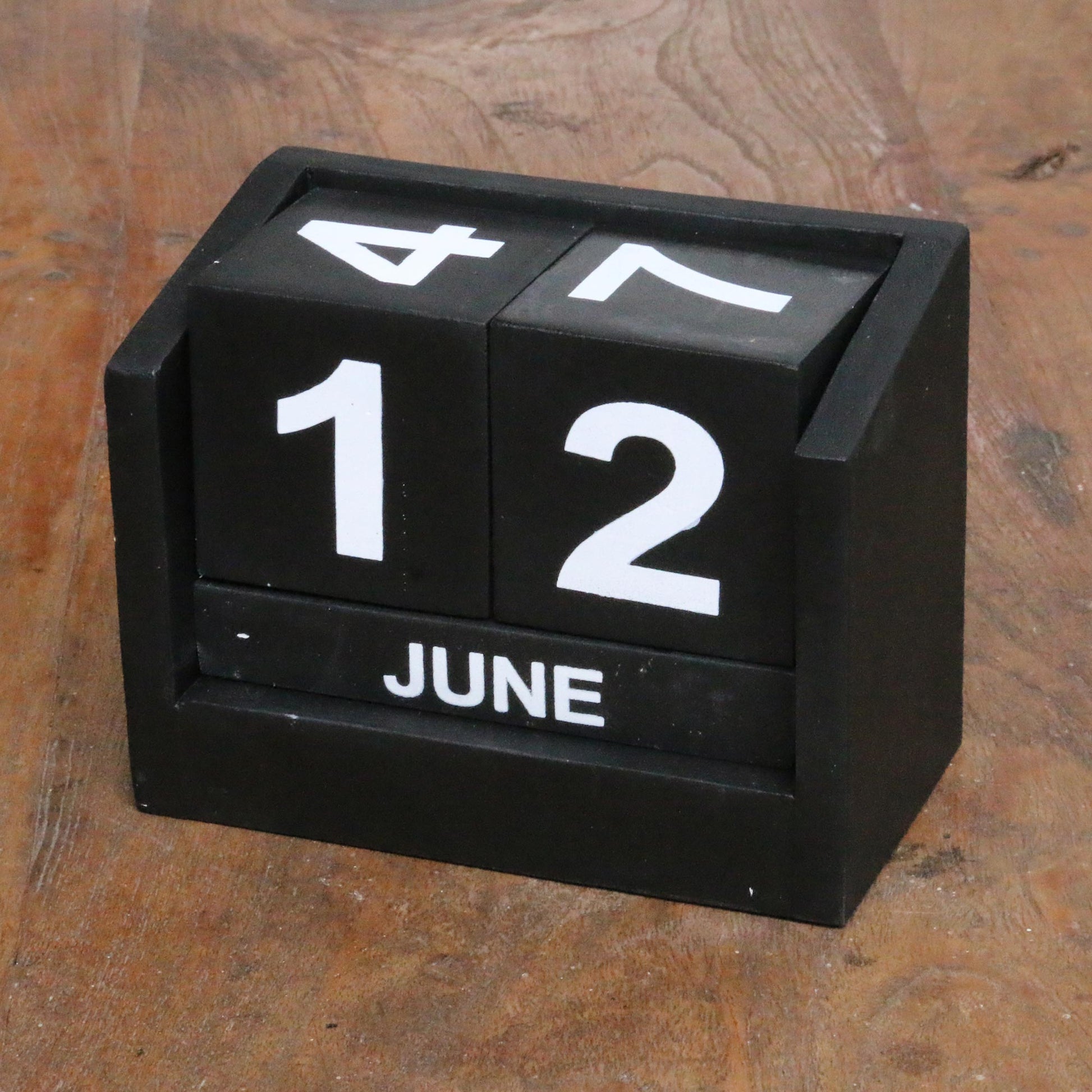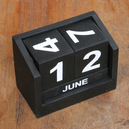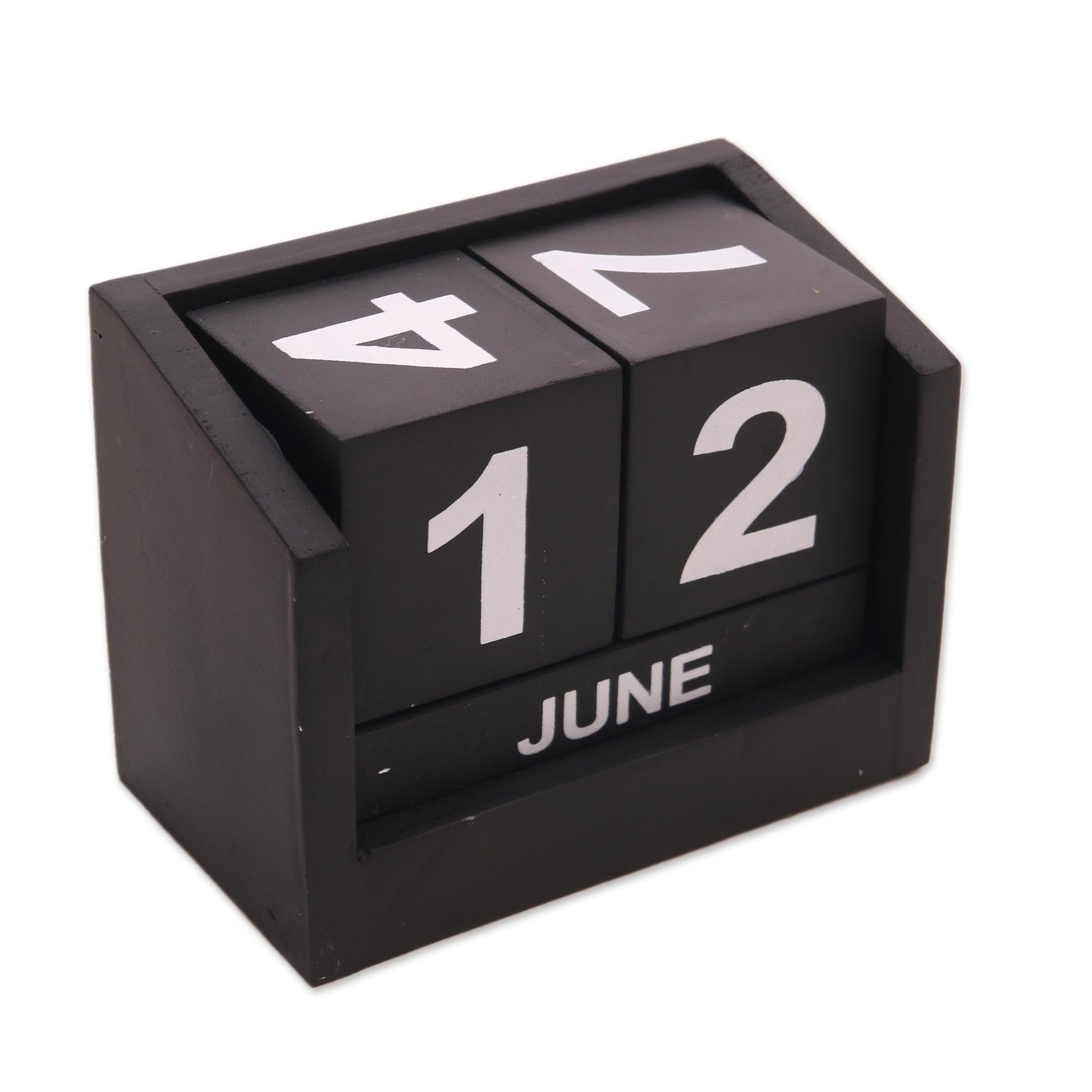Counting the Days in Black Wood Perpetual Calendar in Black from Bali