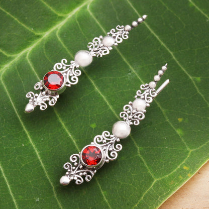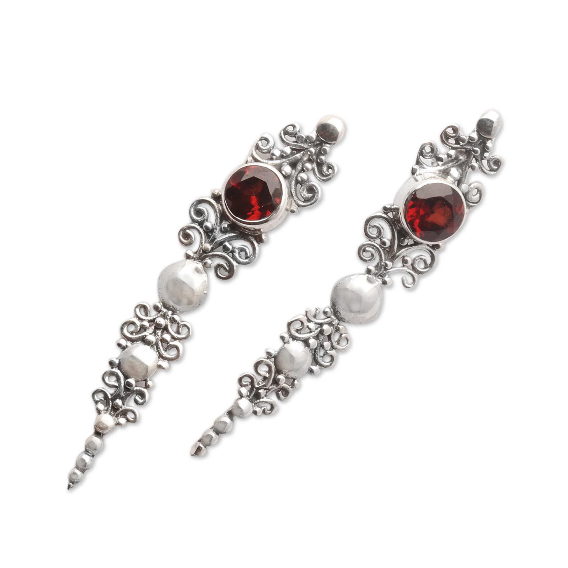 Crimson Penjor Garnet and Sterling Silver Ear Climber Earrings