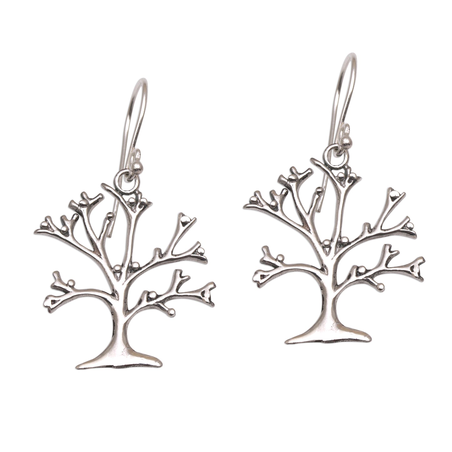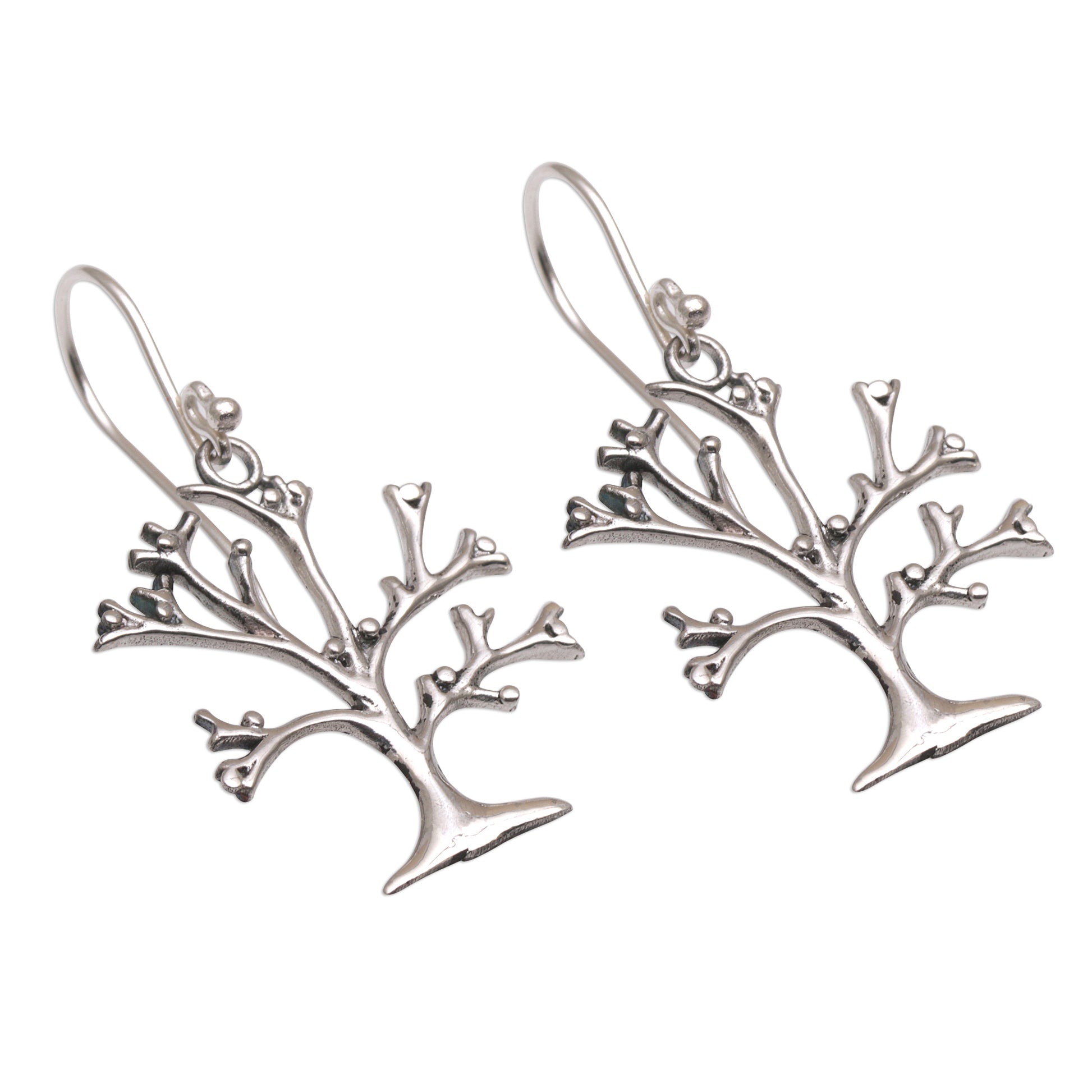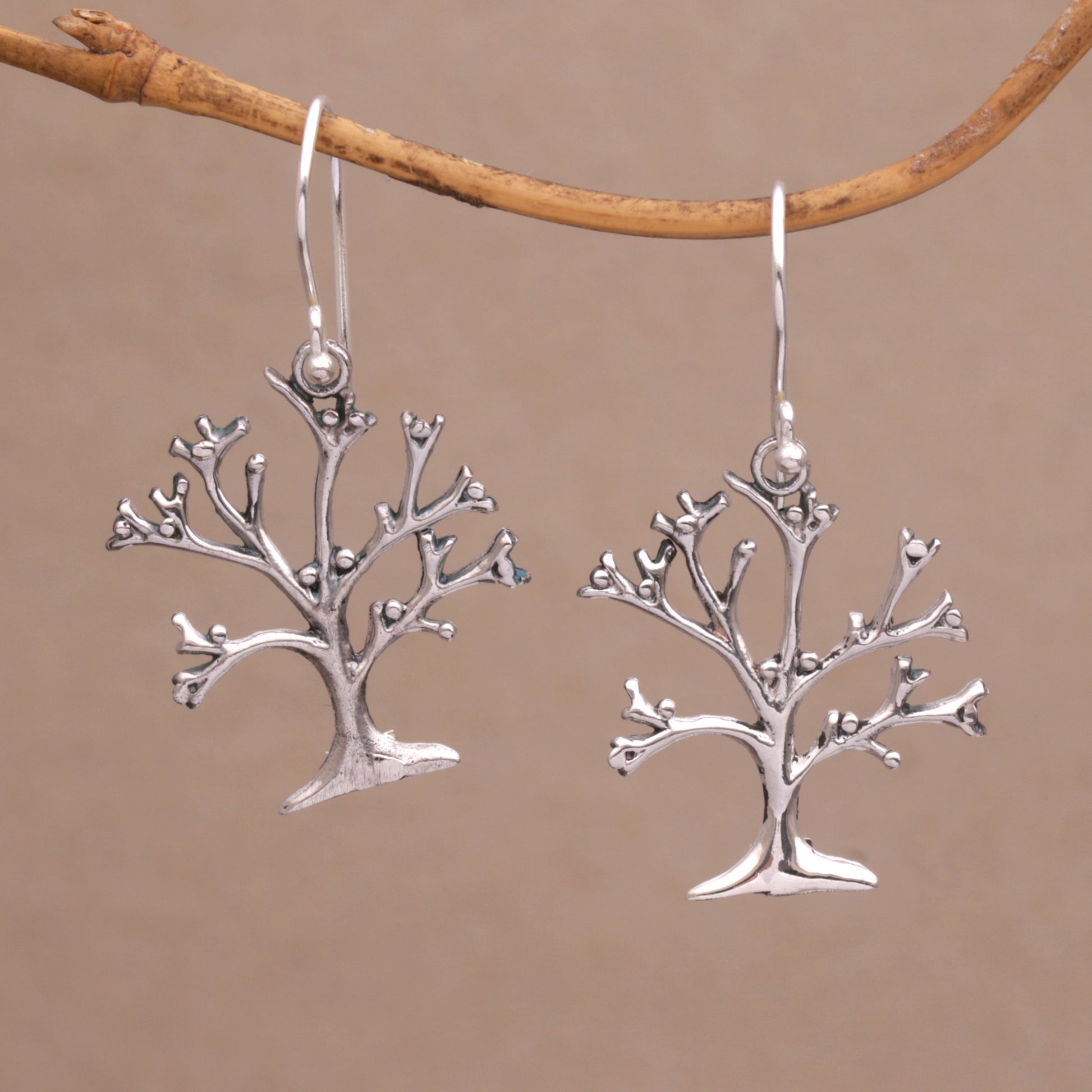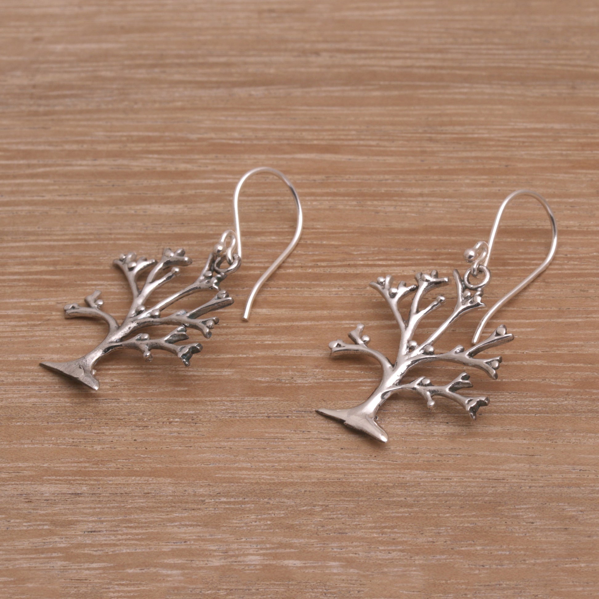Dainty Bark Tree-Shaped Sterling Silver Dangle Earrings from Bali