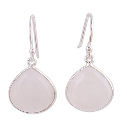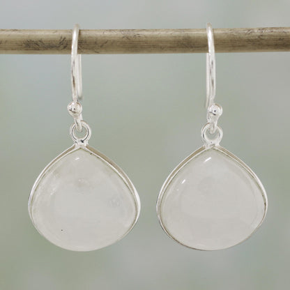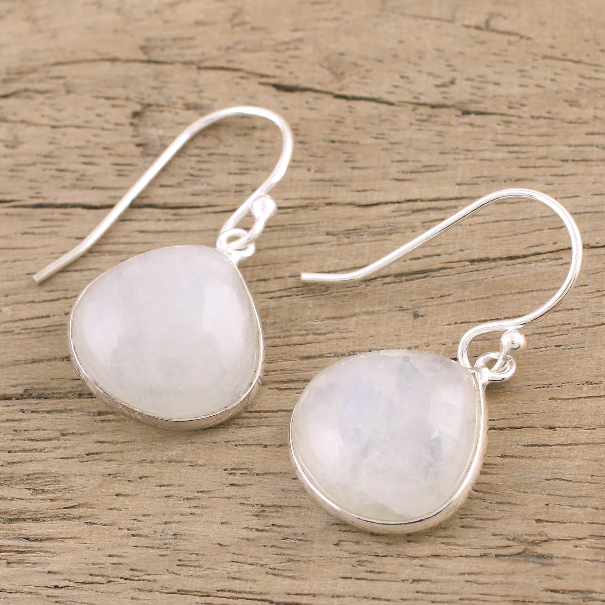 Two elegant teardrops of rainbow moonstone dance below the ears in this pair of dangle earrings from India. Neetu Barathi chooses rainbow moonstone as a stone that enhances feeling and emotion, framing each with high-polish sterling silver that hangs on hooks.