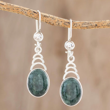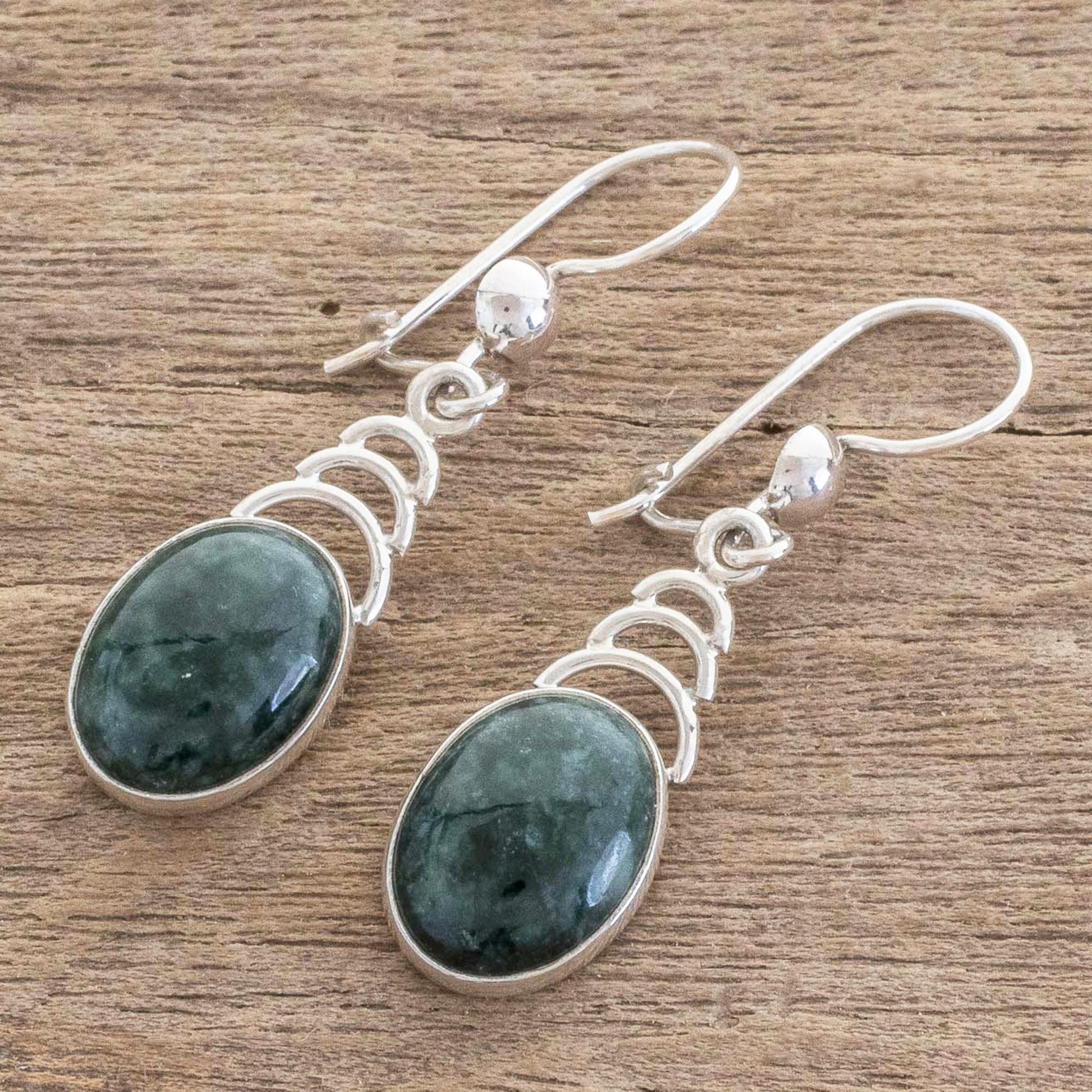 Dark Green Antique Arcs Arc Motif Jade Dangle Earrings from Guatemala