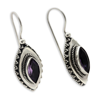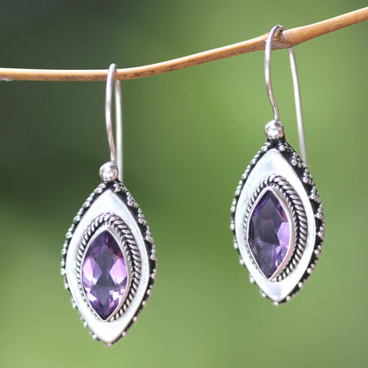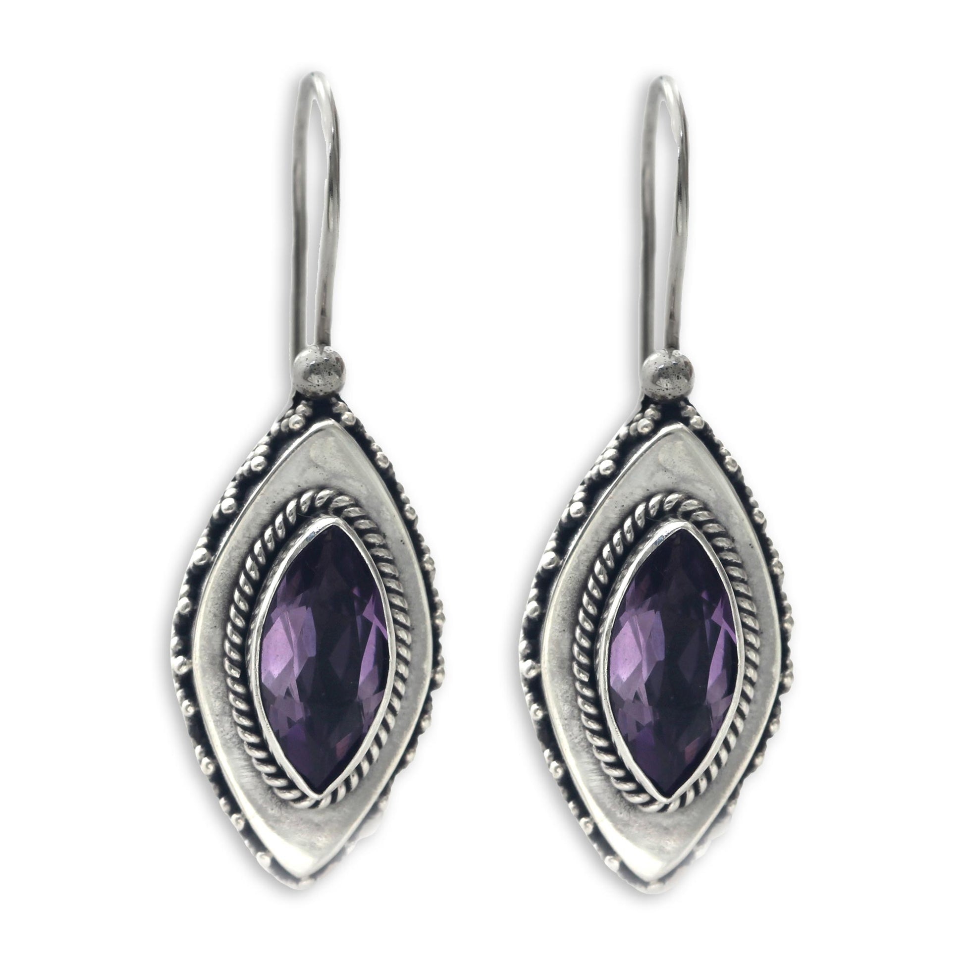Shaped like diamonds, faceted amethysts sparkle in their sleek argent settings. These beautiful earrings by Kenari fuse modern styling with Indonesian tradition.