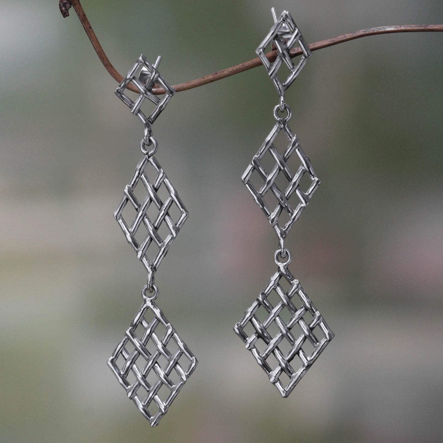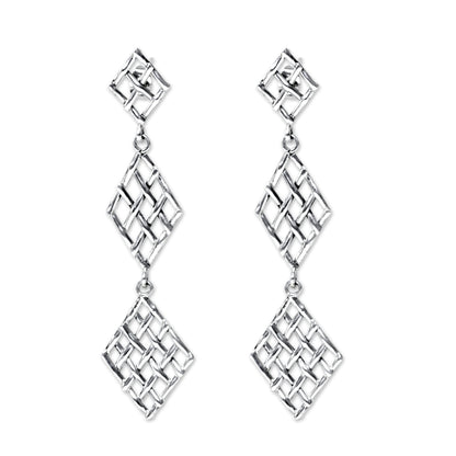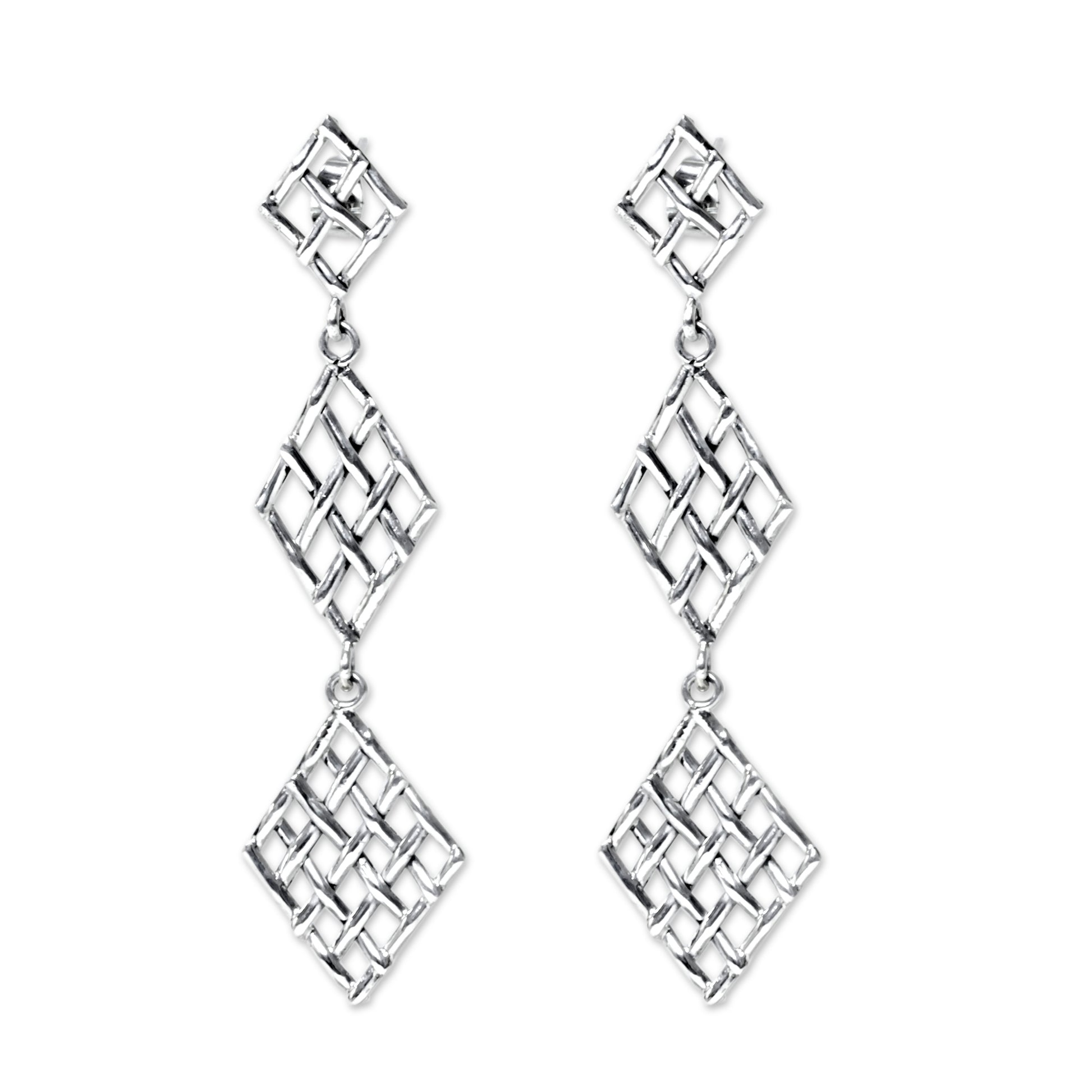 Woven by hand, sterling strands form silver diamonds that cascade in feminine earrings. Bali's Komang Wijayana presents a modern design of timeless elegance.