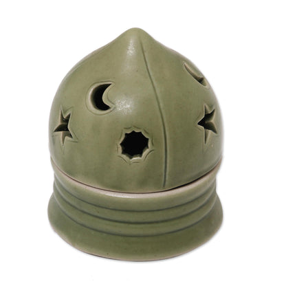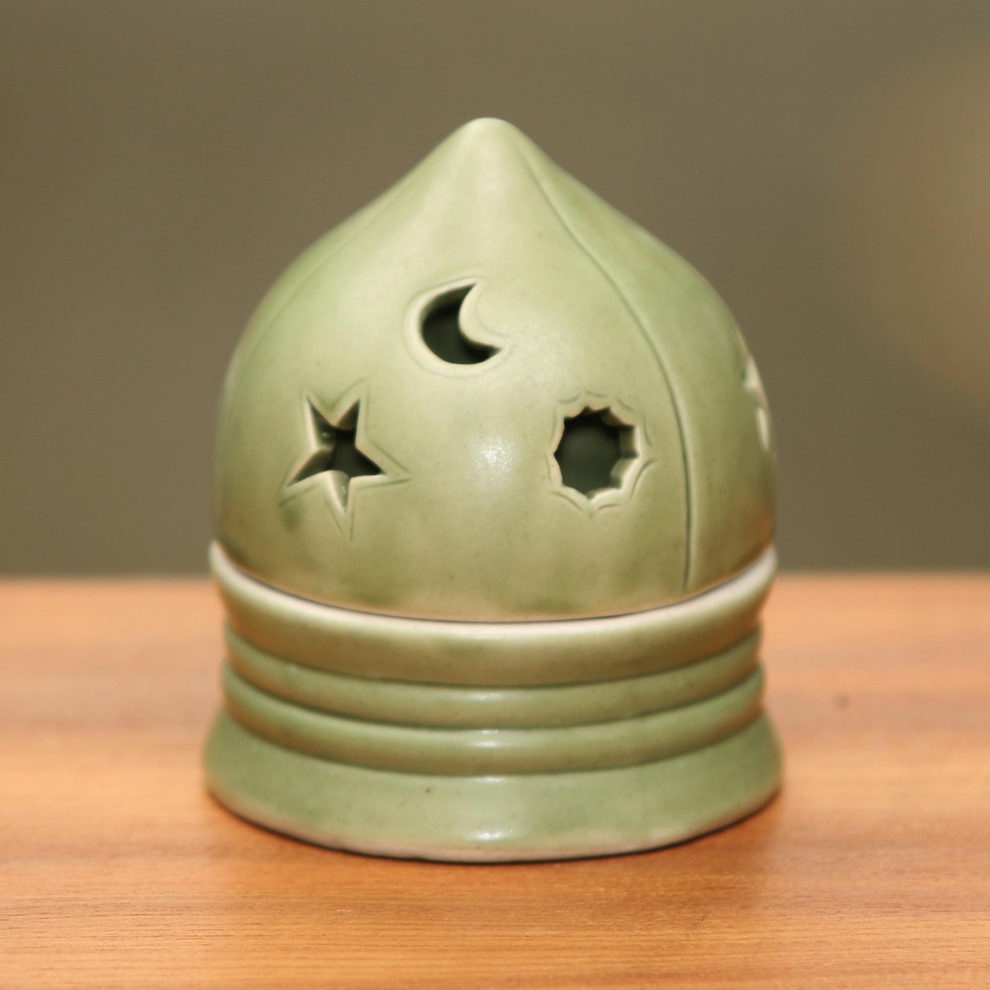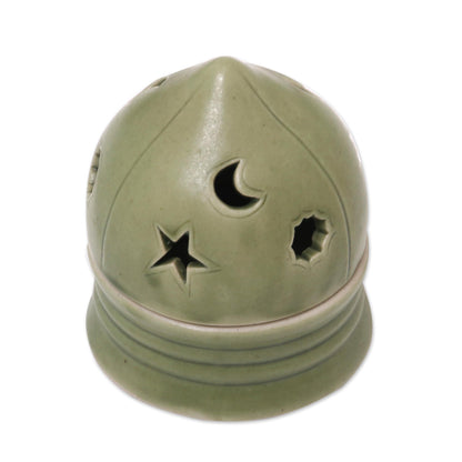 Dome of Light Green Sky Theme Ceramic Candleholder for a Tealight Candle