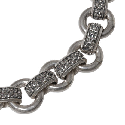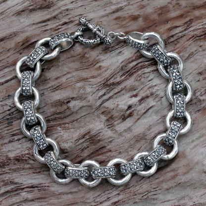 Dragon Legacy Men's Silver Textured Link Bracelet from Indonesia