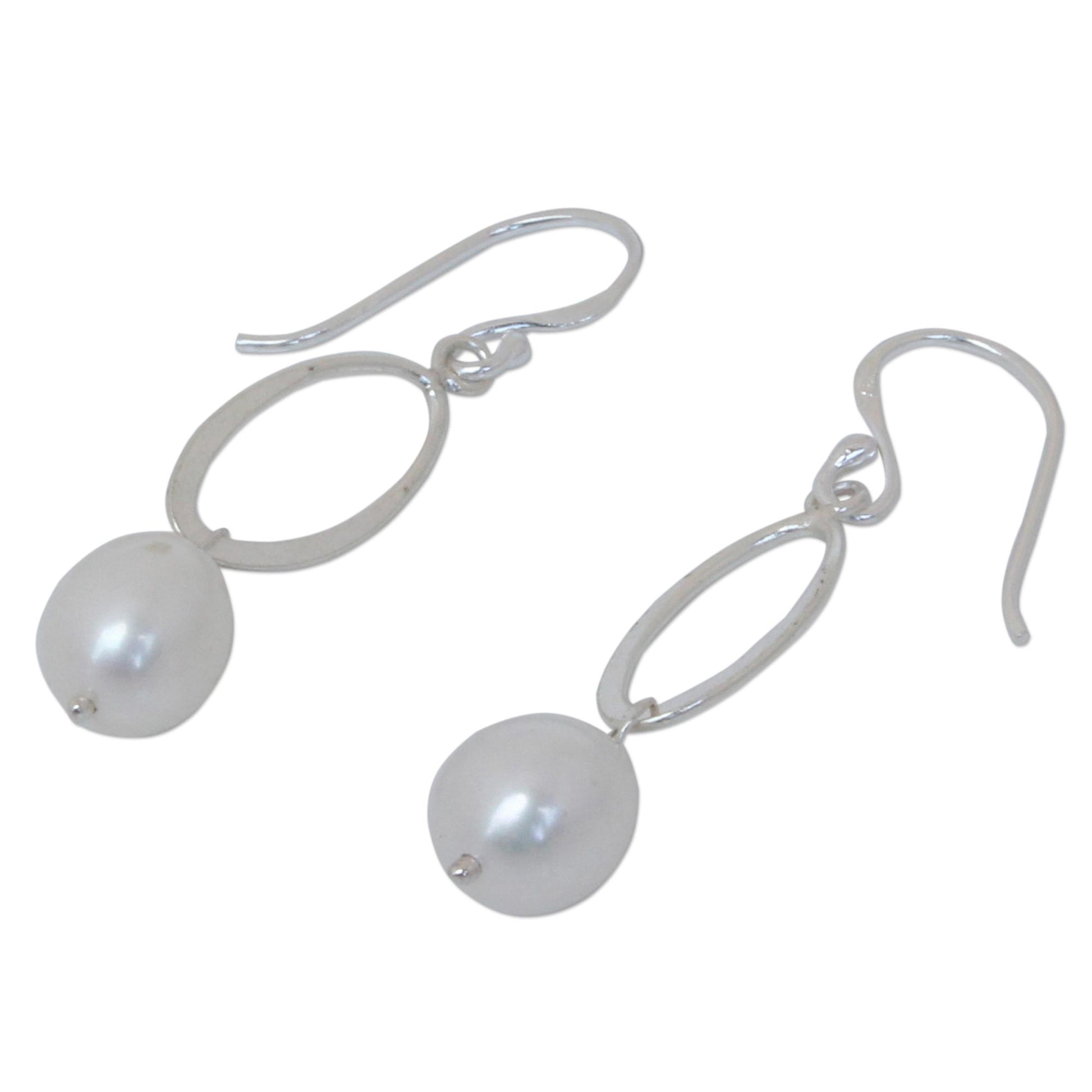 Ancient Asian myths told of pearls falling from the sky when dragons fought. Today, cultured pearls are believed to symbolize love. In these sterling silver earrings from Withaya Cheunjit, white pearls captivate with timeless elegance.