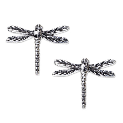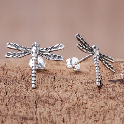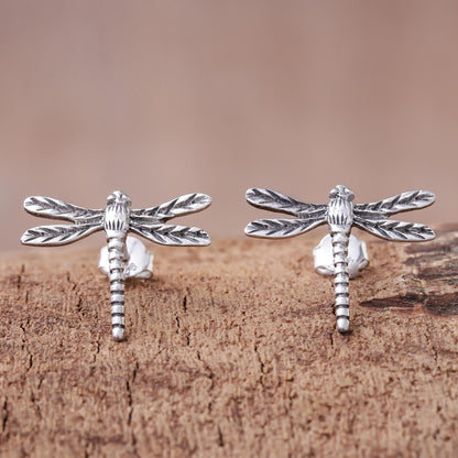Dragonfly Buzz Sterling Silver Dragonfly Button Earrings from Thailand