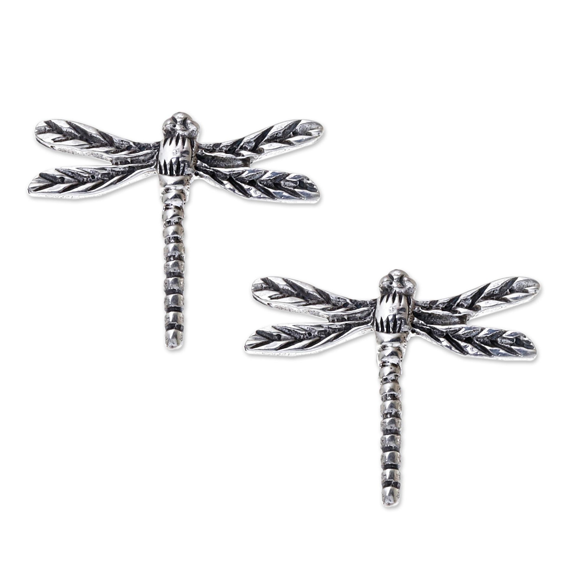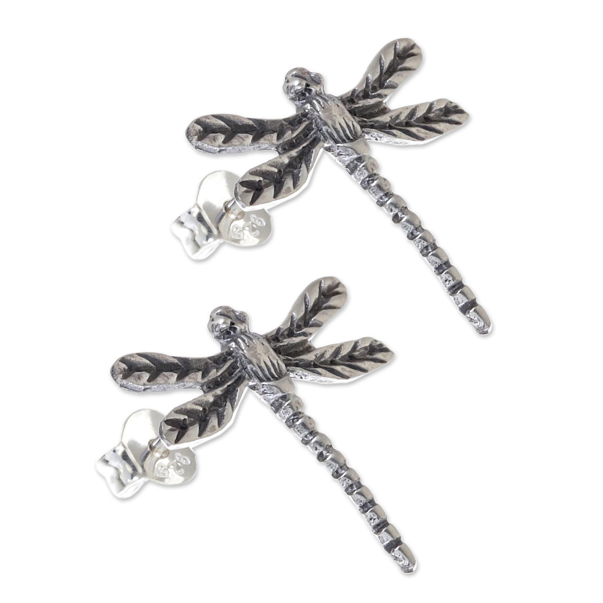 Ready to take flight, two dragonflies adorn the ears. Thailand's Wadarat Supasirisuk presents these button earrings, crafted of sterling silver by local artisans.