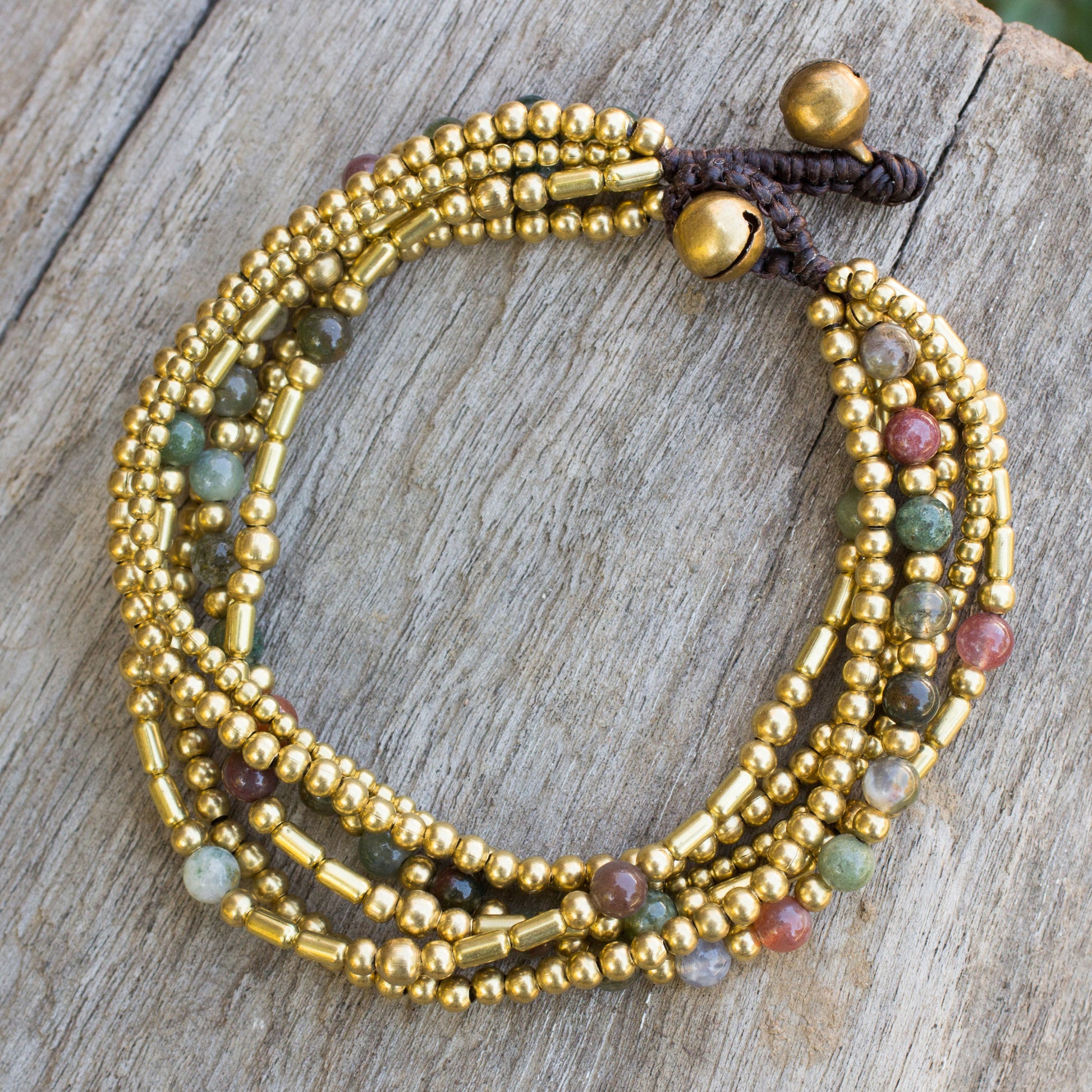Earth Freedom Brass Beaded Bracelet Crafted by Hand with Agate
