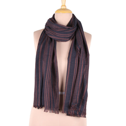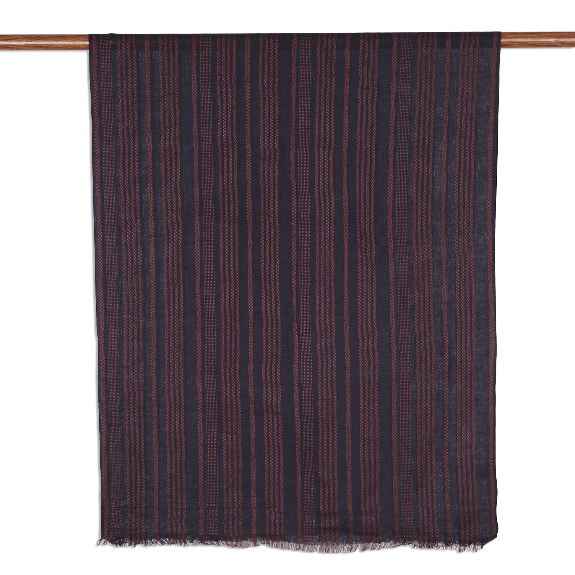 Elegant Combination Navy and Peach Striped Cotton Shawl from India