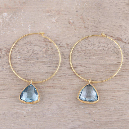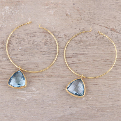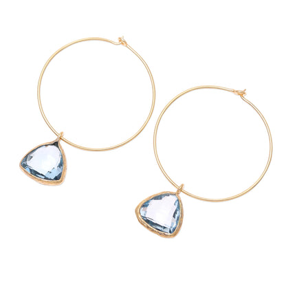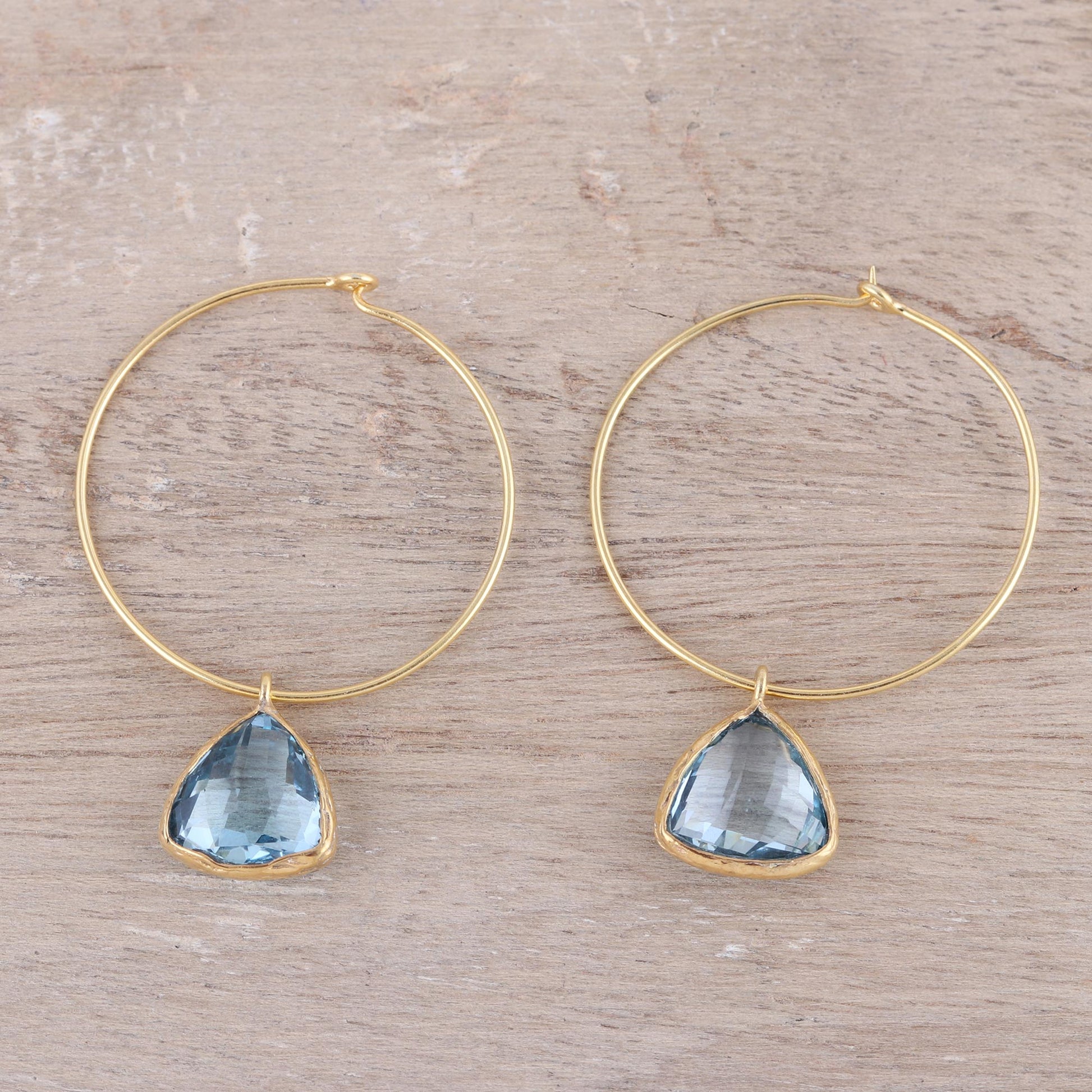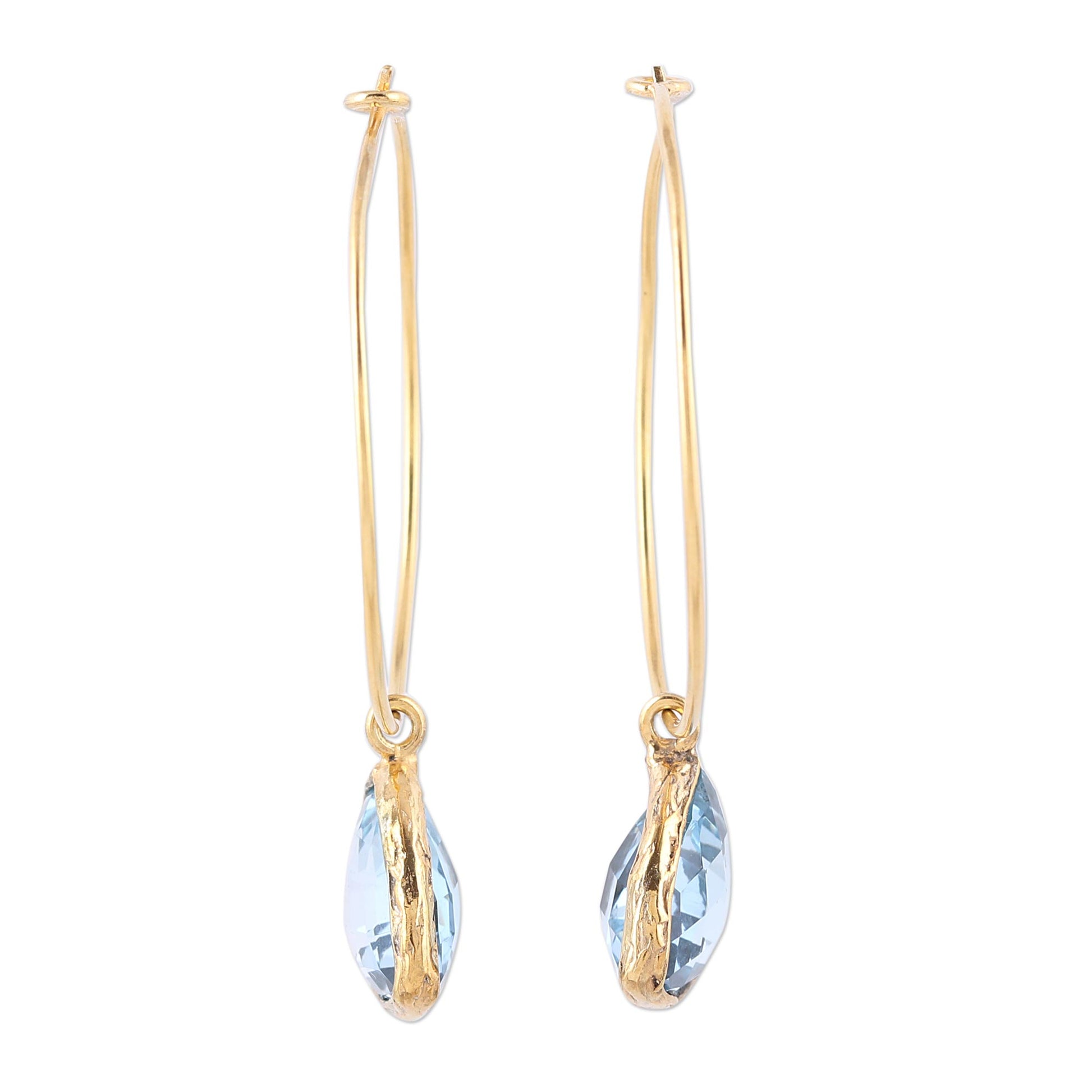 Elegant Embrace 18k Gold Plated Blue Topaz Hoop Dangle Earrings from India