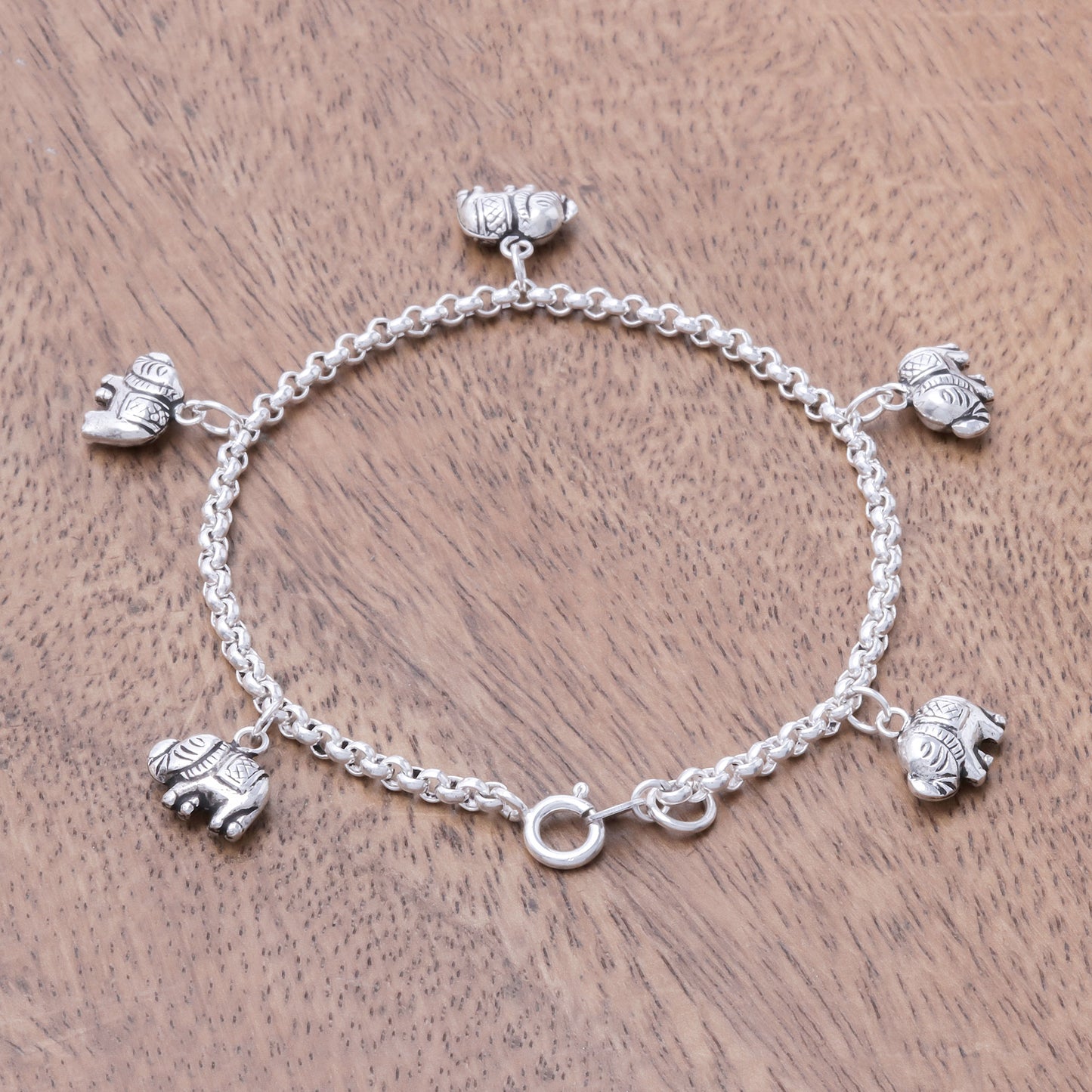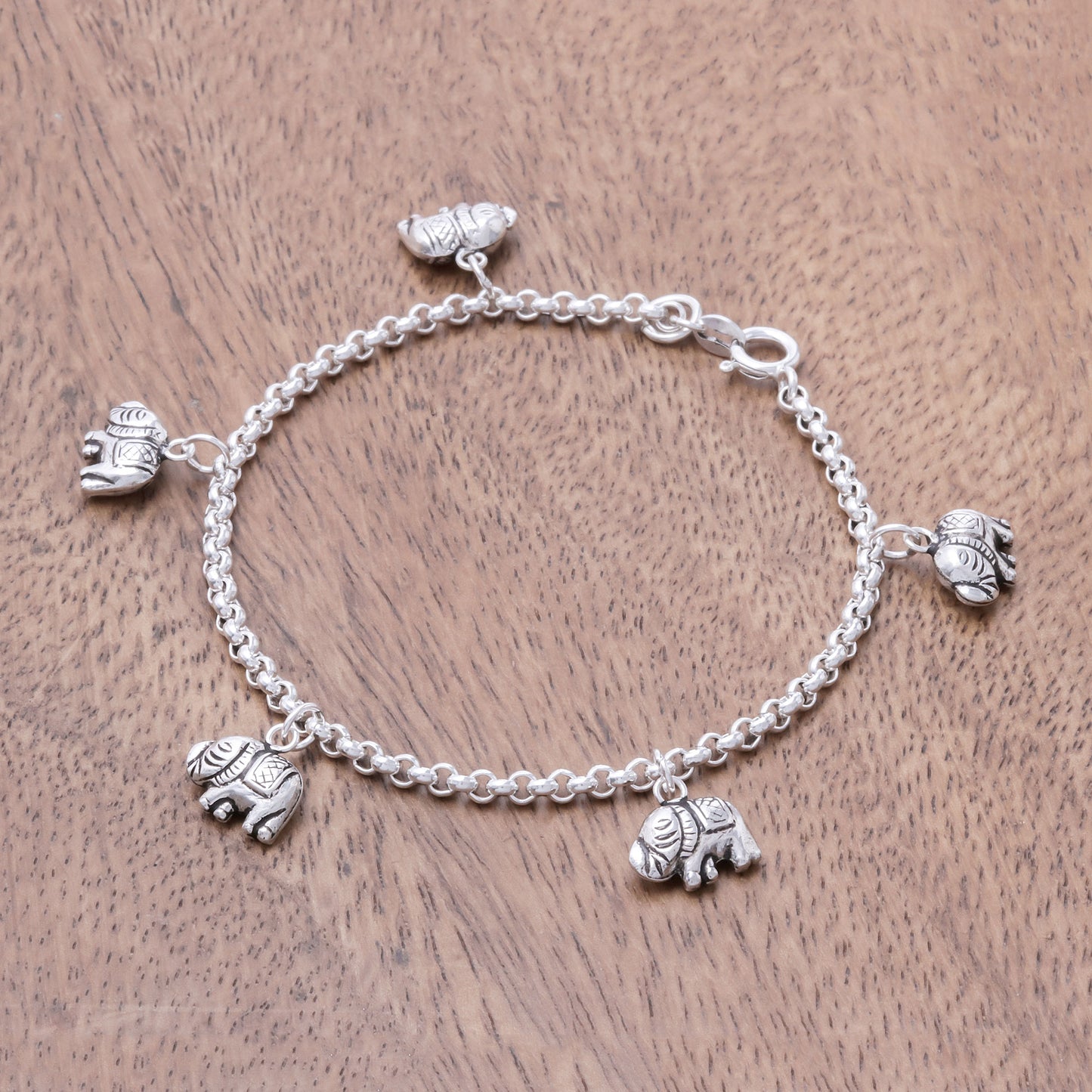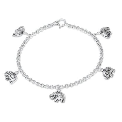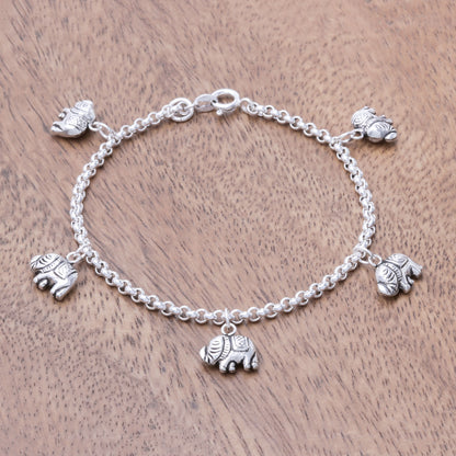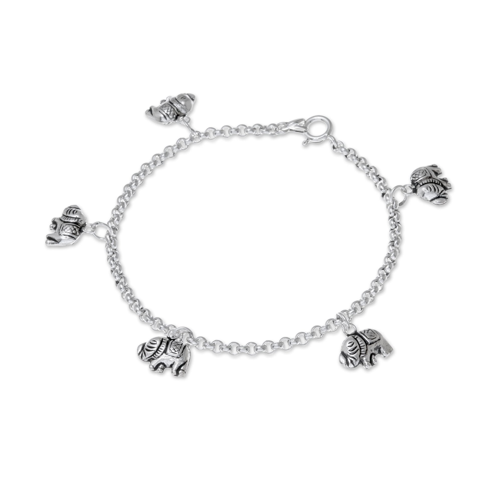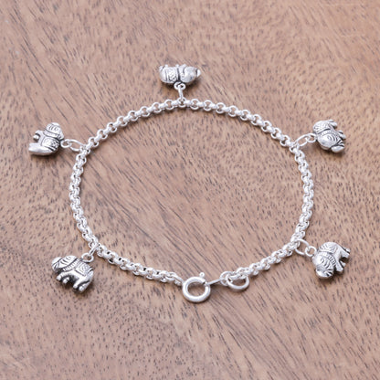 Elephant Marvel Sterling Silver Elephant Charm Bracelet from Thailand