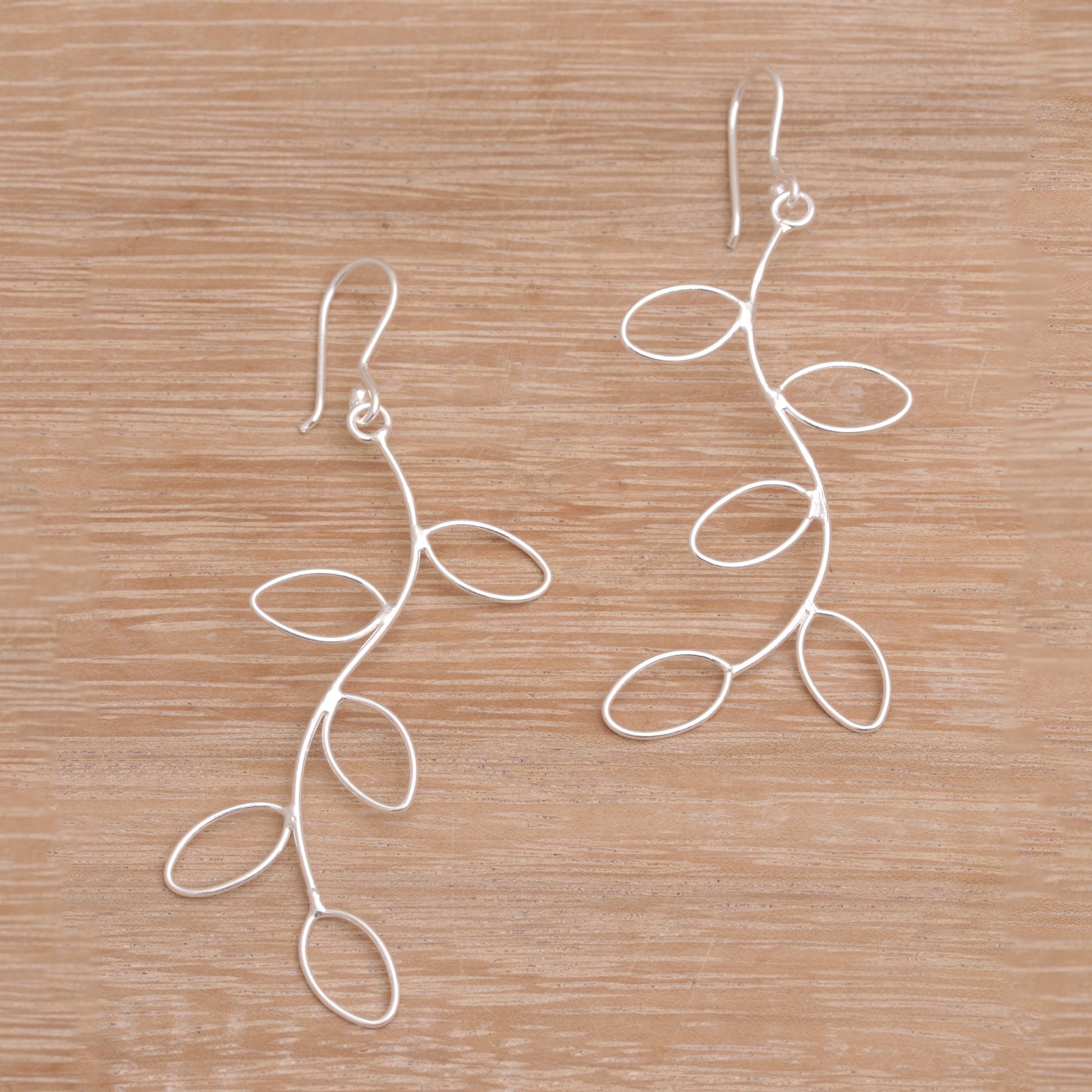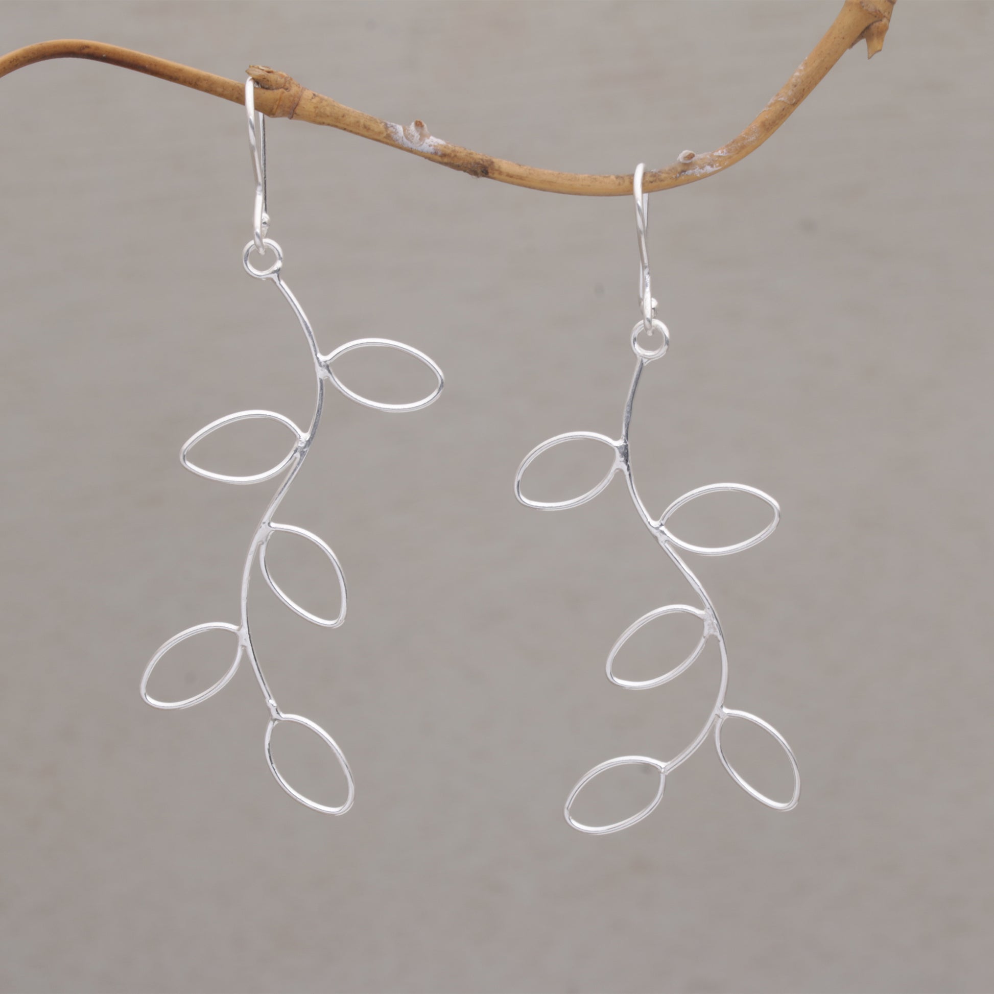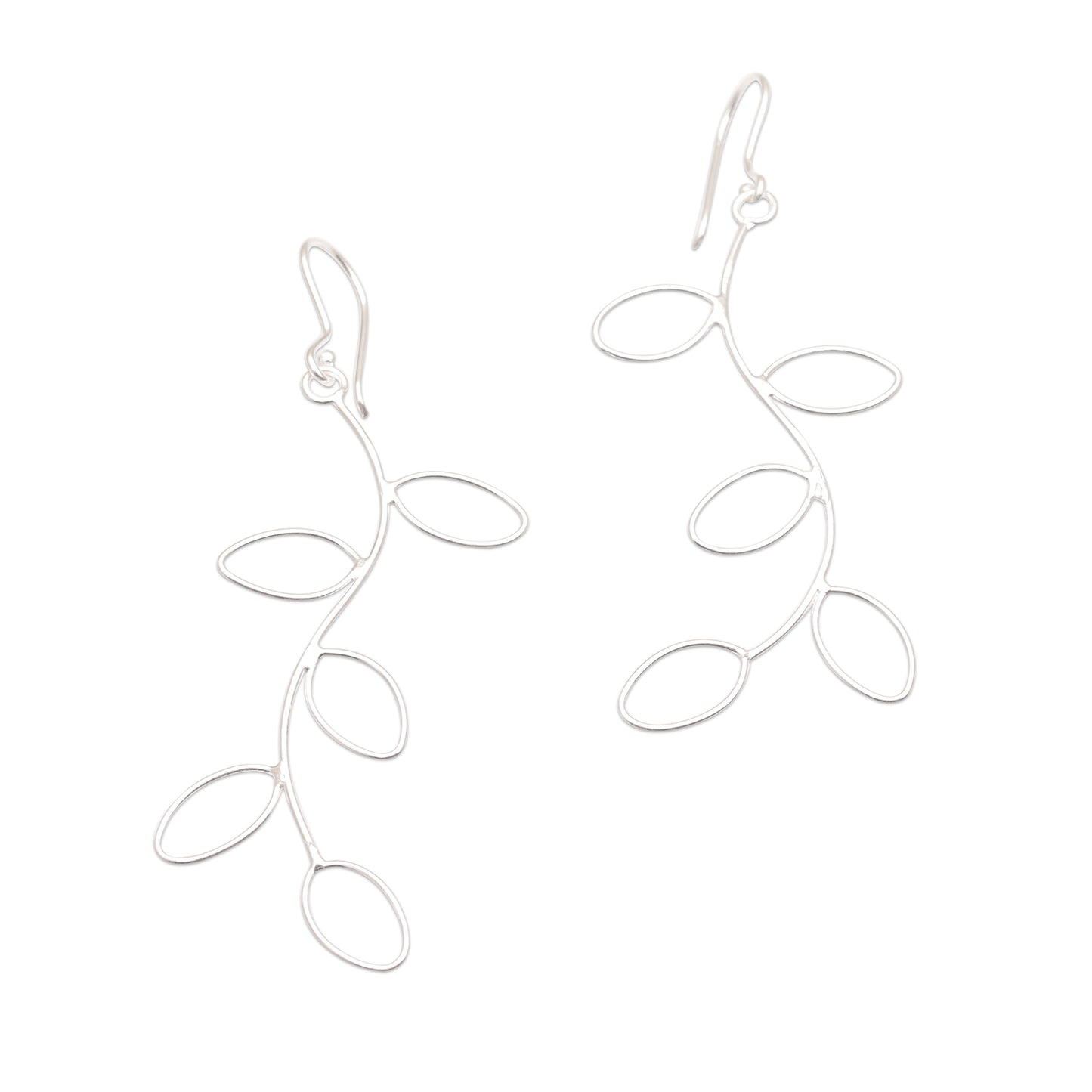 These unique, handmade dangle earrings come from Indonesian designer Desi Antari. The earrings are crafted in the shape of a branch of leaves and polished to a high-shine sterling silver finish.