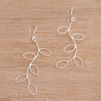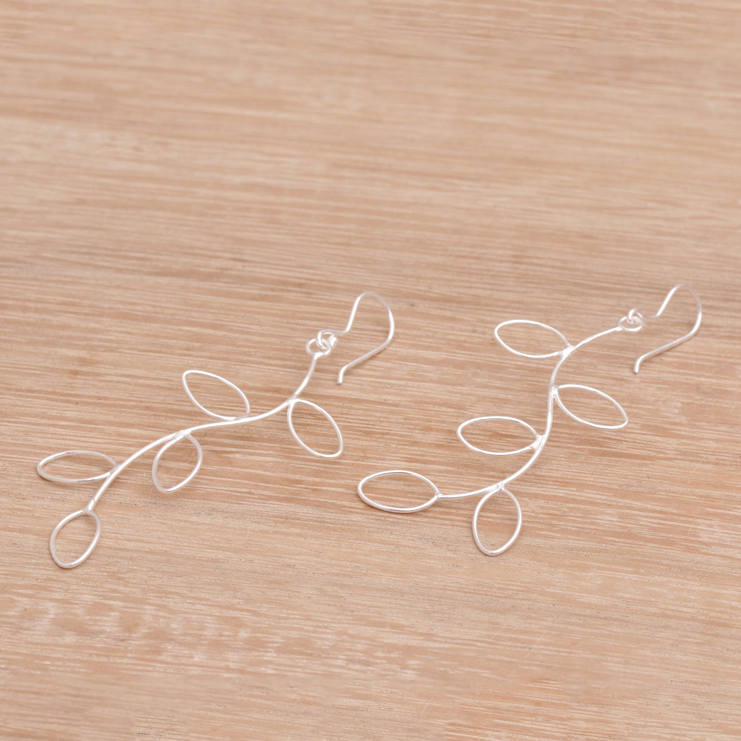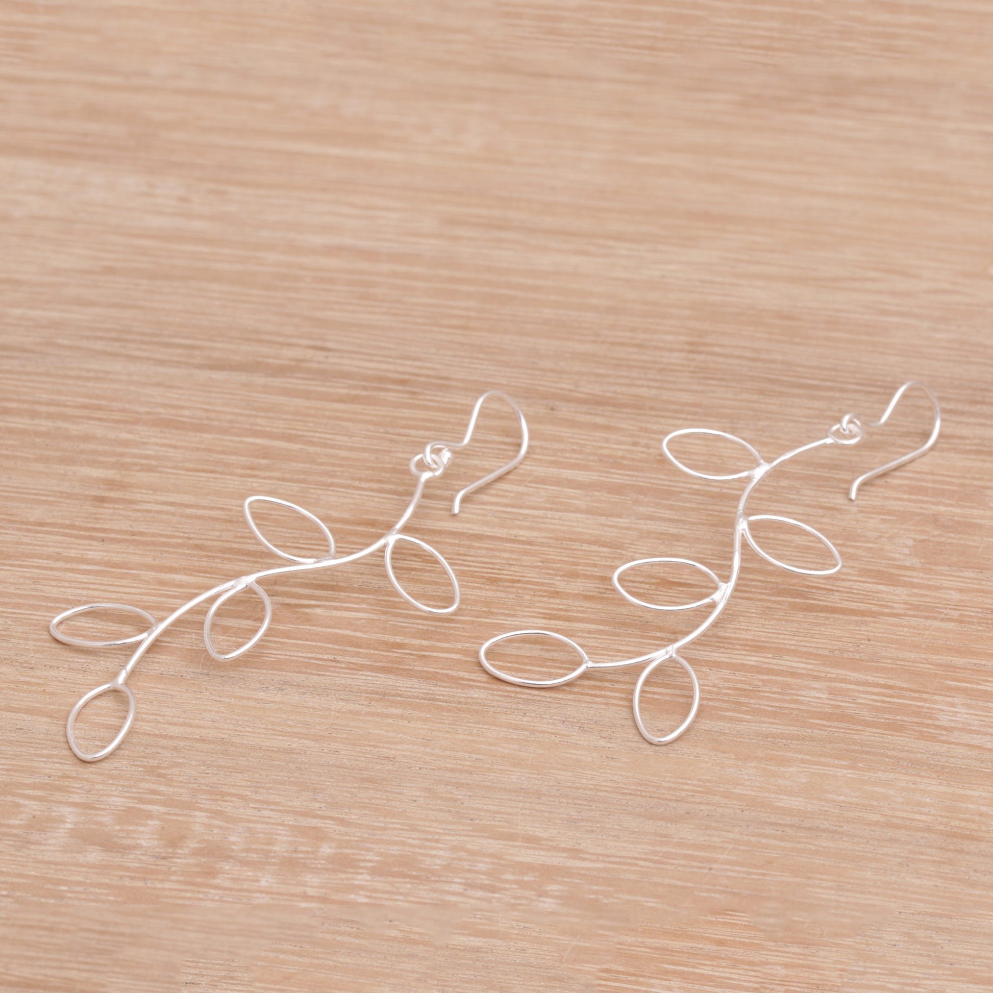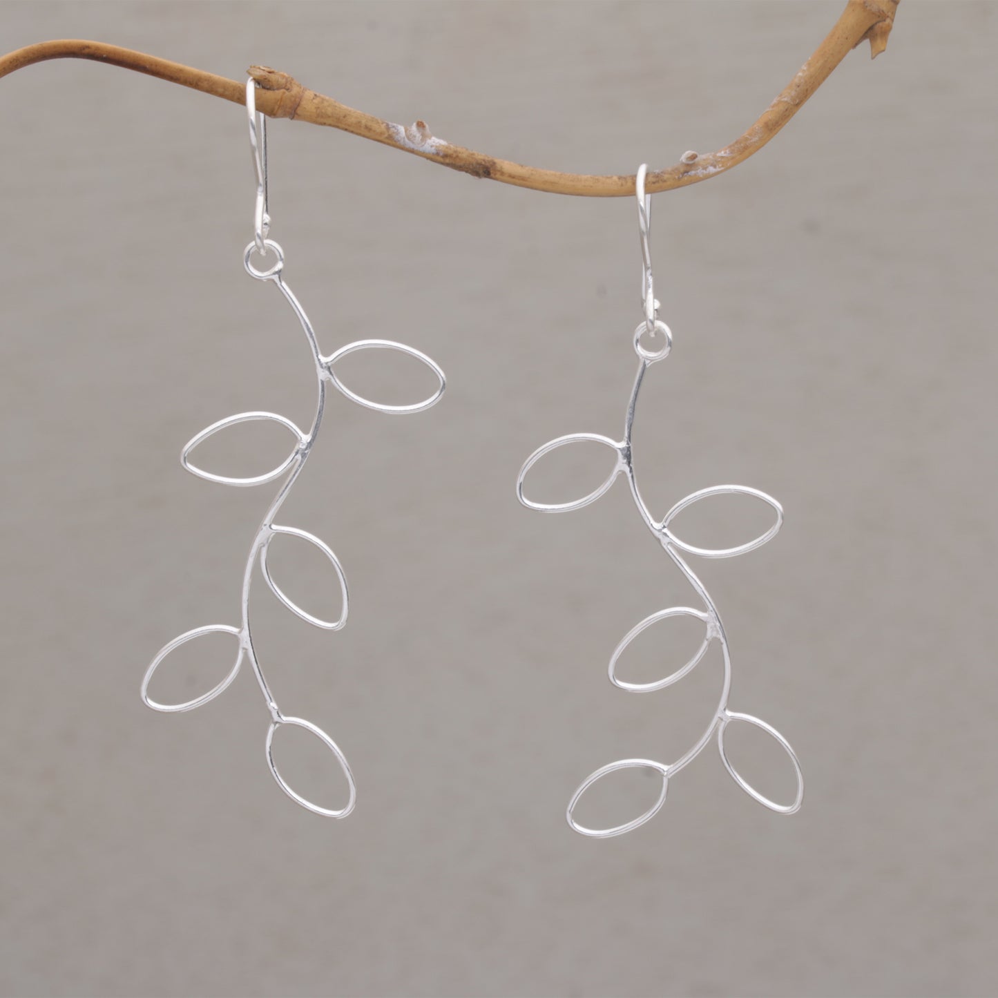 These unique, handmade dangle earrings come from Indonesian designer Desi Antari. The earrings are crafted in the shape of a branch of leaves and polished to a high-shine sterling silver finish.