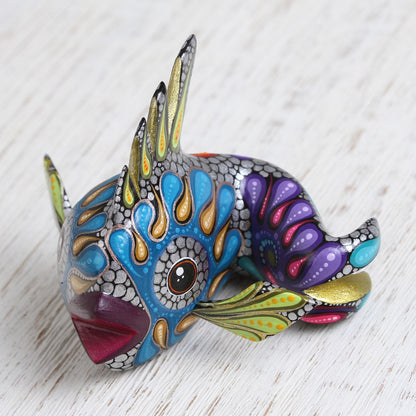 Fascinating Fish Colorful Wood Alebrije Fish Figurine from Mexico