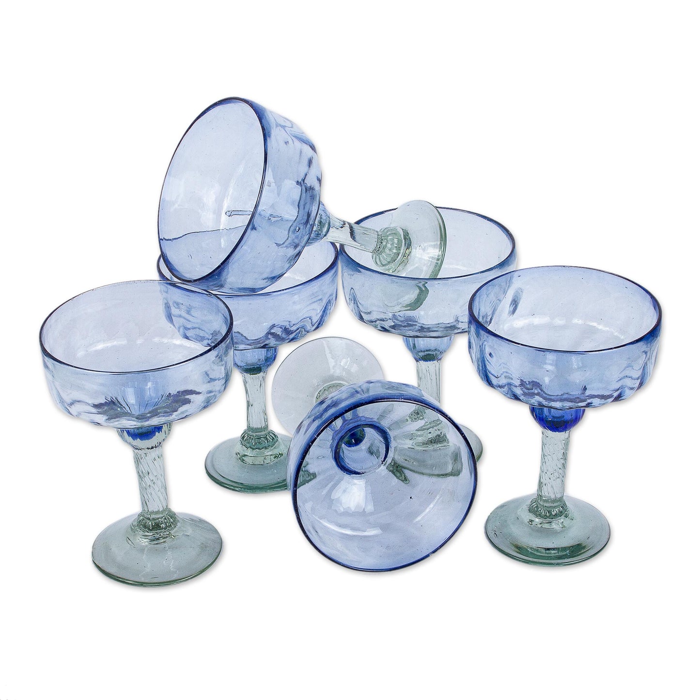 Fiesta Azul Blue Margarita Glasses Hand Blown in Mexico (Set of 6)