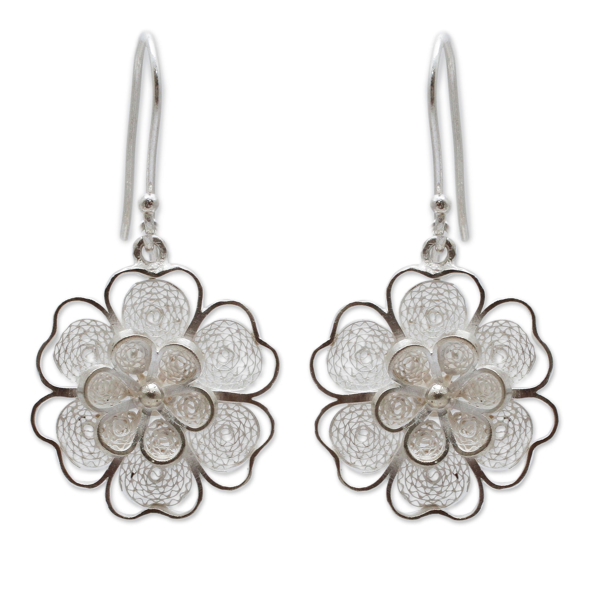Filigree Jasmine Artisan Crafted Sterling Filigree Peruvian Flower Earrings