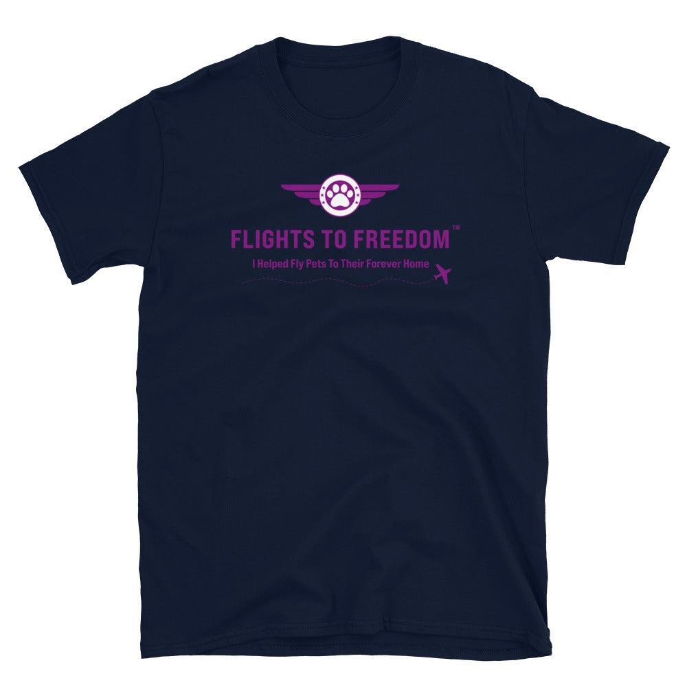 Support Flights to Freedom with this short sleeve tee! Each year Flights to Freedom saves thousands of pets by relocating pets from overcrowded shelters to shelters that can provide essential love and support for these sweet fur babies.