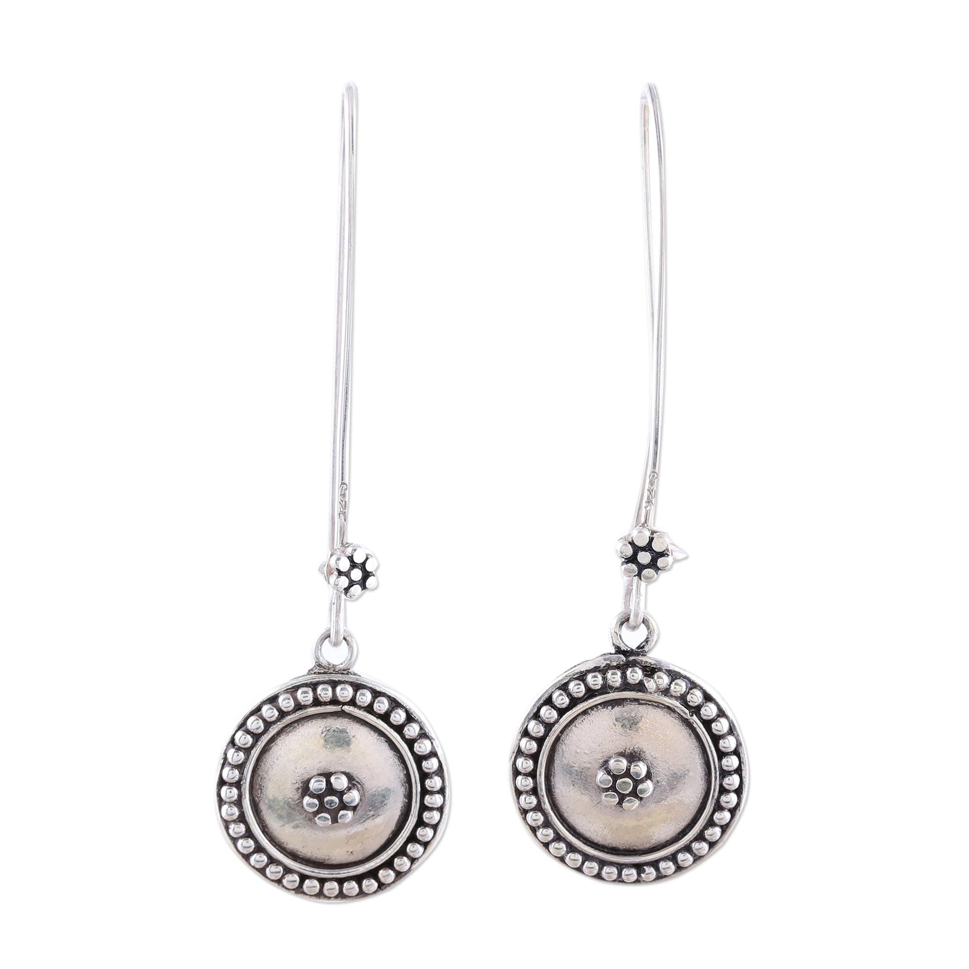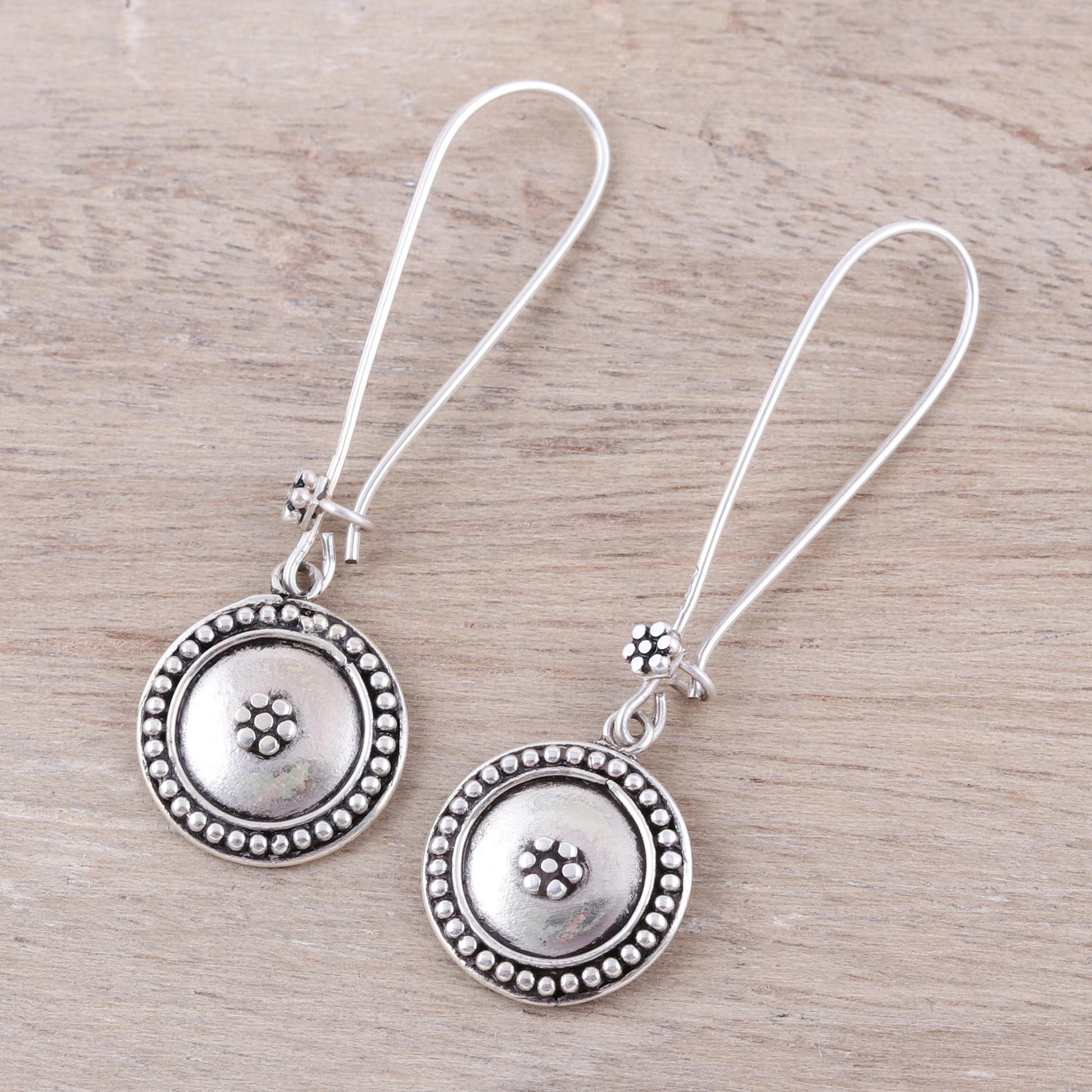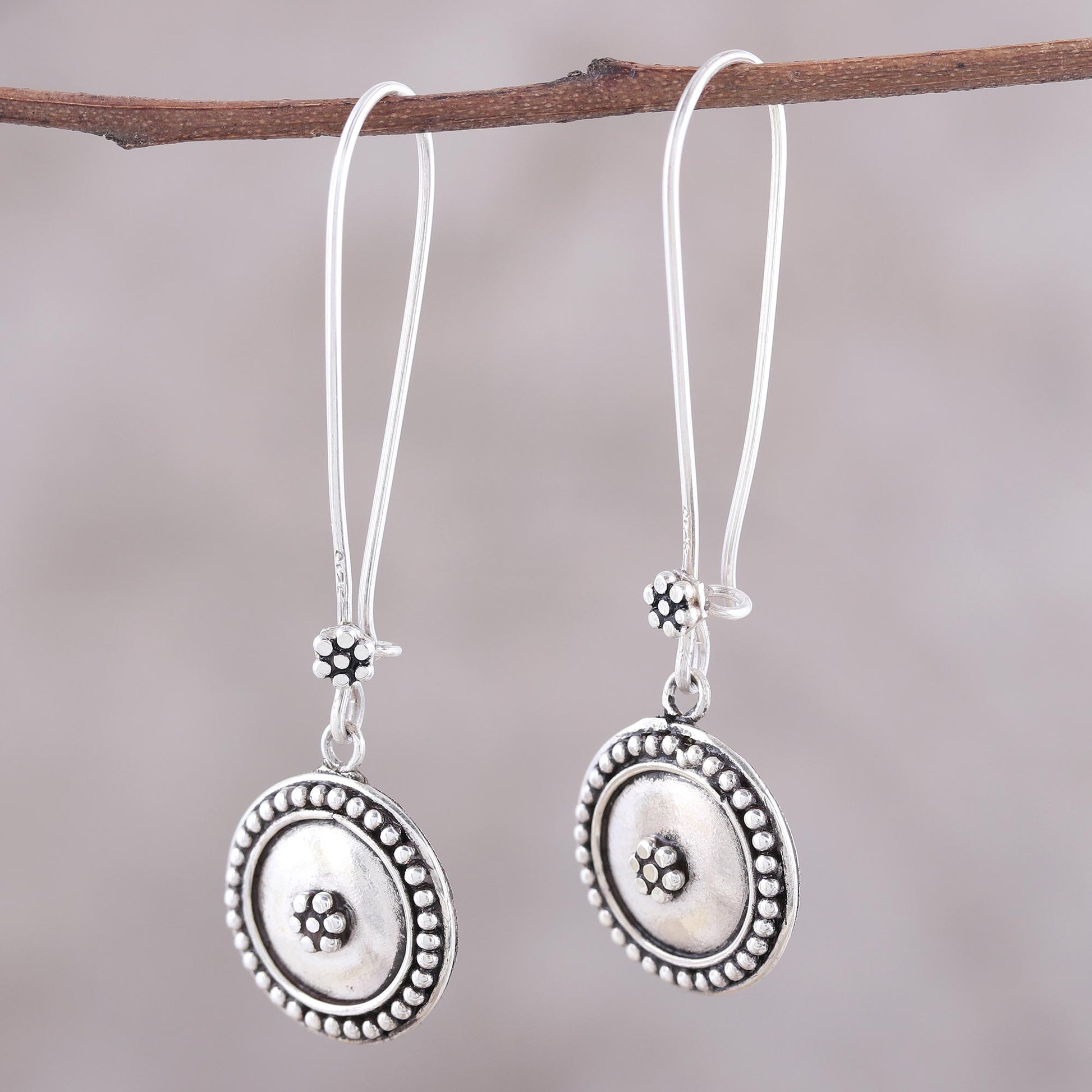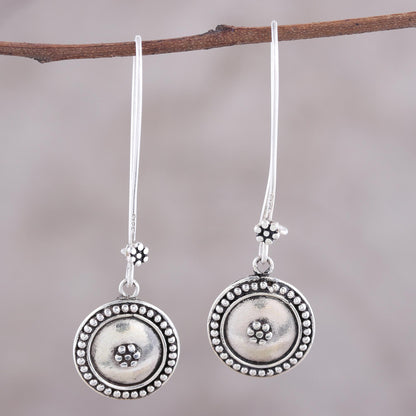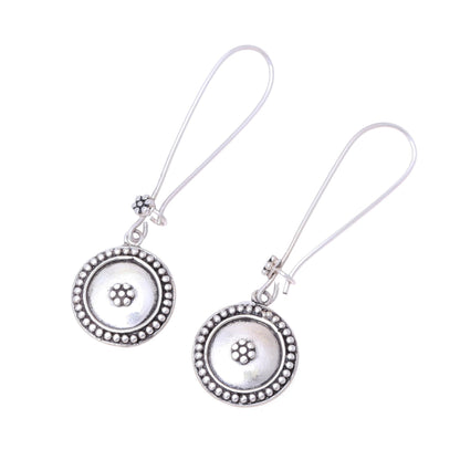 Floral Coin Sterling Silver Dotted Floral Medallion Dangle Earrings
