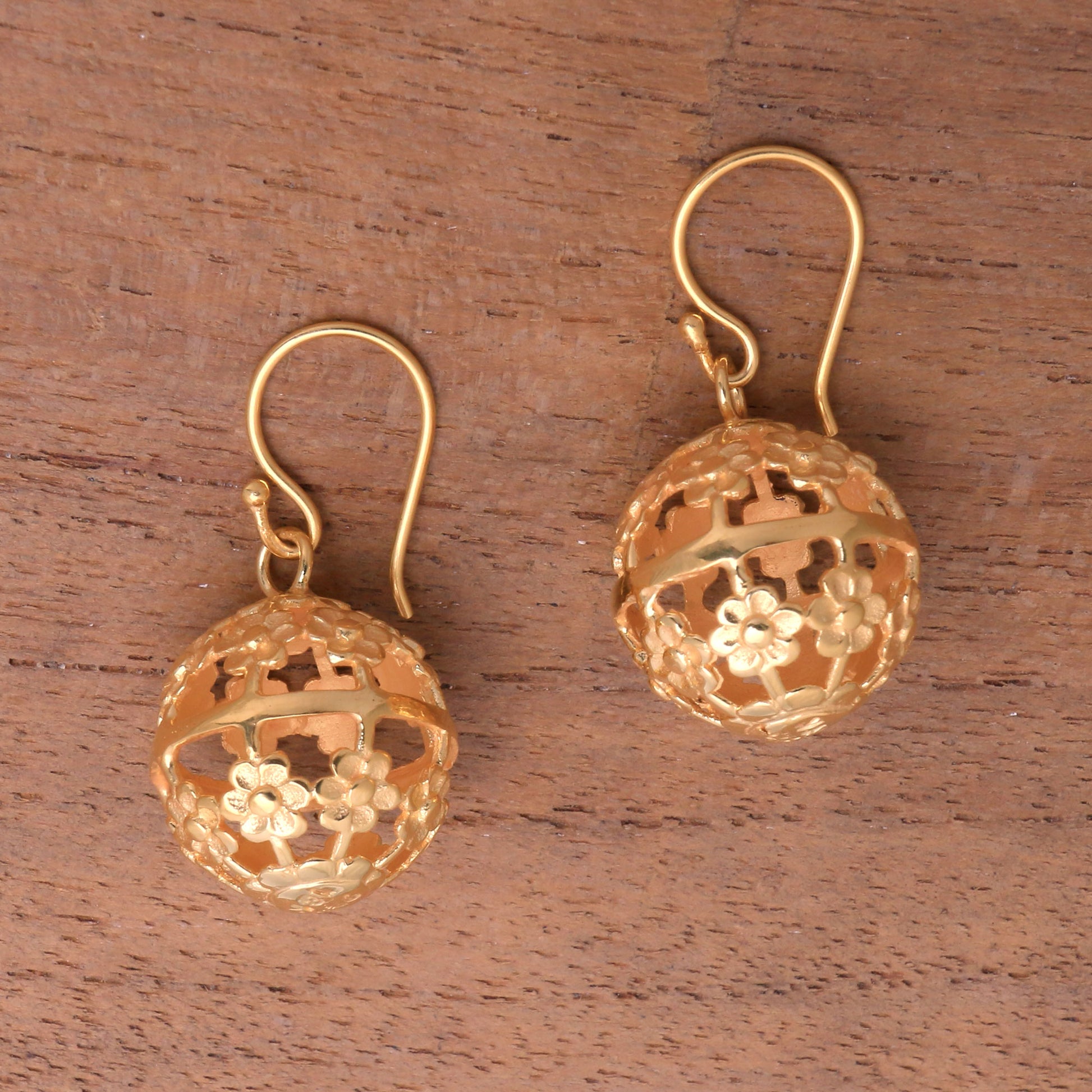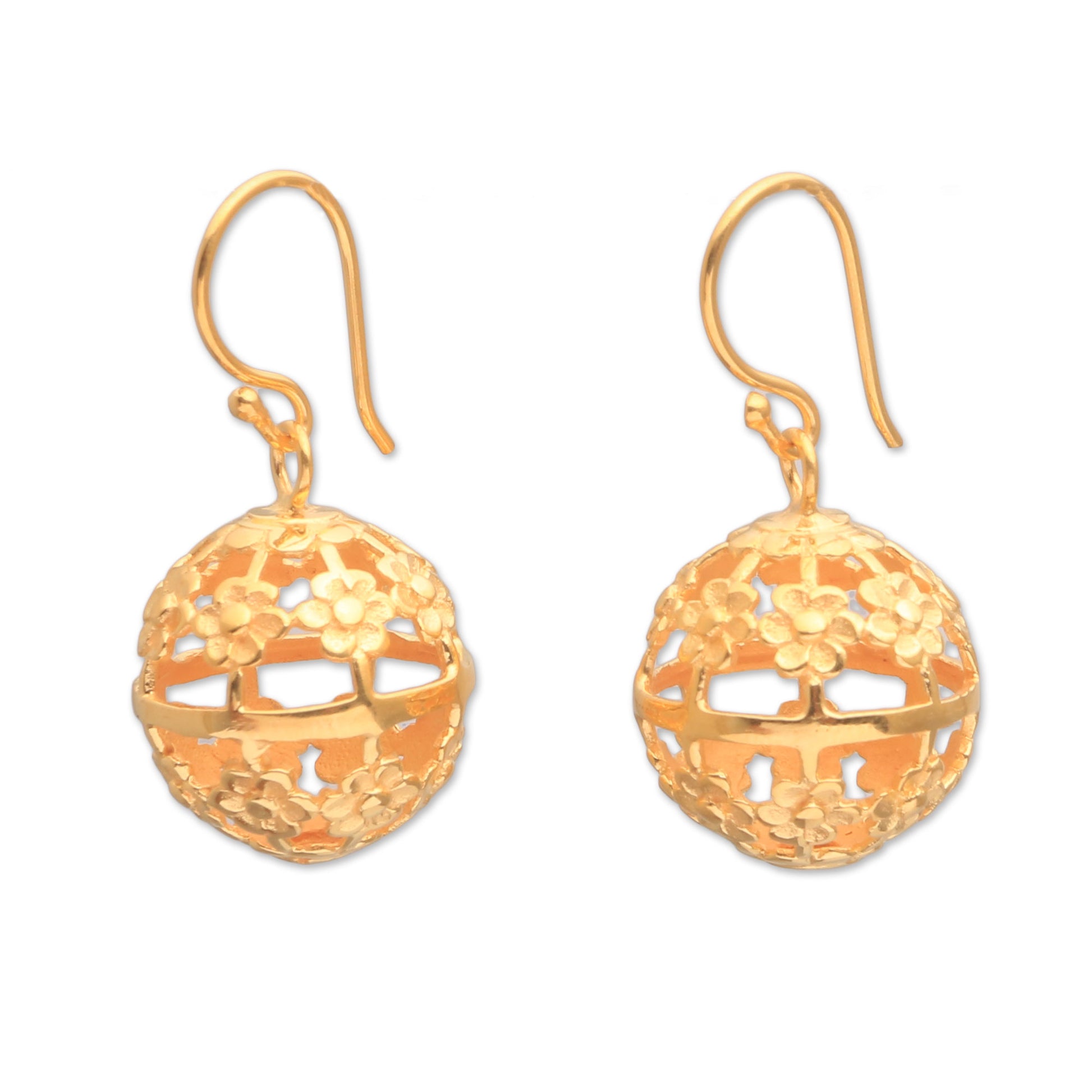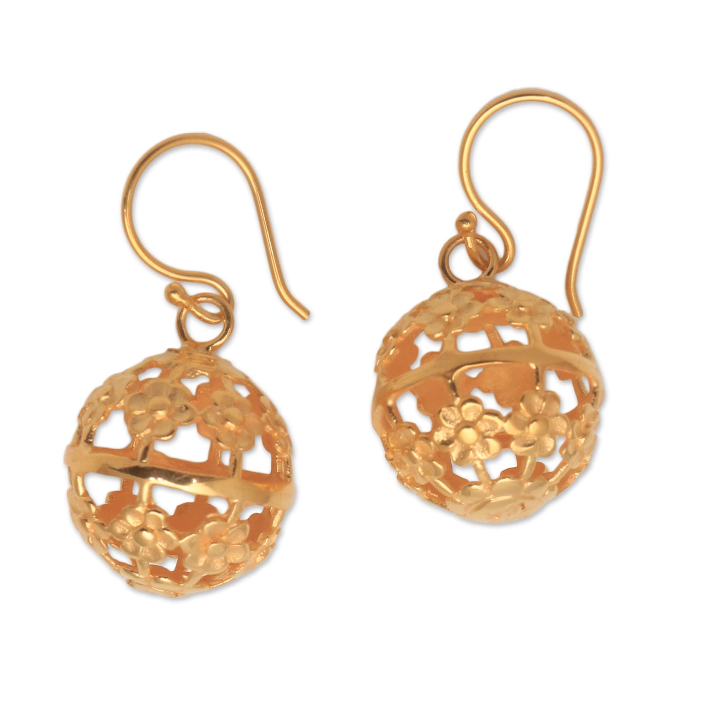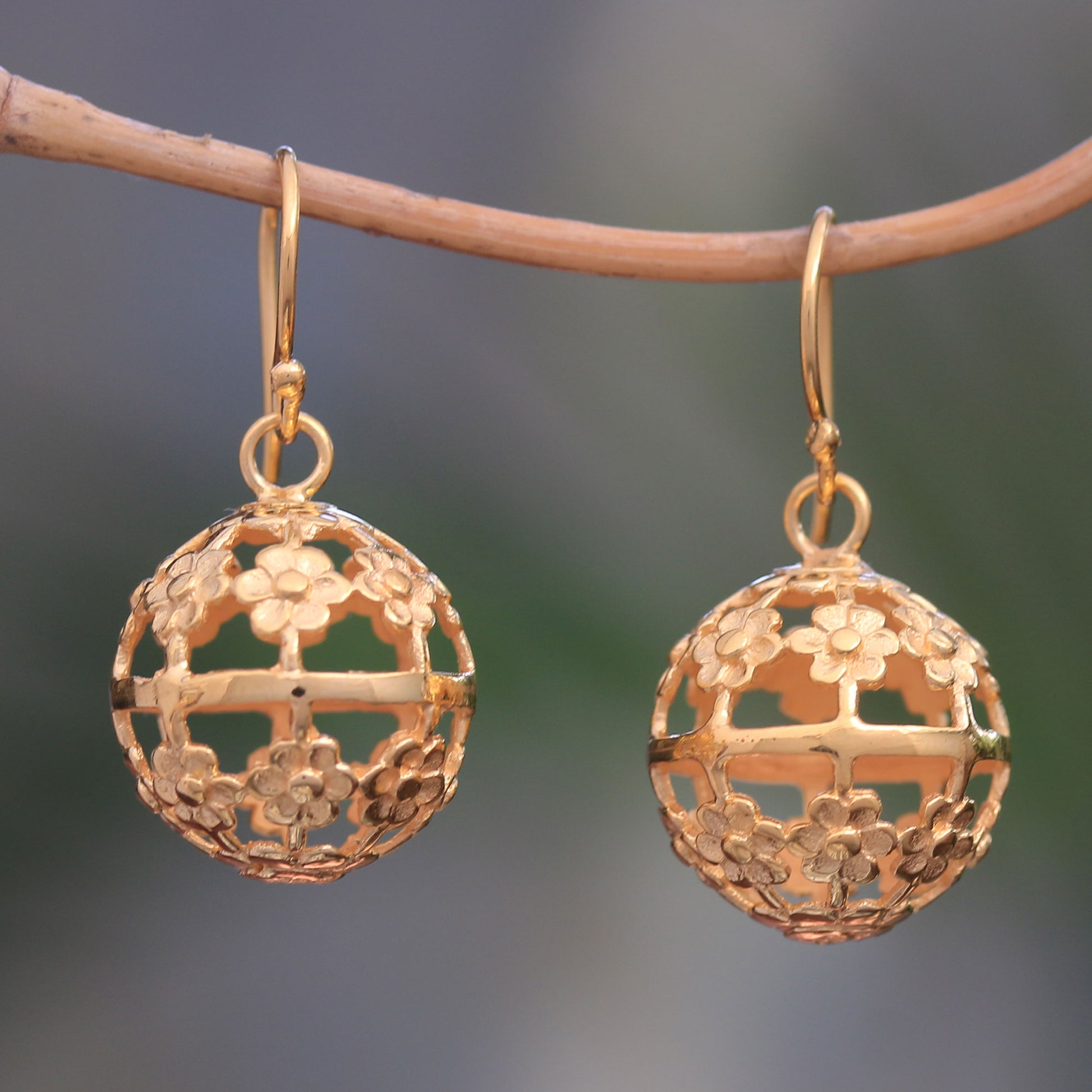 Floral Lanterns Floral Gold Plated Sterling Silver Dangle Earrings from Bali