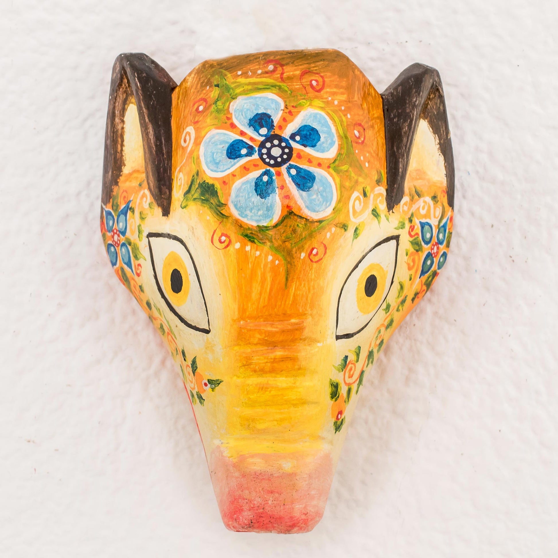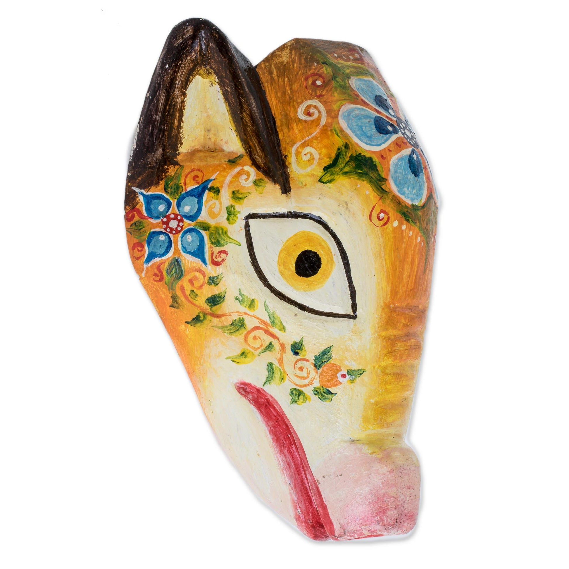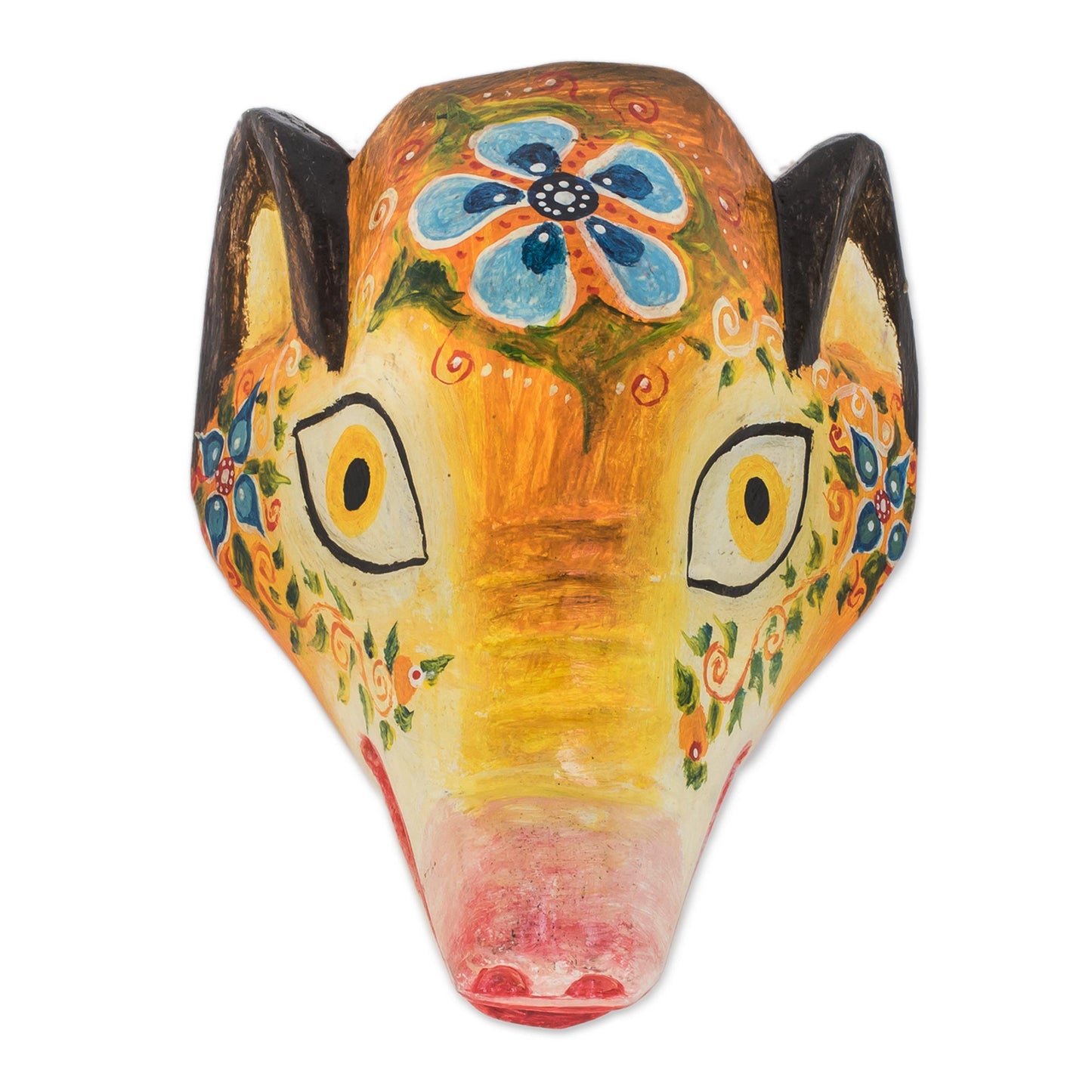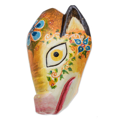 Floral Piglet Floral Pinewood Piglet Wall Mask from Guatemala