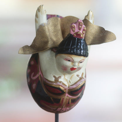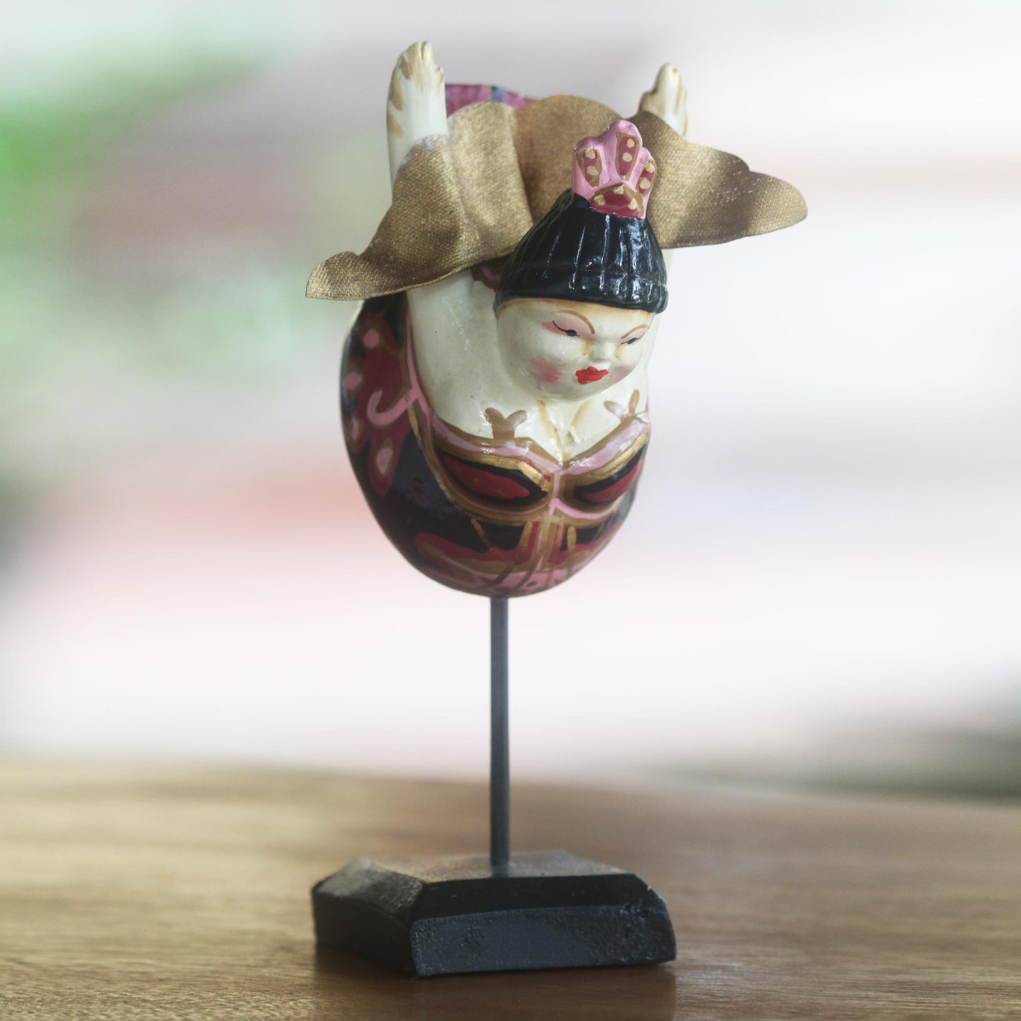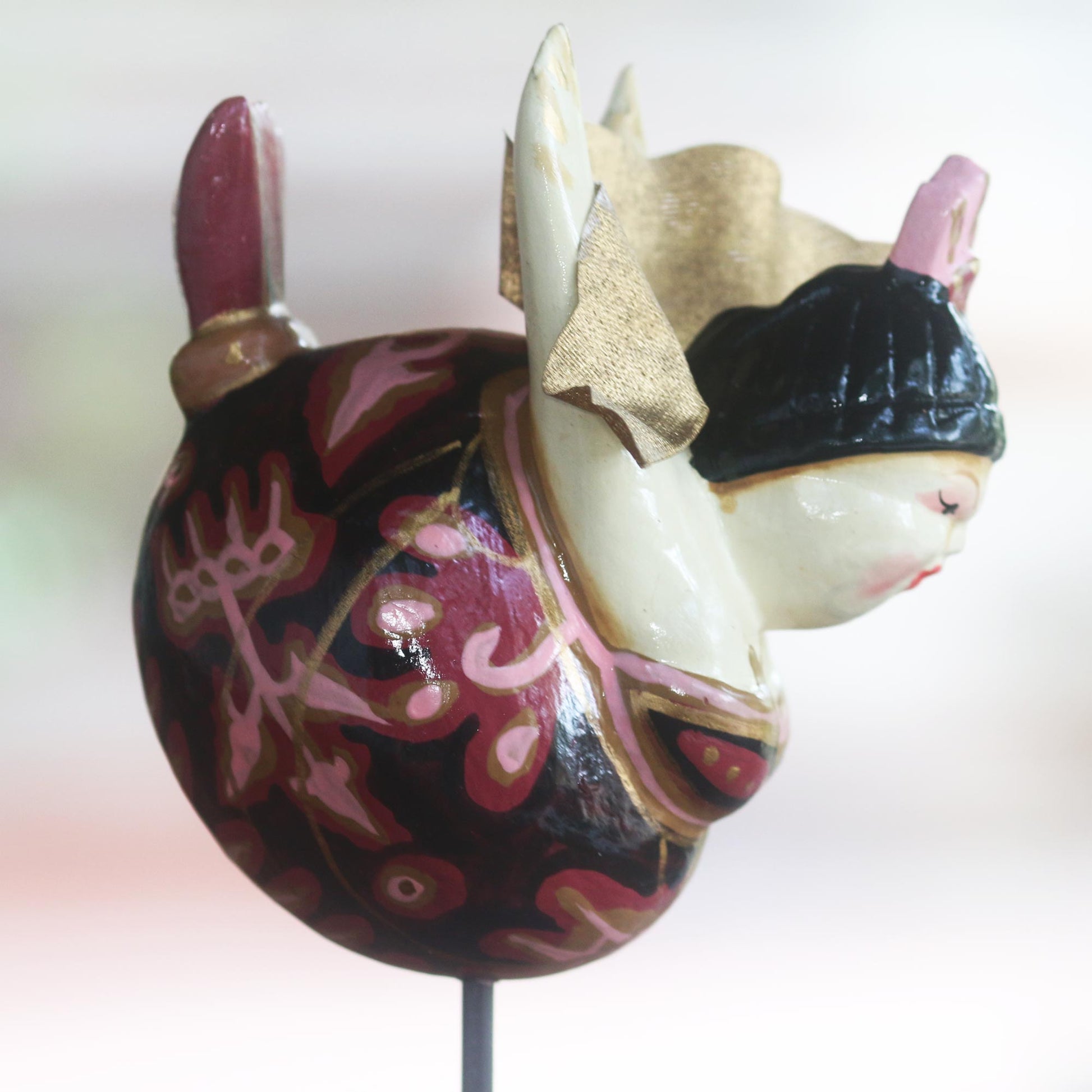 This charming and inviting sculpture depicts a plump woman mid-flight, with her golden cape waving behind her. Togog Suyasa presents his own design in this sculpture, which is hand-carved from local albesia wood, making a great addition to any home.